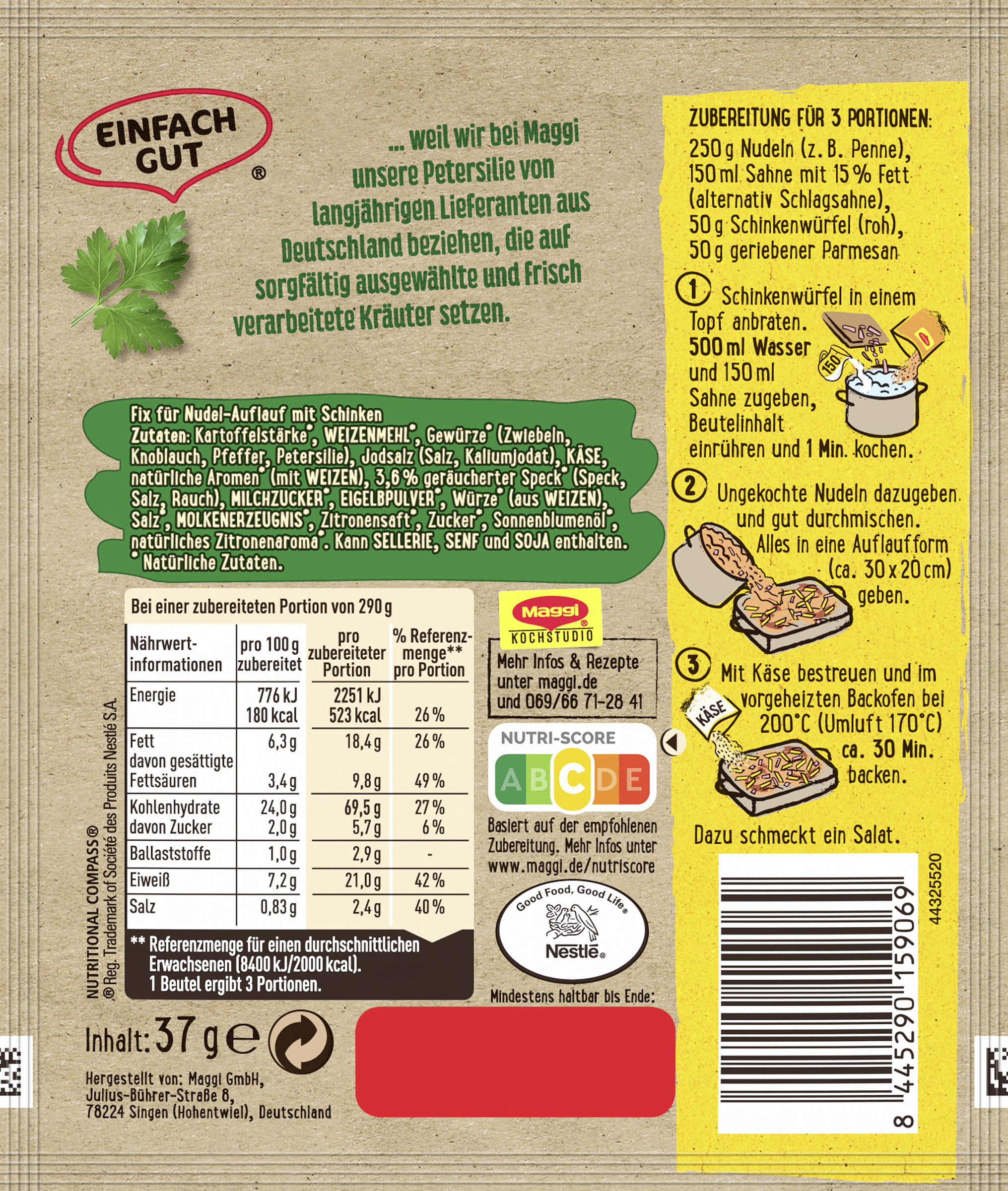 | Regulated Product Name | Fix für Nudel-Auflauf mit Schinken |