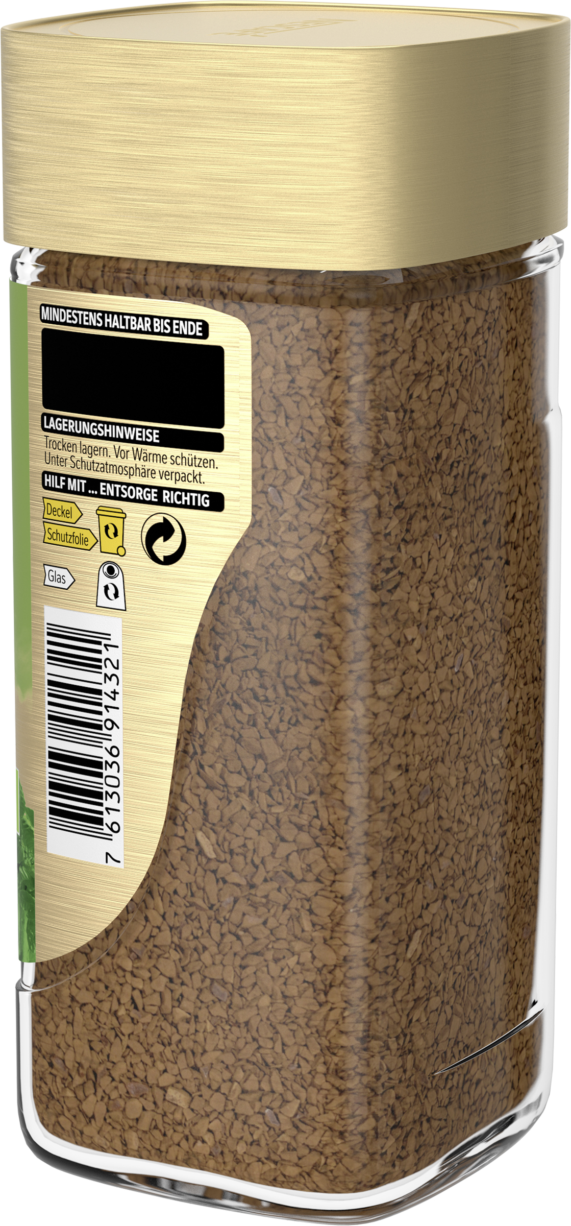 | Consumer Recycling Instructions | Deckel und Schutzfolie in der Gelben Tonne und das Glas im Glascontainer entsorgen. |