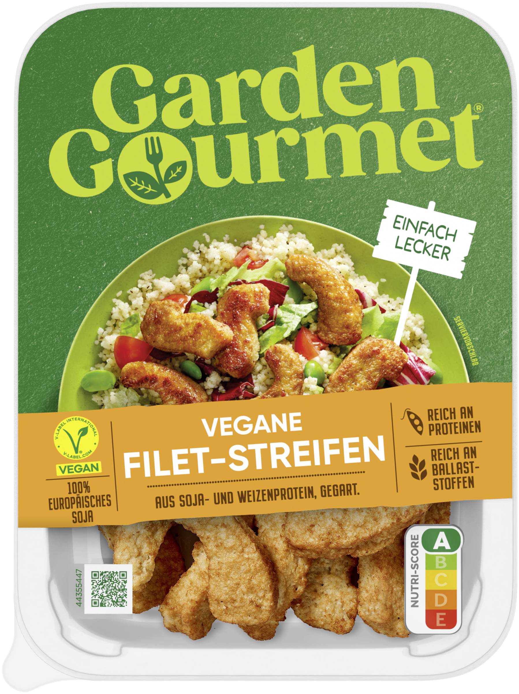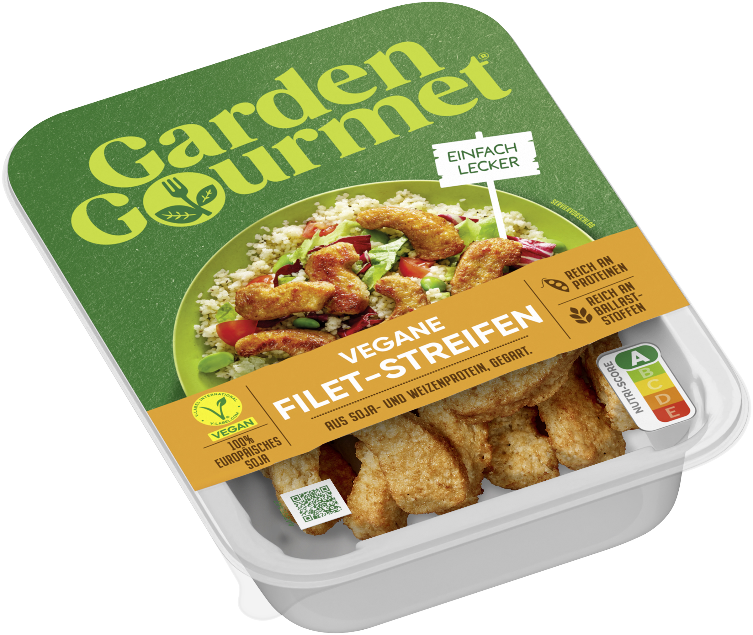 | Marketing Message | Reich an Geschmack und zart in der Textur – die fleischfreien Filet-Streifen von GARDEN GOURMET bieten eine angenehm rauchige Note und verleihen Gerichten einen unwiderstehlichen Geschmack. Die komplett vegane Option basiert auf Weizen- und Sojaprotein und bringt genussvolle Abwechslung auf den Teller. Wieso GARDEN GOURMET Vegane Filetstreifen? - Reich an Proteinen - Ballaststoffquelle - Perfekt für Wraps, Eintöpfe oder als Salat Topping - Schnell & einfach zubereitet - Nutri-Score: A Vegetarier:innen, Veganer:innen, Flexitarier:innen oder einfach nur neugierig? Ganz egal: Ohne Fleisch und ohne Fisch zu genießen, war noch nie so einfach. GARDEN GOURMET setzt auf Vielfalt und Genuss. Seit mehr als 25 Jahren entwickelt GARDEN GOURMET mit großer Leidenschaft vegetarische und vegane Produkte. Der Geschmack steht dabei immer an allererster Stelle. Gut zu erkennen am vielseitigen Sortiment, das kulinarische Entdecker:innen zu begeistern weiß. Ausgewählte Zutaten, viel Know-how und Erfahrung - das ist das Geheimnis der Veggie-Expert:innen. Also, worauf noch warten? Probiere den Geschmack des Guten. GARDEN GOURMET – Guter Geschmack, Gutes Gefühl! |