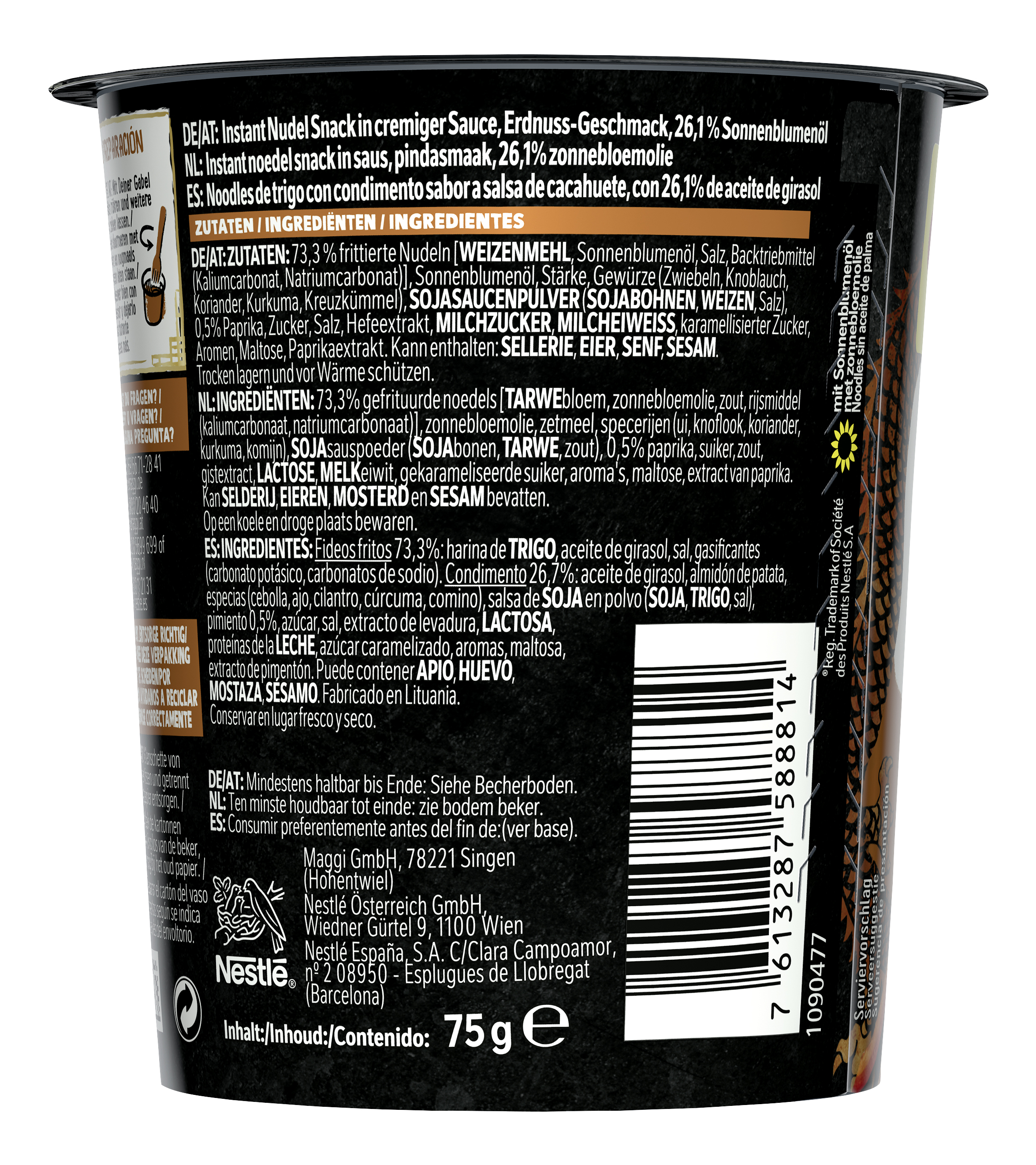 | Search Key Words | maggi magic asia, saucy noodles, state sauce, satesauce, satesoße, sate soße, peanut sate taste, instant, cup-s, Peanut, Saté, Taste, erdnusssoße, erdnusssauce, erdnuss, instant snack, noodle snack, nudelsnack, noodlesnack, noodles, asiacups, exotisch, spicy, asia flavor, soba, noodles, honig sauce, take away, to go, schnelle mahlzeit, nudelgericht-e, asiatisches essen, snack becher, snackbecher, mittagspause, asiatische Gewürze, authentisch, asiatisch, würzig, lange haltbar, haltbarkeit |