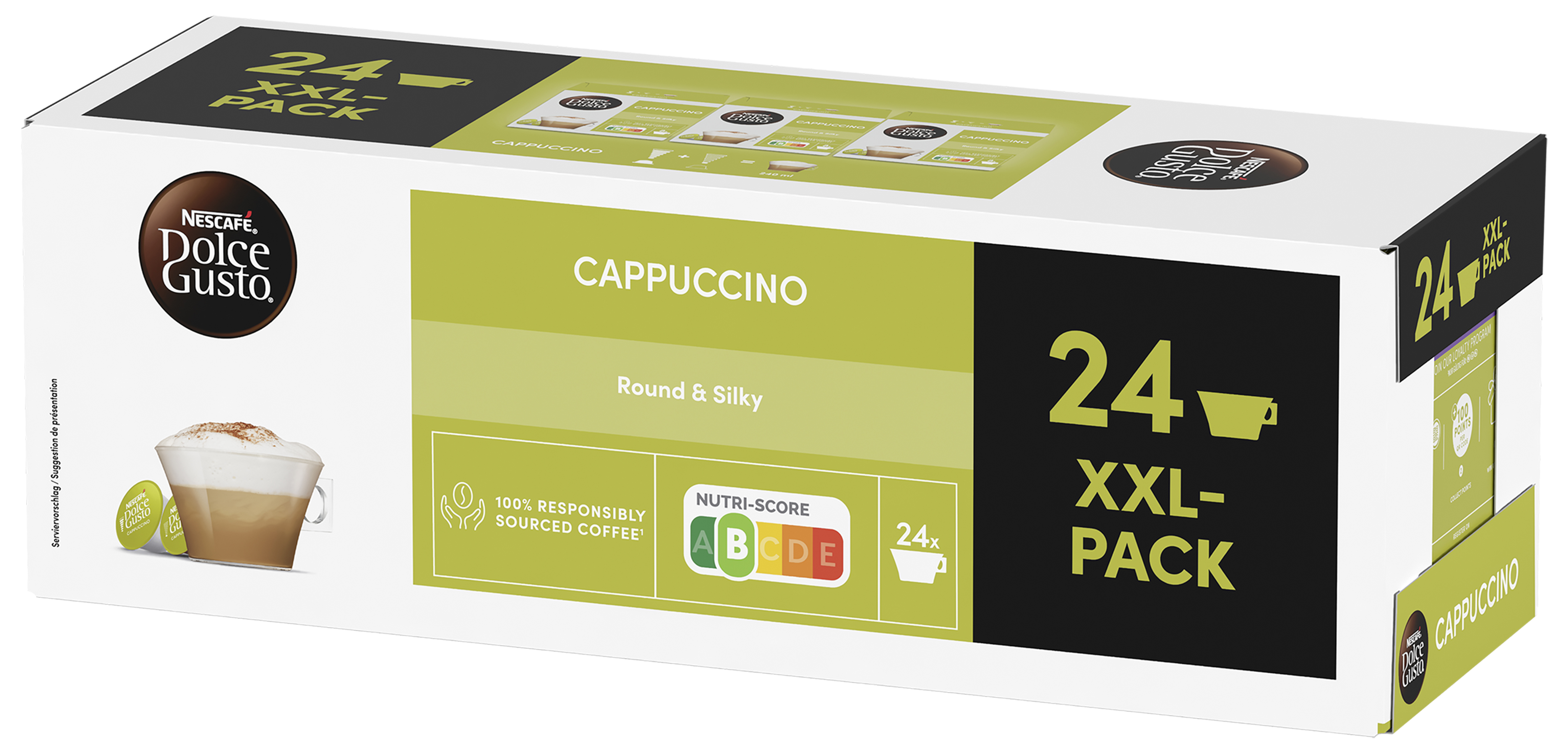 PREPARED100MLTZwei Kapseln ergeben 240 ml Gesamtgetränkmenge (verwendet als Basis für Nährwerte pro 100ml)ENER-EnergieAPPROXIMATELY150kJ PREPARED100MLTZwei Kapseln ergeben 240 ml Gesamtgetränkmenge (verwendet als Basis für Nährwerte pro 100ml)ENER-EnergieAPPROXIMATELY36kCal PREPARED100MLTZwei Kapseln ergeben 240 ml Gesamtgetränkmenge (verwendet als Basis für Nährwerte pro 100ml)FATFettAPPROXIMATELY1.6g PREPARED100MLTZwei Kapseln ergeben 240 ml Gesamtgetränkmenge (verwendet als Basis für Nährwerte pro 100ml)FASATFett, davon gesättigte FettsäurenAPPROXIMATELY1.0g PREPARED100MLTZwei Kapseln ergeben 240 ml Gesamtgetränkmenge (verwendet als Basis für Nährwerte pro 100ml)CHOAVLKohlenhydrateAPPROXIMATELY3.5g PREPARED100MLTZwei Kapseln ergeben 240 ml Gesamtgetränkmenge (verwendet als Basis für Nährwerte pro 100ml)SUGAR-Kohlenhydrate, davon ZuckerAPPROXIMATELY3.5g PREPARED100MLTZwei Kapseln ergeben 240 ml Gesamtgetränkmenge (verwendet als Basis für Nährwerte pro 100ml)FIBTGBallaststoffeAPPROXIMATELY0.2g PREPARED100MLTZwei Kapseln ergeben 240 ml Gesamtgetränkmenge (verwendet als Basis für Nährwerte pro 100ml)PRO-EiweißAPPROXIMATELY1.6g PREPARED100MLTZwei Kapseln ergeben 240 ml Gesamtgetränkmenge (verwendet als Basis für Nährwerte pro 100ml)SALTEQSalz ÄquivalentAPPROXIMATELY0.05g