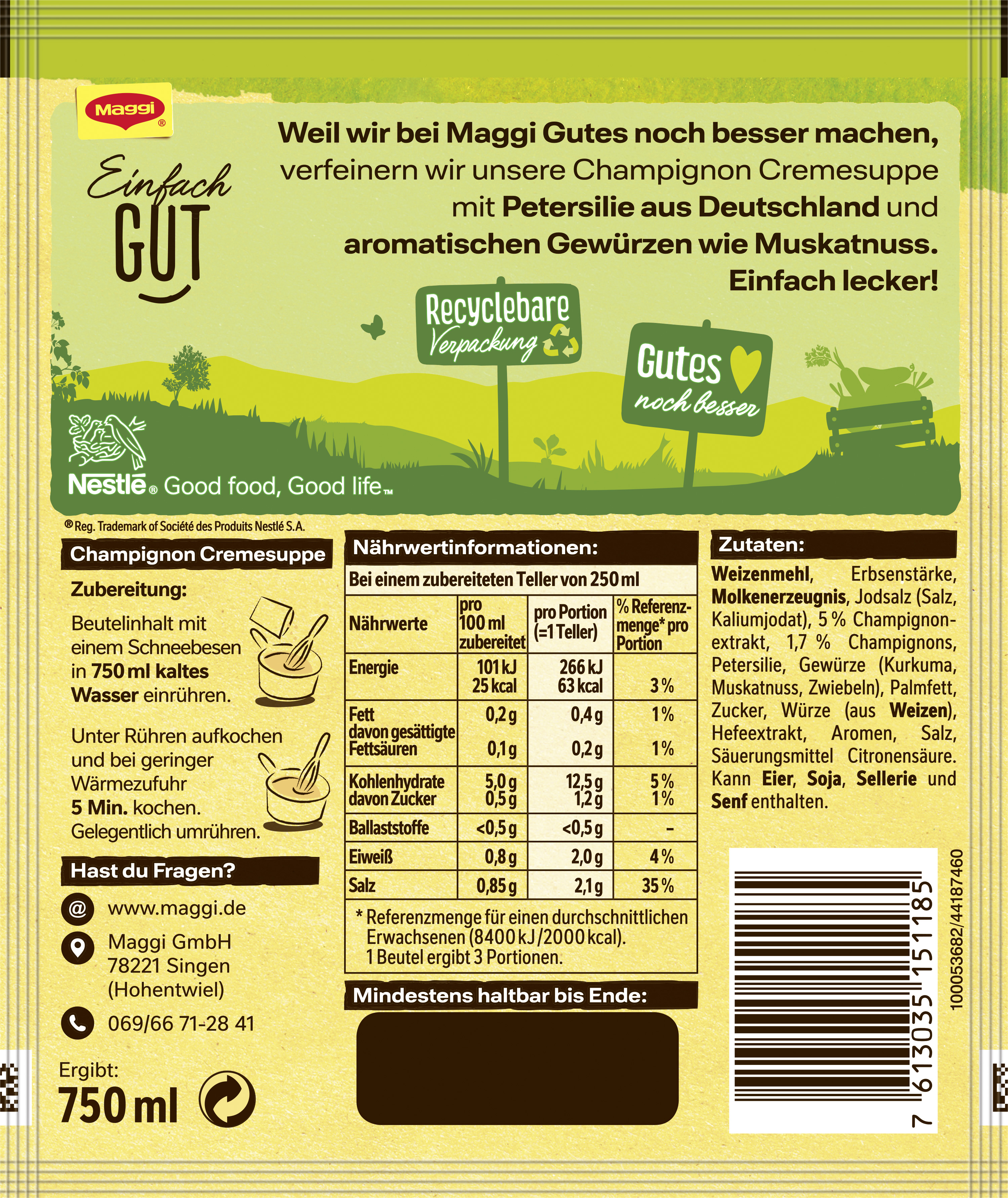 | Product Description | MAGGI GUTEN APPETIT Suppe Champignon Creme, ergibt 750 ml |