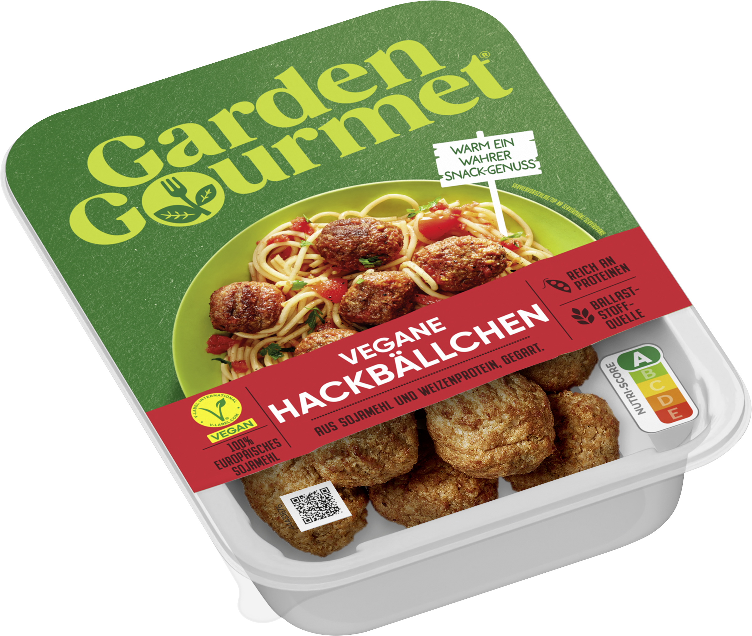 | Marketing Message | Klein, rund und einfach unwiderstehlich – Entdecke die veganen Hackbällchen von GARDEN GOURMET, ein fein-würziger Snackgenuss. Herzhaft gewürzt und mundgerecht portioniert, sind die Hackbällchen das ideale Veggie-Fingerfood. Komplett vegan sind sie eine fleischfreie Alternative zu Hackbällchen aus Fleisch. Wieso GARDEN GOURMET Vegetarische Hackbällchen? - Reich an Proteinen - Vielseitig einsetzbar als Beilage oder Snack - Mundgerecht portioniert - Schnell & einfach zubereitet - Perfekt für 2 Portionen - Nutri-Score: A Vegetarier:innen, Veganer:innen, Flexitarier:innen oder einfach nur neugierig? Ganz egal: Ohne Fleisch und ohne Fisch zu genießen, war noch nie so einfach. GARDEN GOURMET setzt auf Vielfalt und Genuss. Seit mehr als 25 Jahren entwickelt GARDEN GOURMET mit großer Leidenschaft vegetarische und vegane Produkte. Der Geschmack steht dabei immer an allererster Stelle. Gut zu erkennen am vielseitigen Sortiment, das kulinarische Entdecker:innen zu begeistern weiß. Ausgewählte Zutaten, viel Know-how und Erfahrung - das ist das Geheimnis der Veggie-Expert:innen. Also, worauf noch warten? Probiere den Geschmack des Guten. GARDEN GOURMET – Where taste feels good |