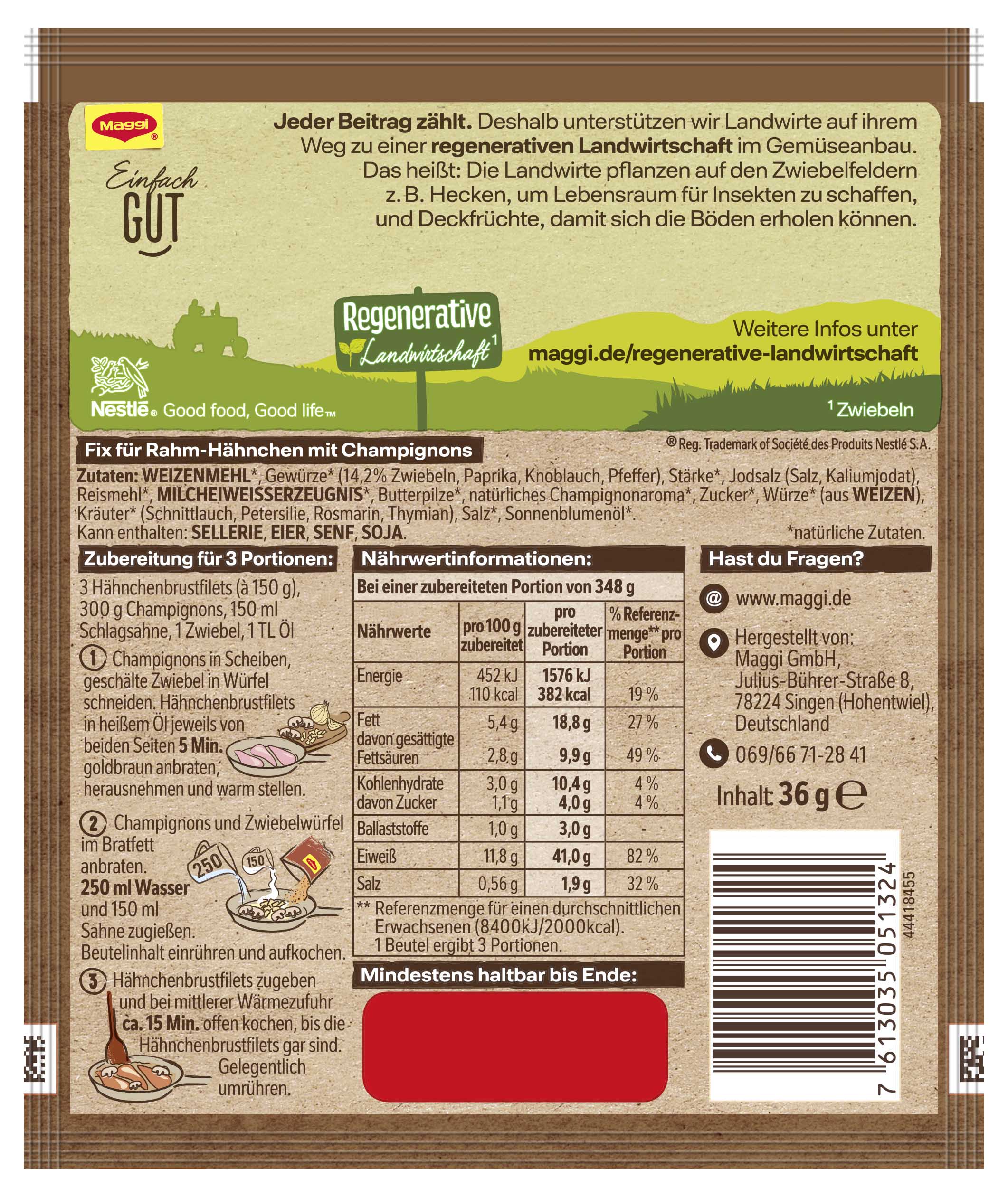 | Product Description | MAGGI FIX Champignon Rahm Hähnchen |