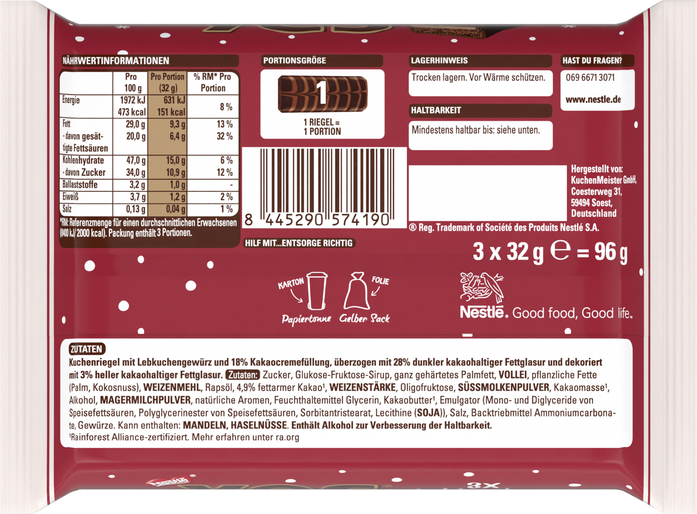 | Product Description | NESTLE YES Kuchenriegel Lebkuchen Multipack (3x32g) |