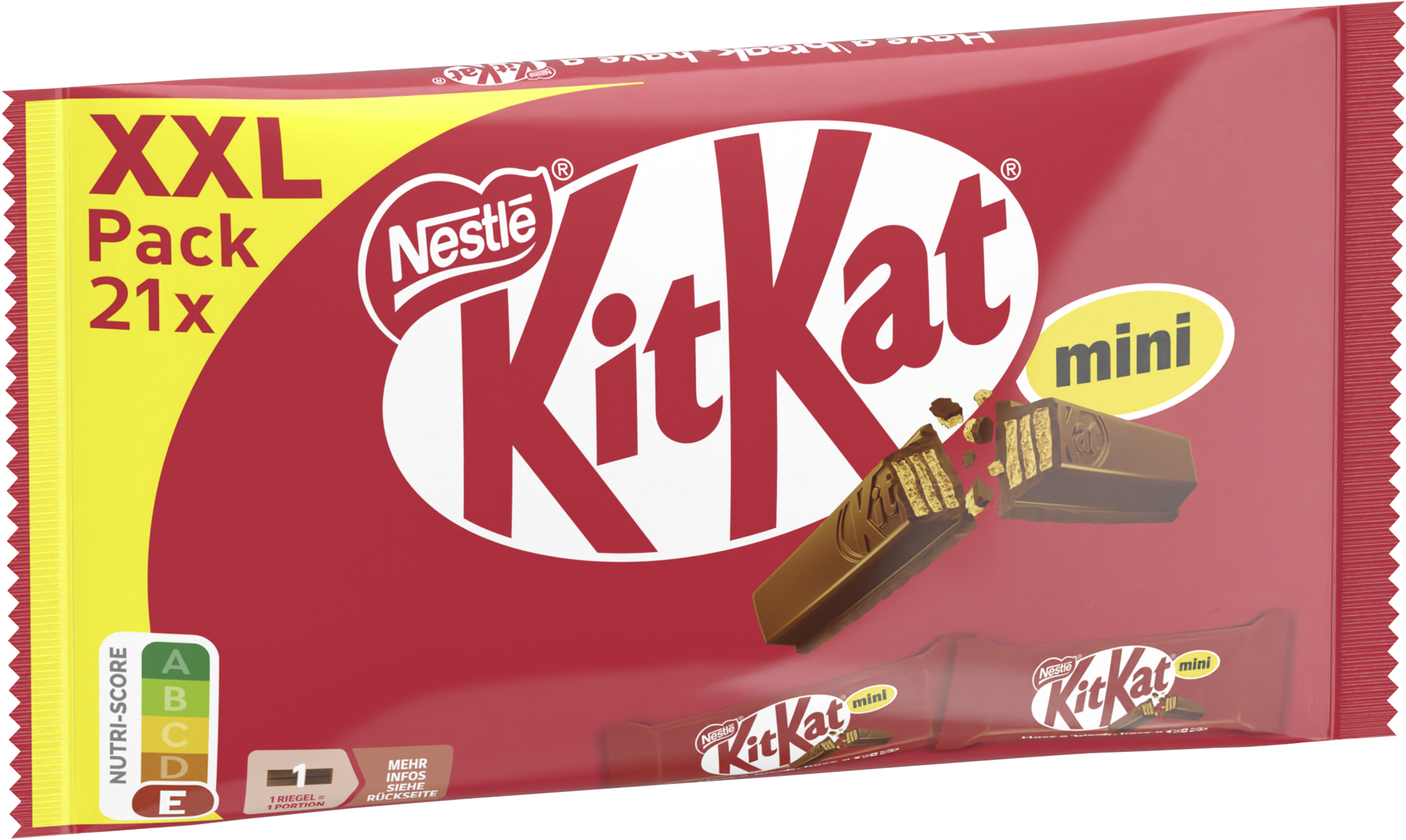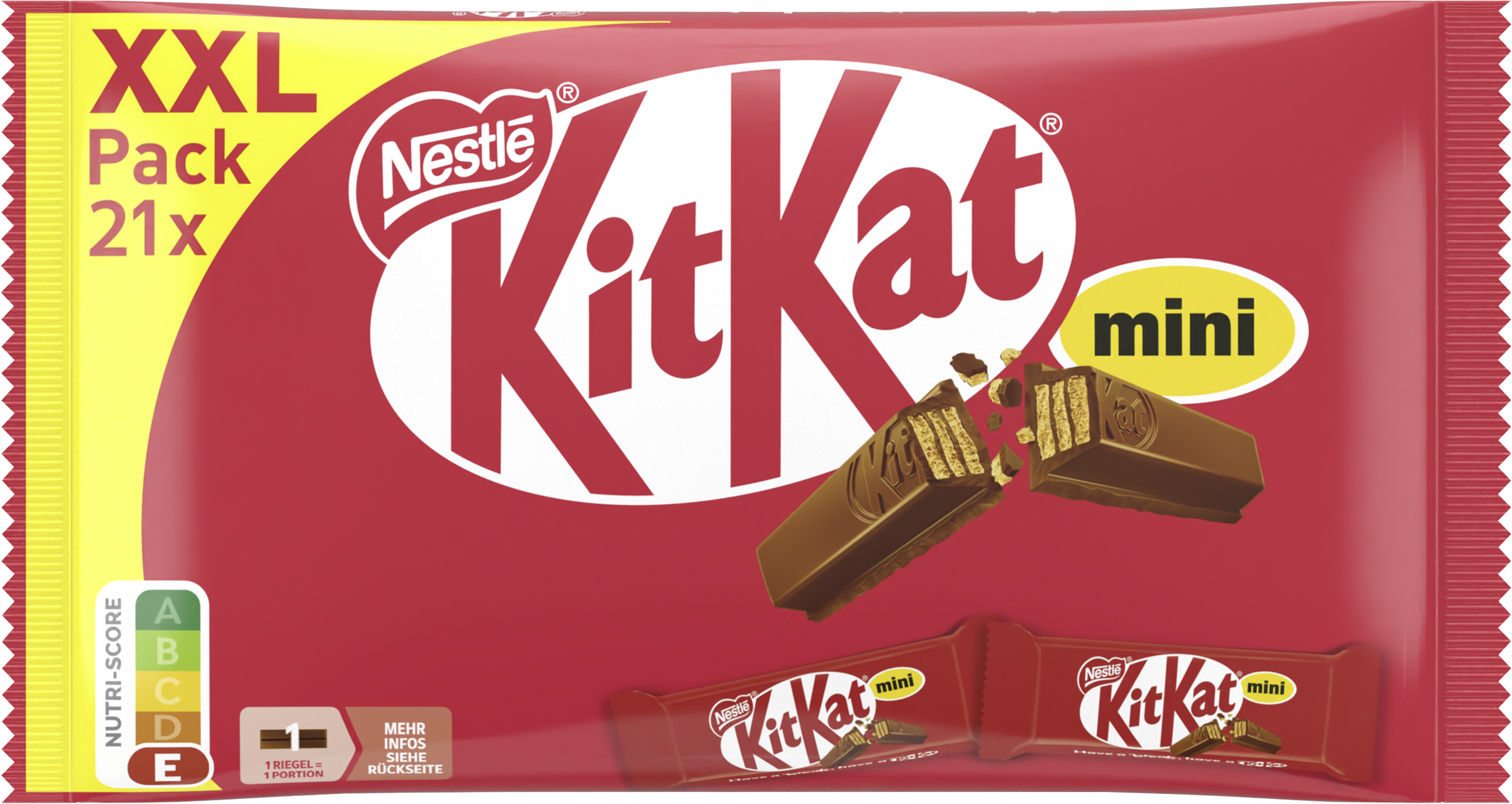 | Marketing Message | NESTLÉ KITKAT Mini XXL Schokoriegel Der Schokoladen-Klassiker für die kleine Pause. Seine einzigartige Kombination aus leckerer Milchschokolade und knuspriger Waffel macht KITKAT Mini zum leckeren Snack für zwischendurch. Der praktische Beutel lädt immer wieder zum Teilen und Naschen ein. Aber egal, ob man ihn alleine oder gemeinsam genießt: Eine entspannte KITKAT Pause lädt den Akku wieder auf. • Beliebter Schokoladenriegel mit knuspriger Waffel und leckerer Milchschokolade im Mini-Format • Perfekte Balance aus luftig, knuspriger Waffel umhüllt von zartschmelzender Milchschokolade • Schoko-Snack für eine entspannte KITKAT Pause oder zum Teilen mit Freunden oder Familie • Mit Rainforest-Alliance-zertifiziertem Kakao hergestellt |