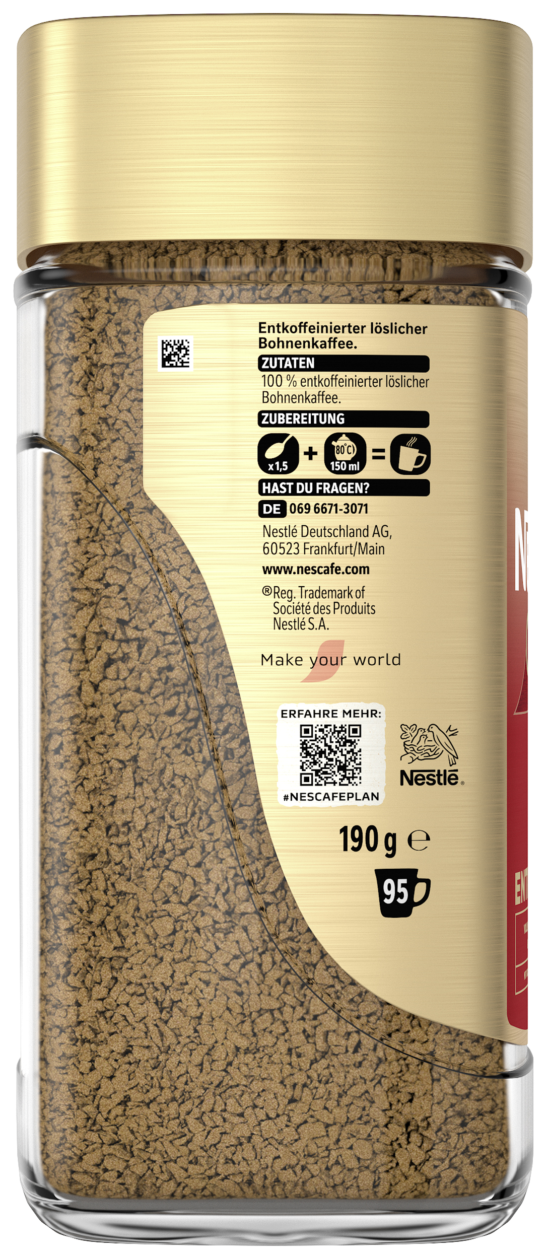 | Marketing Message | Genießen Sie mit NESCAFÉ GOLD Entkoffeiniert einen harmonischen, koffeinfreien Kaffee – mit Sorgfalt geröstet und entkoffeiniert. Für NESCAFÉ GOLD Entkoffeiniert werden nur erlesene Kaffeebohnen aus ausgewählten Anbaugebieten verwendet.