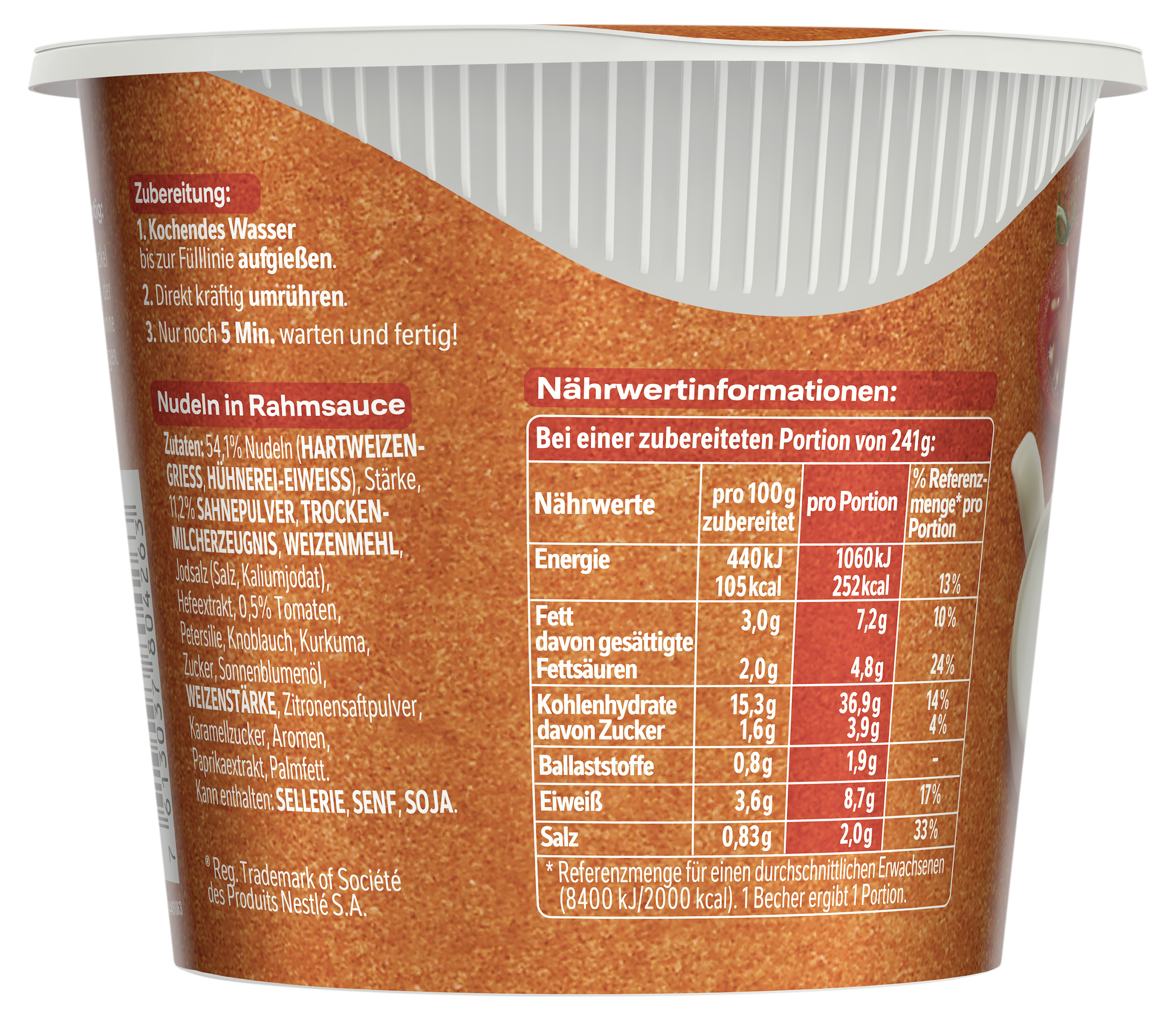| Regulated Product Name | Nudeln in Rahmsauce |
