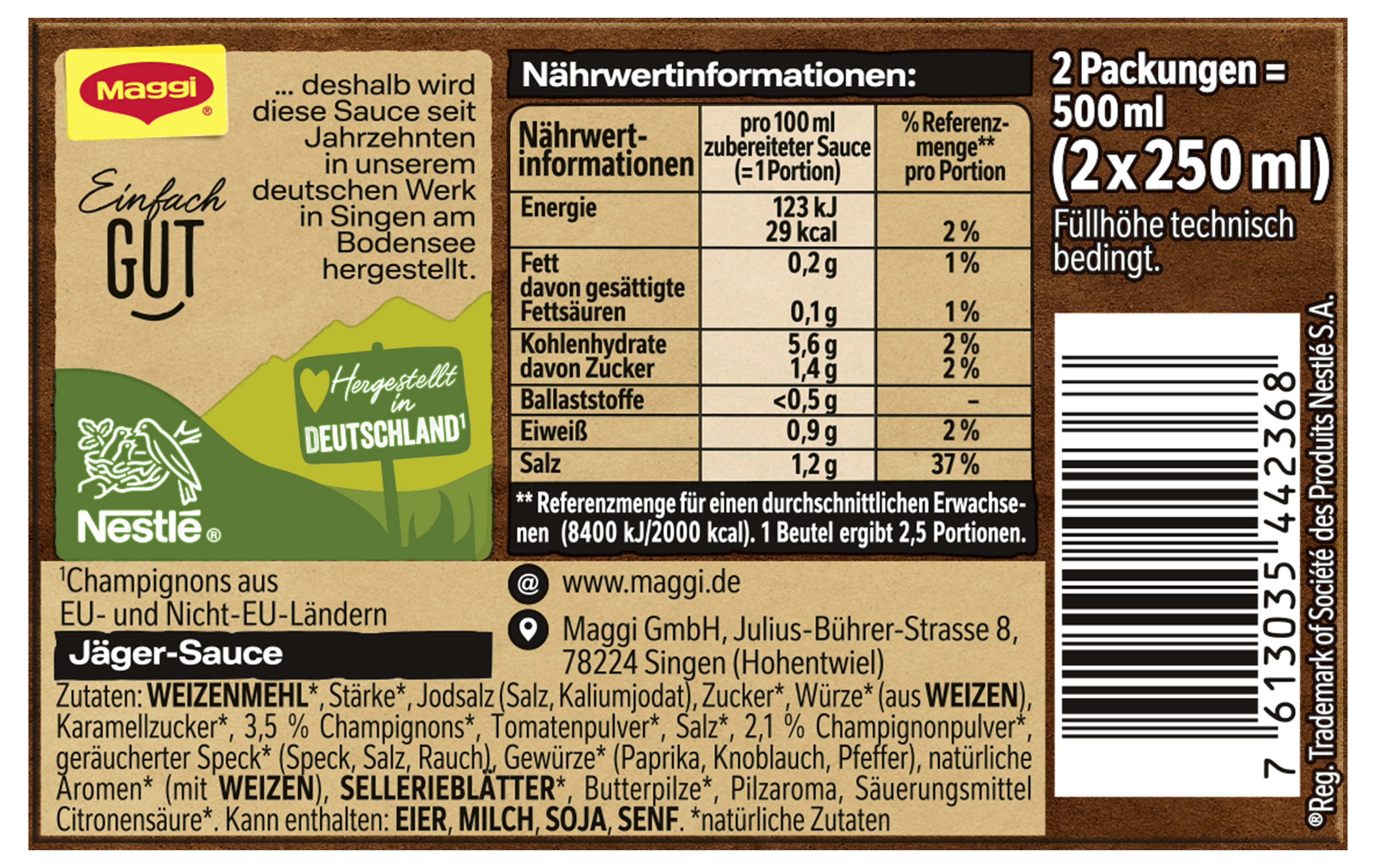 | Product Description | MAGGI Jägersauce 2er Multipack, ergibt 500ml |