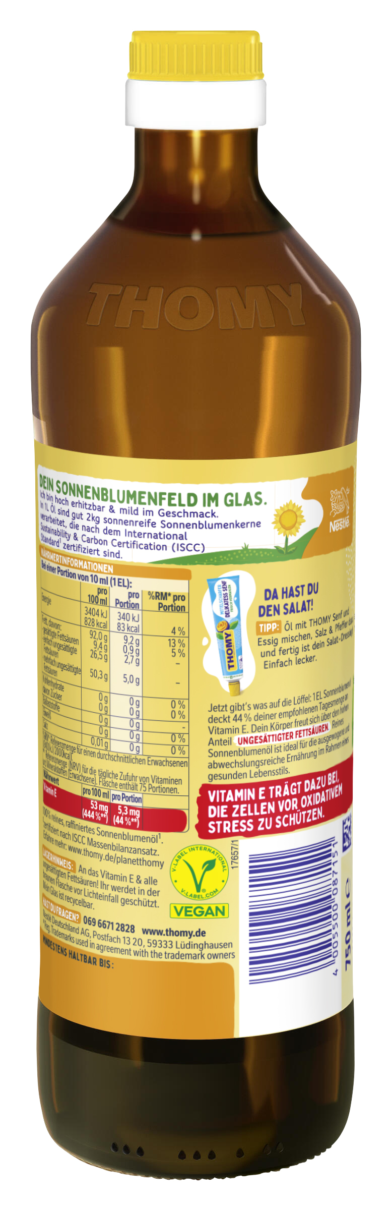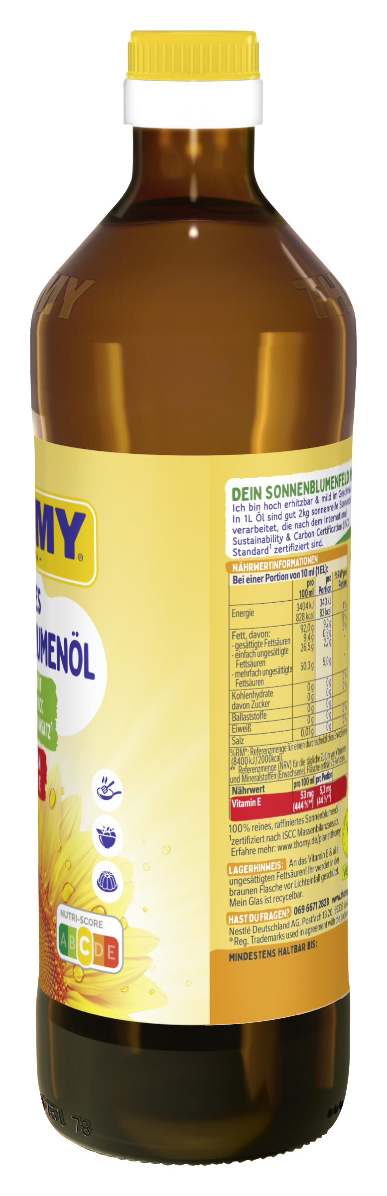 UNPREPARED1PTNBei einer Portion von 10 ml (1 EL)Referenzmenge für einen durchschnittlichen Erwachsenen (8400 kJ/ 2000 kcal).#Referenzmengen (NRV) für die tägliche Zufuhr von Vitaminen und Mineralstoffen (Erwachsene).ENER-EnergieAPPROXIMATELY340kJ4 UNPREPARED1PTNBei einer Portion von 10 ml (1 EL)Referenzmenge für einen durchschnittlichen Erwachsenen (8400 kJ/ 2000 kcal).#Referenzmengen (NRV) für die tägliche Zufuhr von Vitaminen und Mineralstoffen (Erwachsene).ENER-EnergieAPPROXIMATELY83kCal4 UNPREPARED1PTNBei einer Portion von 10 ml (1 EL)Referenzmenge für einen durchschnittlichen Erwachsenen (8400 kJ/ 2000 kcal).#Referenzmengen (NRV) für die tägliche Zufuhr von Vitaminen und Mineralstoffen (Erwachsene).FATFettAPPROXIMATELY9.2g13 UNPREPARED1PTNBei einer Portion von 10 ml (1 EL)Referenzmenge für einen durchschnittlichen Erwachsenen (8400 kJ/ 2000 kcal).#Referenzmengen (NRV) für die tägliche Zufuhr von Vitaminen und Mineralstoffen (Erwachsene).FASATFett, davon gesättigte FettsäurenAPPROXIMATELY0.9g5 UNPREPARED1PTNBei einer Portion von 10 ml (1 EL)Referenzmenge für einen durchschnittlichen Erwachsenen (8400 kJ/ 2000 kcal).#Referenzmengen (NRV) für die tägliche Zufuhr von Vitaminen und Mineralstoffen (Erwachsene).FAMSCISFett, davon einfach ungesättigte Fettsäuren (cis)APPROXIMATELY2.7g UNPREPARED1PTNBei einer Portion von 10 ml (1 EL)Referenzmenge für einen durchschnittlichen Erwachsenen (8400 kJ/ 2000 kcal).#Referenzmengen (NRV) für die tägliche Zufuhr von Vitaminen und Mineralstoffen (Erwachsene).FAPUCISFett, davon mehrfach ungesättigte Fettsäuren (cis)APPROXIMATELY5.0g UNPREPARED1PTNBei einer Portion von 10 ml (1 EL)Referenzmenge für einen durchschnittlichen Erwachsenen (8400 kJ/ 2000 kcal).#Referenzmengen (NRV) für die tägliche Zufuhr von Vitaminen und Mineralstoffen (Erwachsene).CHOAVLKohlenhydrateAPPROXIMATELY0g0 UNPREPARED1PTNBei einer Portion von 10 ml (1 EL)Referenzmenge für einen durchschnittlichen Erwachsenen (8400 kJ/ 2000 kcal).#Referenzmengen (NRV) für die tägliche Zufuhr von Vitaminen und Mineralstoffen (Erwachsene).SUGAR-Kohlenhydrate, davon ZuckerAPPROXIMATELY0g0 UNPREPARED1PTNBei einer Portion von 10 ml (1 EL)Referenzmenge für einen durchschnittlichen Erwachsenen (8400 kJ/ 2000 kcal).#Referenzmengen (NRV) für die tägliche Zufuhr von Vitaminen und Mineralstoffen (Erwachsene).FIBTGBallaststoffeAPPROXIMATELY0g UNPREPARED1PTNBei einer Portion von 10 ml (1 EL)Referenzmenge für einen durchschnittlichen Erwachsenen (8400 kJ/ 2000 kcal).#Referenzmengen (NRV) für die tägliche Zufuhr von Vitaminen und Mineralstoffen (Erwachsene).PRO-EiweißAPPROXIMATELY0g0 UNPREPARED1PTNBei einer Portion von 10 ml (1 EL)Referenzmenge für einen durchschnittlichen Erwachsenen (8400 kJ/ 2000 kcal).#Referenzmengen (NRV) für die tägliche Zufuhr von Vitaminen und Mineralstoffen (Erwachsene).SALTEQSalz ÄquivalentAPPROXIMATELY0g0 UNPREPARED1PTNBei einer Portion von 10 ml (1 EL)Referenzmenge für einen durchschnittlichen Erwachsenen (8400 kJ/ 2000 kcal).#Referenzmengen (NRV) für die tägliche Zufuhr von Vitaminen und Mineralstoffen (Erwachsene).VITE-Vitamin EAPPROXIMATELY5.3mg44