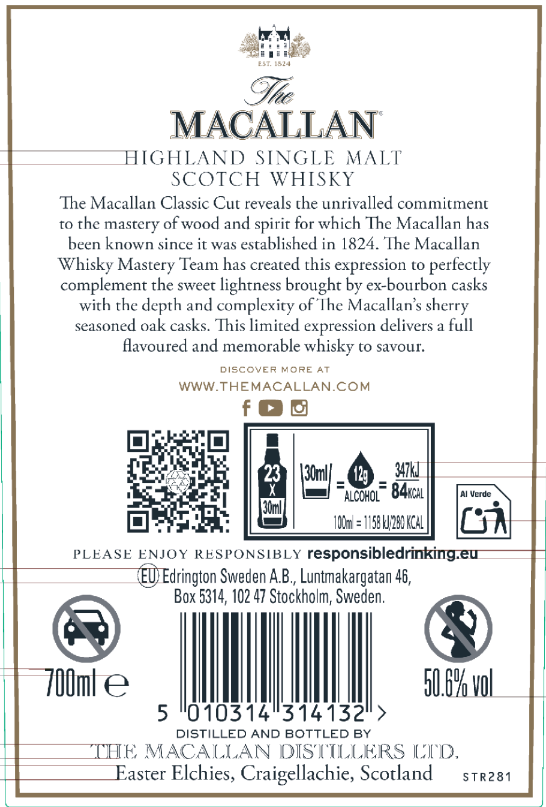 product_id 10013126 EAN_GTIN_UPC_MARA.EAN11 5010314314132 product_display_name The Macallan Classic Cut 2025 Edition 70cl ABV_MVKE.MVGR5 50.6 colour Golden Sunset aroma Orange oil, barley sugar, velvety milk chocolate. Caramel wafer, creamy vanilla panna cotta and freshly baked apple turnover. flavour Icing sugar sweetness with fresh fruits like grapefruit and mandarin. Lemon zested meringue and caramelised almonds. palate Icing sugar sweetness with fresh fruits like grapefruit and mandarin. Lemon zested meringue and caramelised almonds. finish More grapefruit, melon and a touch of warming oak spice.