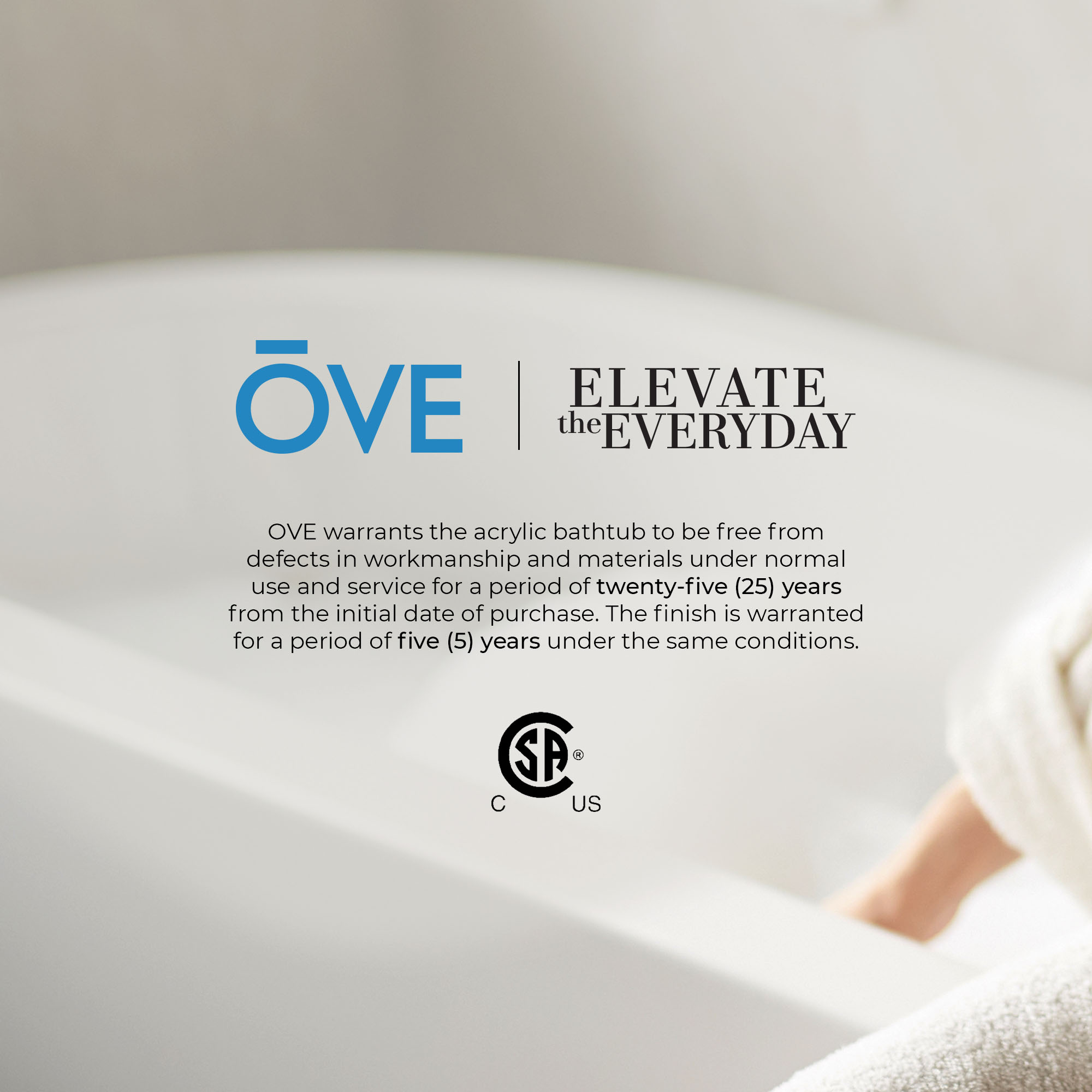 OVE Ayago 66 in. Freestanding Bathtub Kit, Glossy White, Including an extra Brushed Gold Pop-up Drain Cap