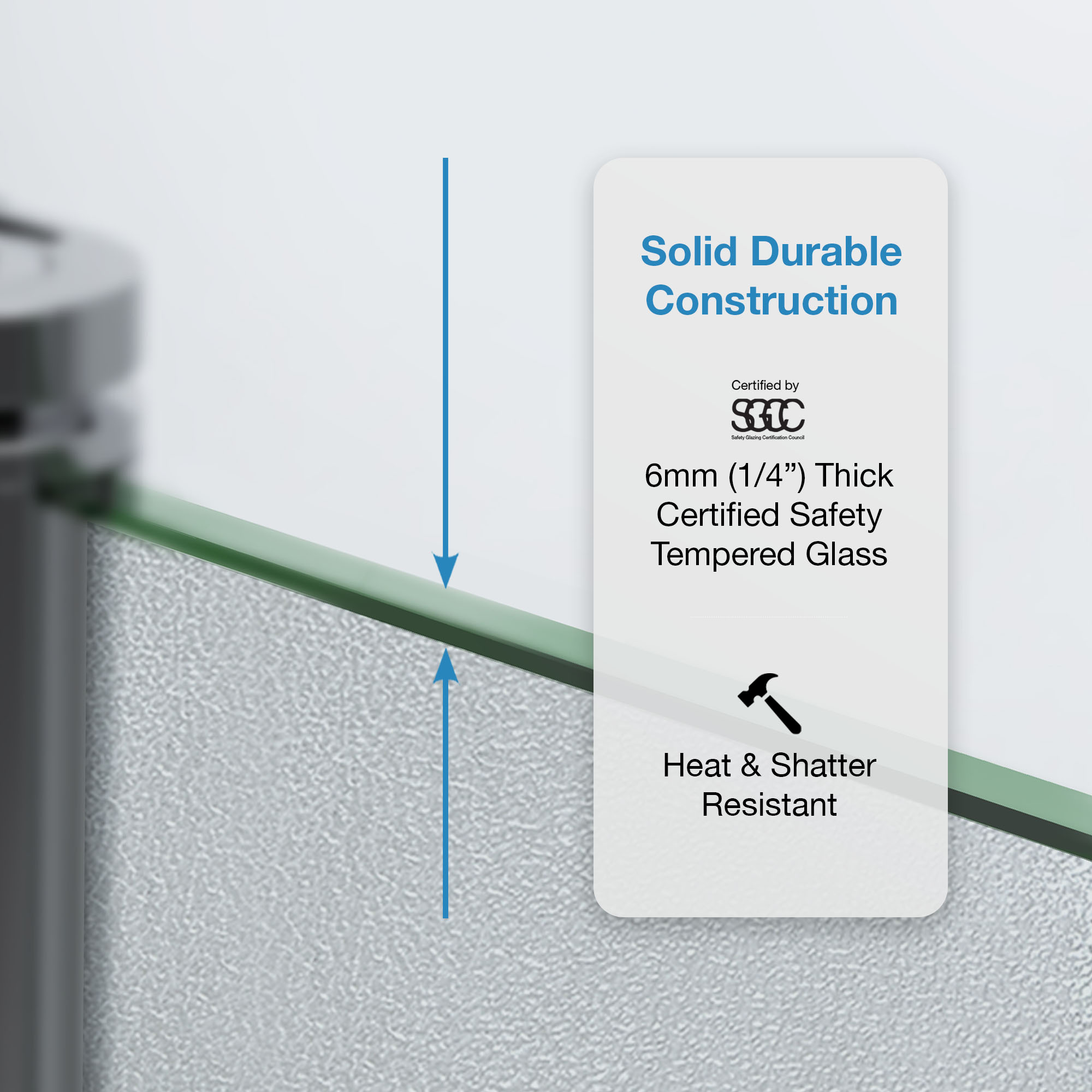 Kit includes acrylic base, glass shower door panels and high-quality durable hardware