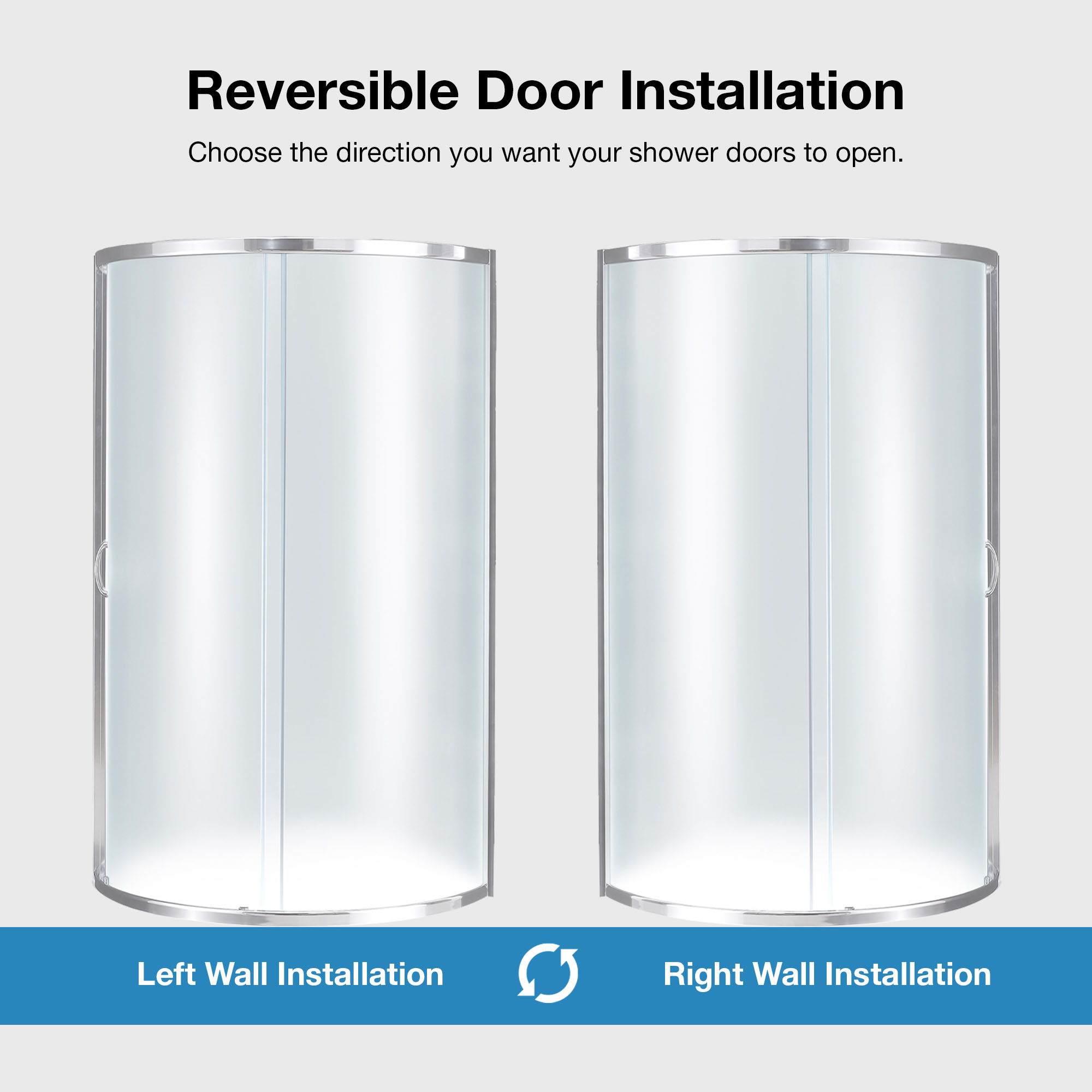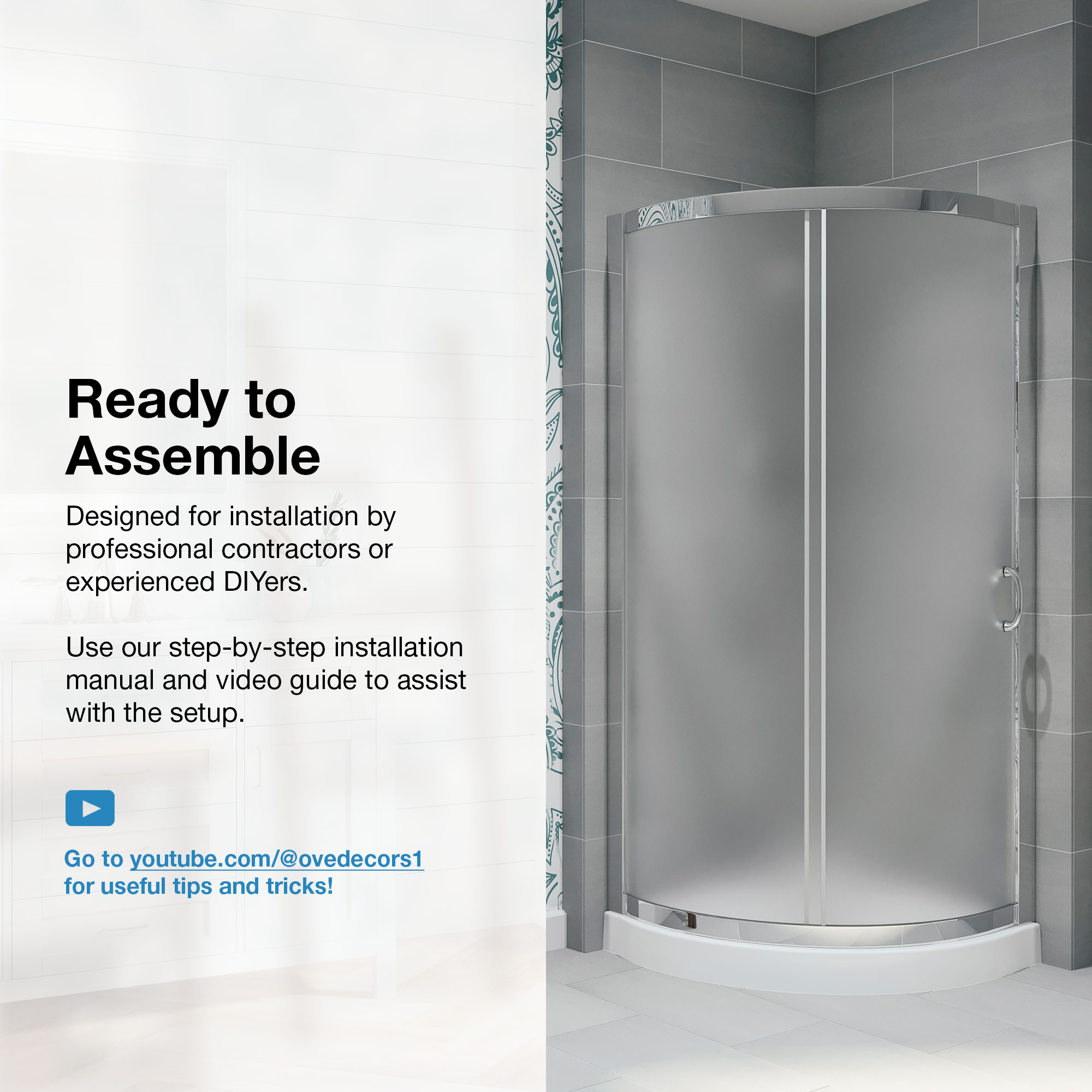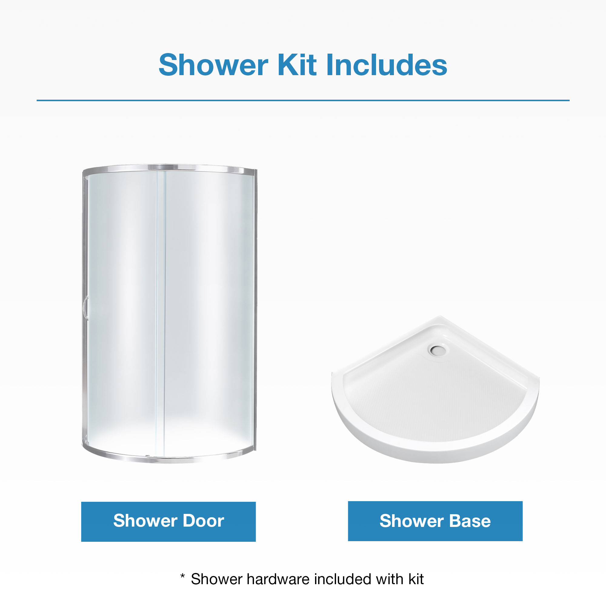 Breeze 40 in. L x 40 in. W x 77 in. H Round Corner Shower Kit in Chrome with Frosted Glass Sliding Door and Shower Base Pan (Walls not Included)
