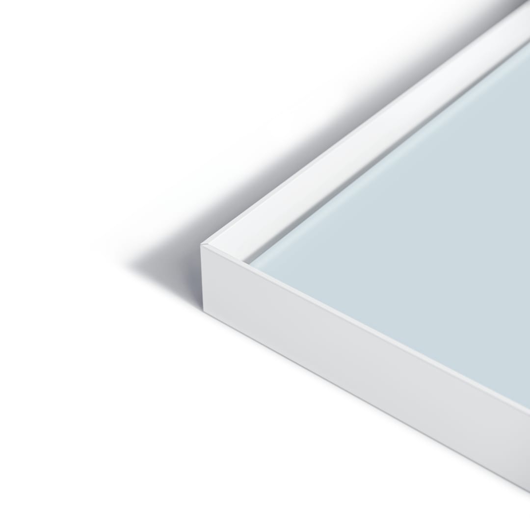 - Modern white aluminum frame design adds durability and hides all mounting hardware