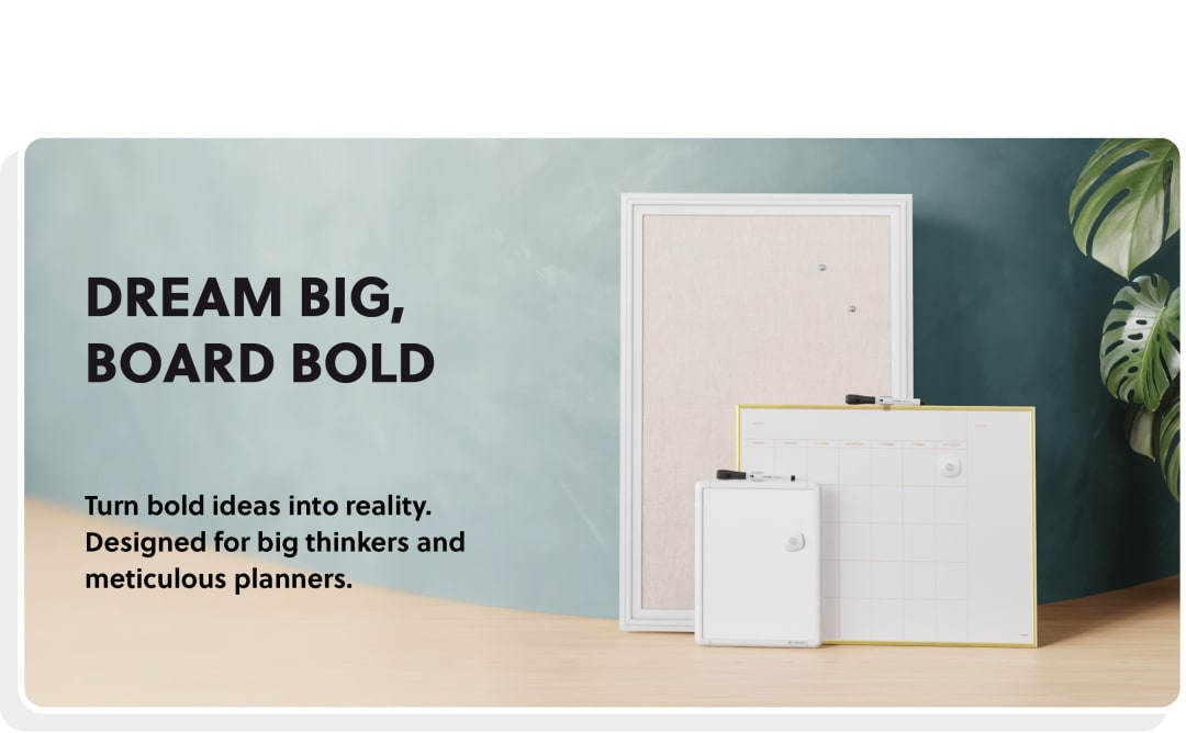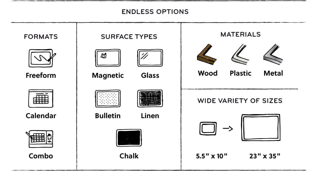 - 3N1 board surface features a white monthly calendar view, grey blank surface and built in felt strip that enables you to pin important notes and messages