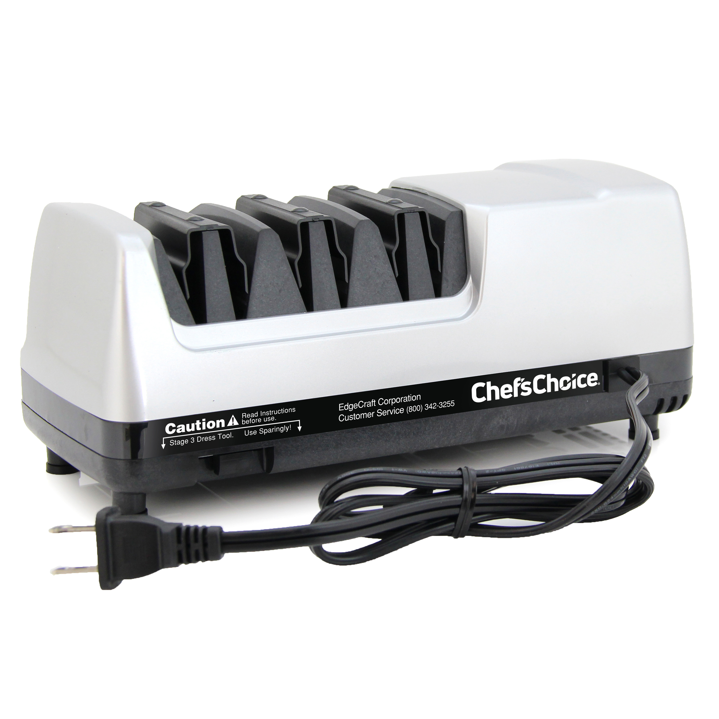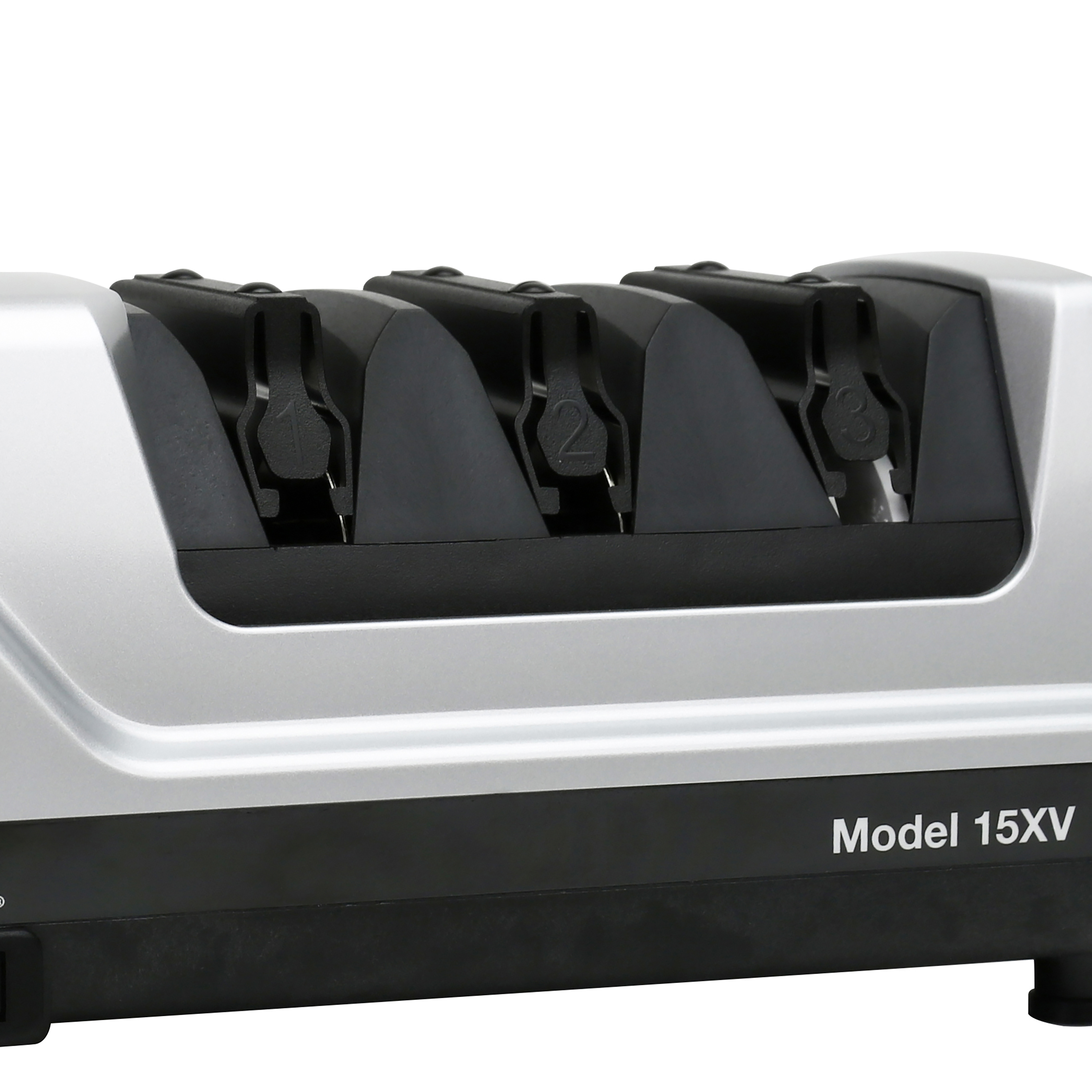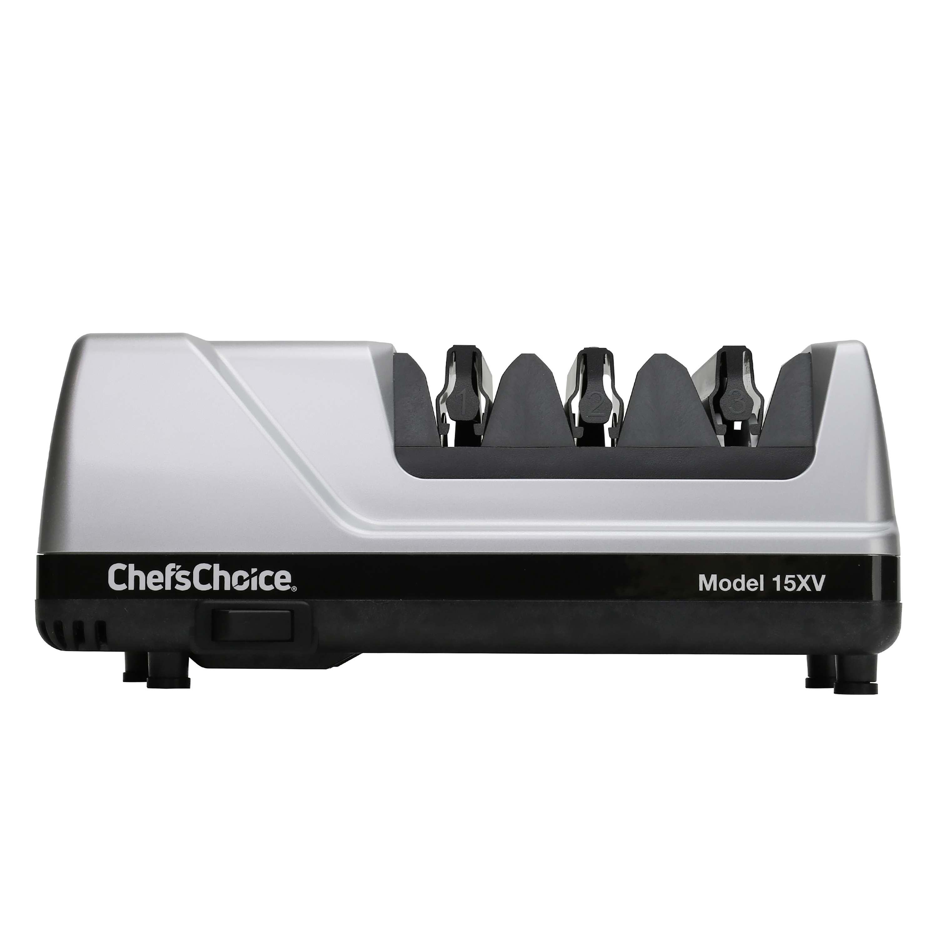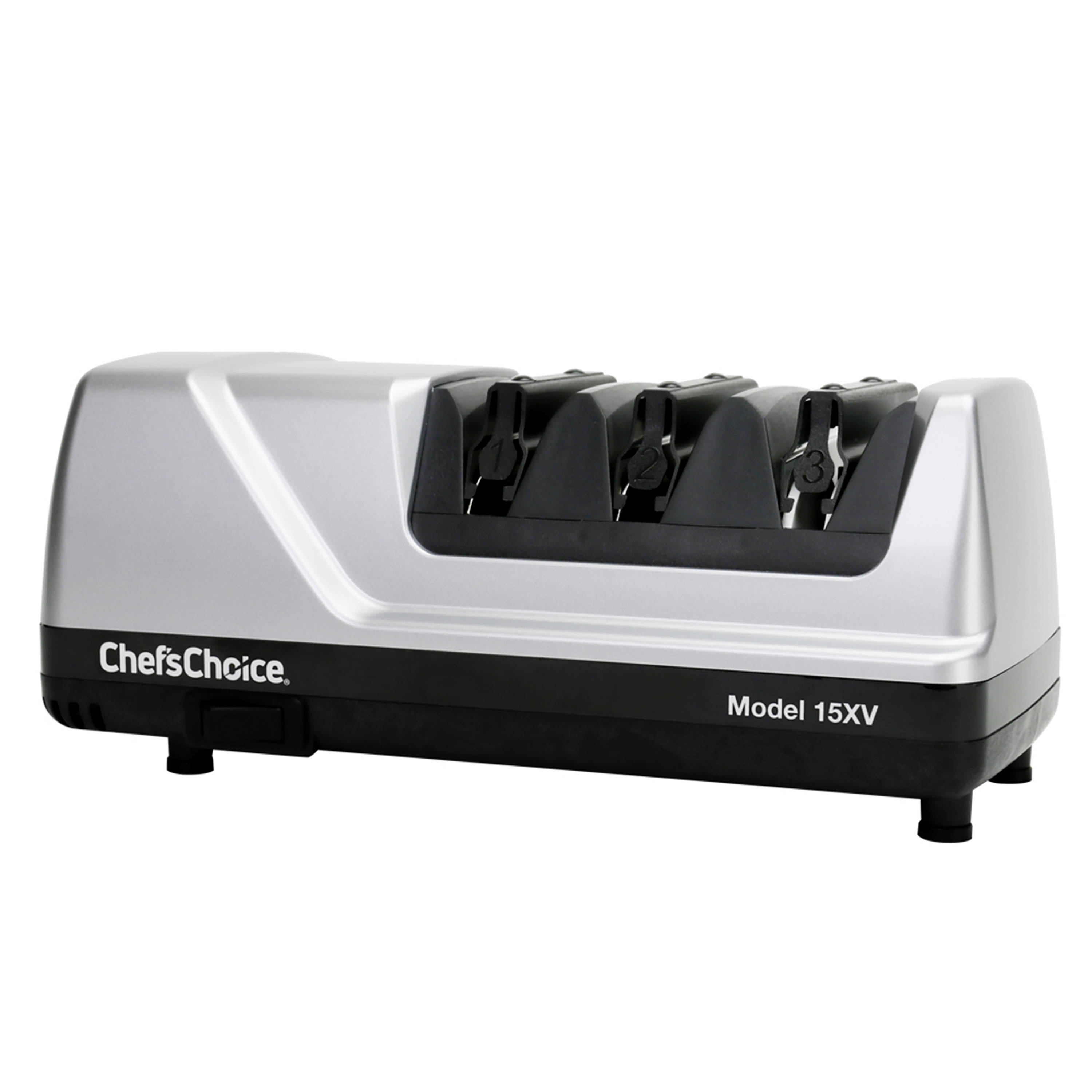 Description M15 XV PLATINUM DOT COM SKU 010A500 UPC 087877011155 Model 15XV Brand Chef'sChoice Product Line Smallwares Category Knife Sharpener Subcategory Electric Division Countertop Commercial / Residential Residential SKU Status Established Warranty 3 Year SRP 199.99 Long Description The 15XV professional 3-stage electric knife sharpener is the ideal solution for improved cutting performance on 15-degree class knives. Using 100 percent diamonds, the hardest natural substance on earth, our patented abrasives sharpen faster and easier to create an ultra-sharp, longer lasting edge. In the final stage, patented stropping disks create an unparalleled polished finish. Precision angle guides ensure accurate sharpening throughout the entire blade length and eliminate any guesswork. In addition, this sharpener can easily convert a traditional 20-degree knife edge to more precise 15-degree edge. This unit is designed to work with both straight-edge and serrated knives. WHY YOU NEED A KNIFE SHARPENER – Over time, a knife’s edge dulls under the stress of cutting. The overall performance can be significantly improved if sharpened and maintained correctly. HOW DO KNIFE SHARPENERS WORK – Good sharpening systems shape the knife edge with a coarse abrasive and polish with a finer abrasive. Bullet 1 3-stage electric sharper applies an ultra-sharp edge to most 15-degree knives Bullet 2 Proprietary diamond abrasives sharpen edges faster and easier Bullet 3 Utilizing the hardest natural substance on earth, our proprietary diamond abrasives sharpen edges faster and easier Bullet 4 Creates an ultra-sharp, longer lasting, triple bevel edge Bullet 5 3 distinct facets set at different angles that form a longer lasting, arch-shaped edge Bullet 6 Chosen as the best knife sharpener in a test of 9 models by America’s Test Kitchen Assembled Weight (lb) 4.16 Unit Dimensions (in) 10.00" x 4.25" x 4.25" Assembly Required No Color Platinum Abrasive Material Diamond Material - Plastic