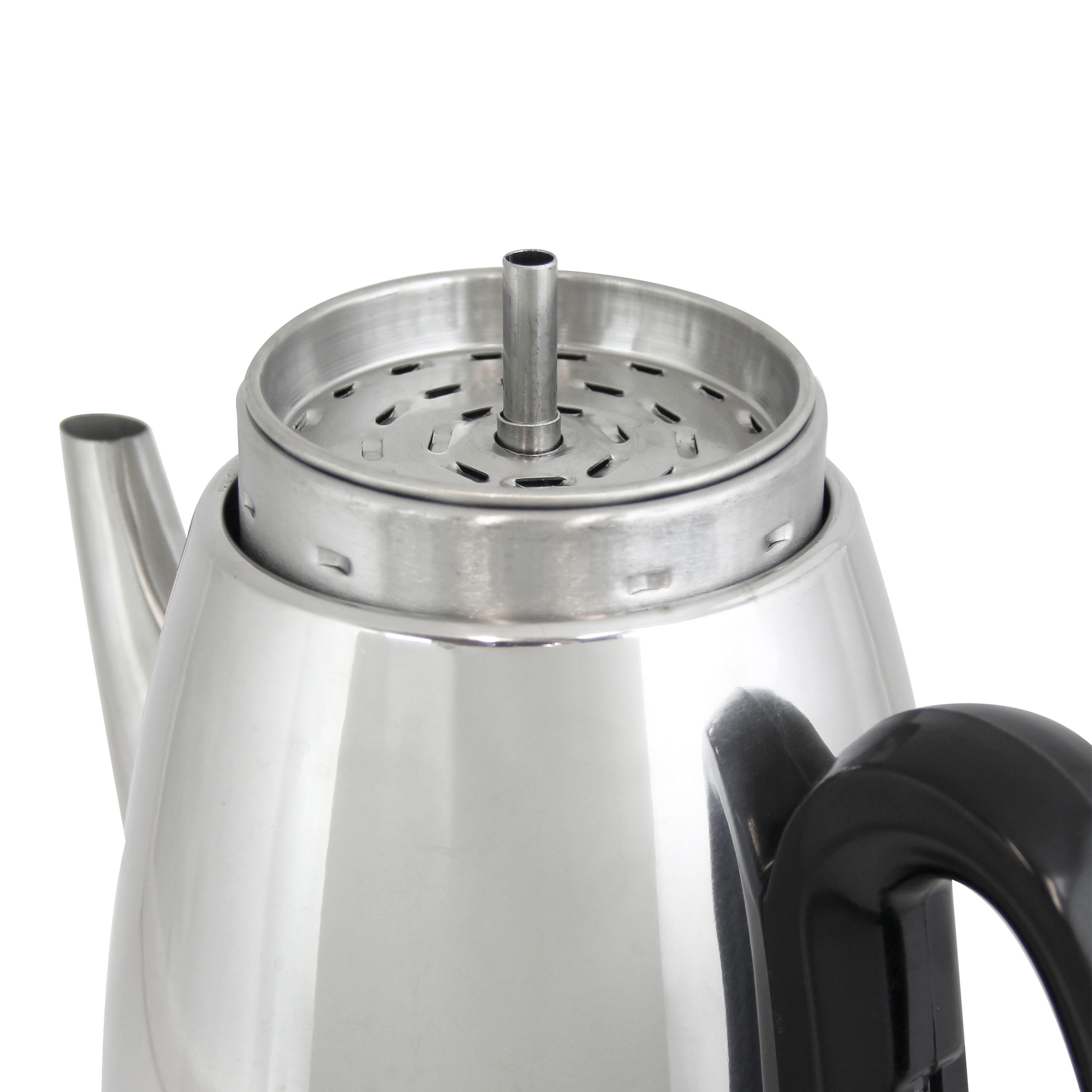 Description 12-Cup Percolator - Stainless SKU 54159 UPC 072244541595 Model 54159 Brand West Bend Product Line Drinking Category Coffee Subcategory Coffee Percolator Division Countertop Commercial / Residential Residential SKU Status Established Warranty 1 Year Limited Warranty SRP 64.99 Long Description Housed in stainless steel with an attractive chrome mirror finish, this quick-brewing electric percolator makes 12 cups of coffee quickly. When brewing is complete, it automatically switches to a "keep warm" temperature to ensure each cup is as warm as the first. Great for entertaining, the percolator has a ready-to-serve light that indicates when coffee is ready to enjoy, and its detachable cord provides the ability to serve fresh perked coffee right at the table without any hassle. Other useful features include a heat resistance handle and base, removable components that are dishwasher safe, and a stainless steel stem, basket, and spreader. The percolator measures 7.00 (W) x 9.50 (D) x 12.50 (H) inches and comes with a one-year warranty. Bullet 1 2-12 Cup Capacity is perfect for serving one or many Bullet 2 Ready-to-serve indicator light Bullet 3 Keep Warm mode keeps coffee at the perfect serving temperature, automatically Bullet 4 Cord detaches for tabletop serving Bullet 5 Coffee level indicator on handle Bullet 6 Handle and base are heat-resistant Bullet 7 Stainless steel stem and basket Bullet 8 950 watts Bullet 9 Covered by West Bend's One Year Limited Warranty Assembled Weight (lb) 2.74 Unit Dimensions (in) 5.91" x 9.57" x 11.82" Assembly Required No Volume Capacity 2.83 L Color Silver Material Stainless Steel Size 12-cup Electric Yes Electrical Specs 8A/120V/950W Plug Type A Use and Care Instructions Hand Wash Only Included Components Stainless steel stem and basket Unit of Measure EA Shipping Dimensions (in) 10.04" x 7.87" x 13.46" Shipping Weight 3.88 Shipping Quantity 1 Shipped Assembled? Yes Ship Type Small Parcel Country of Origin CN-CHINA Prop 65 Compliant Yes Prop 65 Warning Type This product can expose an individual to chemicals that have been identified by the state of California to possibly be dangerous leading to various diseases, birth defects or other human reproductive system harm. For more information go to WWW.P65Warnings.ca.gov. BPA Free No DOE Certified Not Required CEC Certified Not Required NRCan Listed Not Required