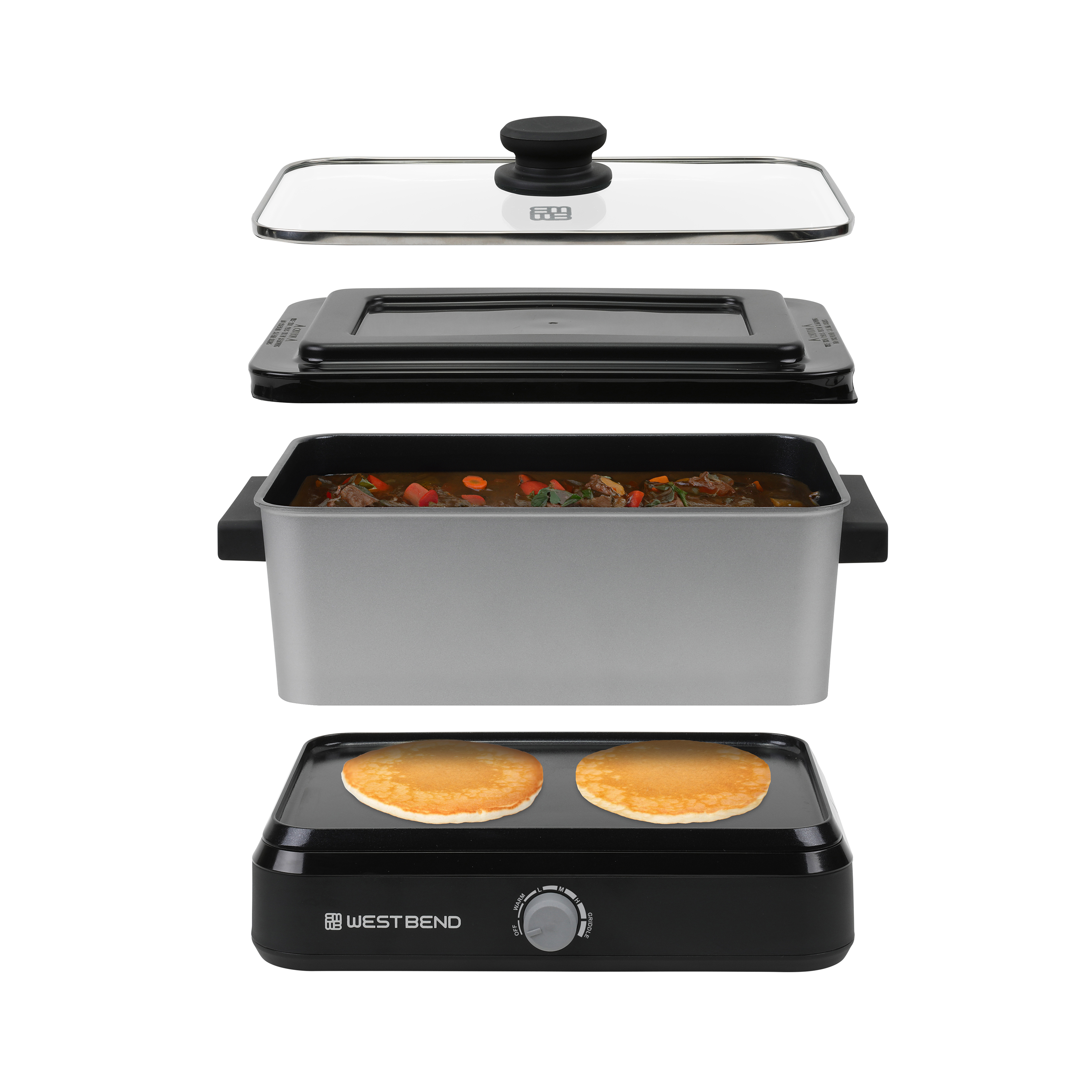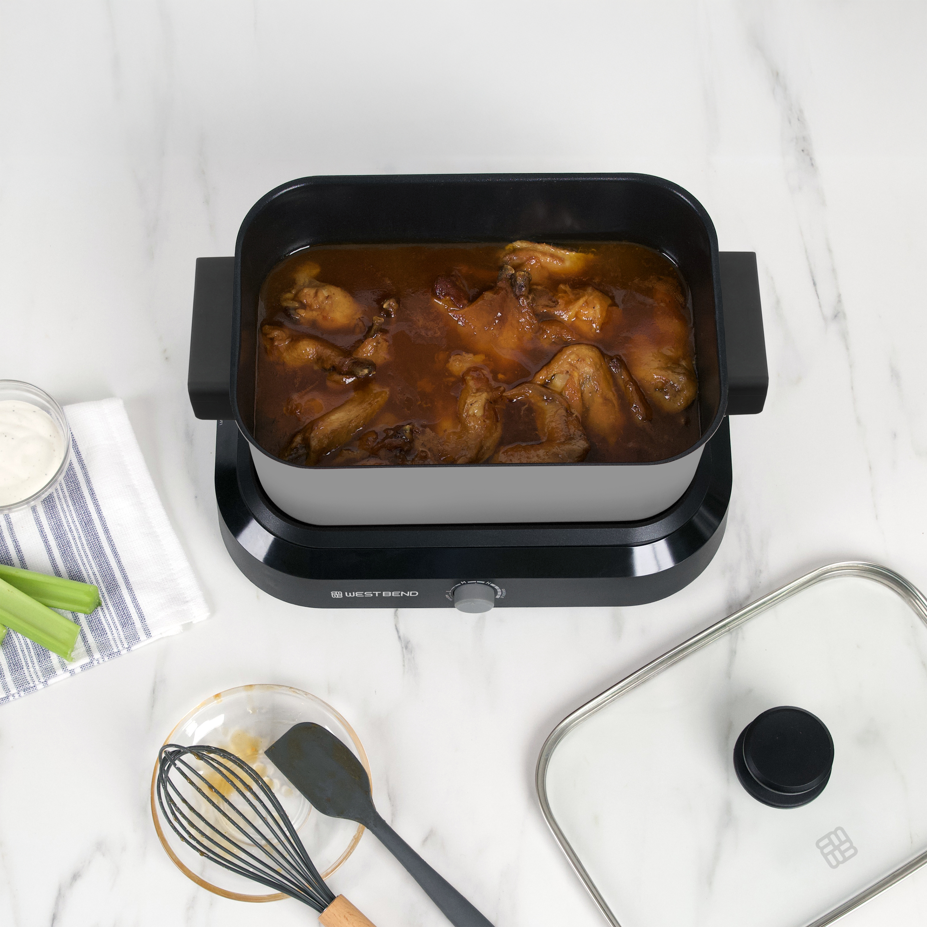 | Long Description | Are you tired of spending hours in the kitchen preparing meals? Look no further than the West Bend Versatility Cooker with Storage Bag and Non-Stick Surface, 5 Qt. Capacity. This powerhouse appliance is here to revolutionize the way you cook, from intimate dinners for two to entertaining a whole crowd. The West Bend Versatility Cooker is your culinary sidekick, accommodating meals of various sizes with its 5-quart capacity. Whether you're cooking for a cozy date night or hosting a big gathering, this versatile cooker has got you covered. Say goodbye to kitchen stress and hello to effortless cooking with the West Bend Versatility Cooker. The non-stick interior of the 5-quart cooking vessel, with cool touch handles is a game-changer. It allows for easy cooking and even easier cleaning – no more scrubbing and soaking pots and pans. Plus, this vessel is multifunctional; it can be used in the oven, on the stove top, in the freezer, or refrigerator. Includes storage bag with plastic travel lid for easy organization. Talk about convenience! With the West Bend Versatility Cooker, the possibilities are endless. From whipping up fluffy pancakes to crafting the perfect grilled cheese sandwich, this cooker is a versatile kitchen companion that can handle a variety of dishes, with Warm, Low, Medium, High, and Griddle settings. Keep an eye on your culinary creations with the transparent, heat-resistant glass cover of the West Bend Versatility Cooker. No more constant lid-lifting to check on your meal – simply glance through the glass and monitor your food's progress without losing any heat. Cooking made easy! The West Bend Versatility Cooker features a warm setting that maintains your meals at a food-safe temperature, ensuring that your dishes are always ready to be served without any compromise on taste or quality. |