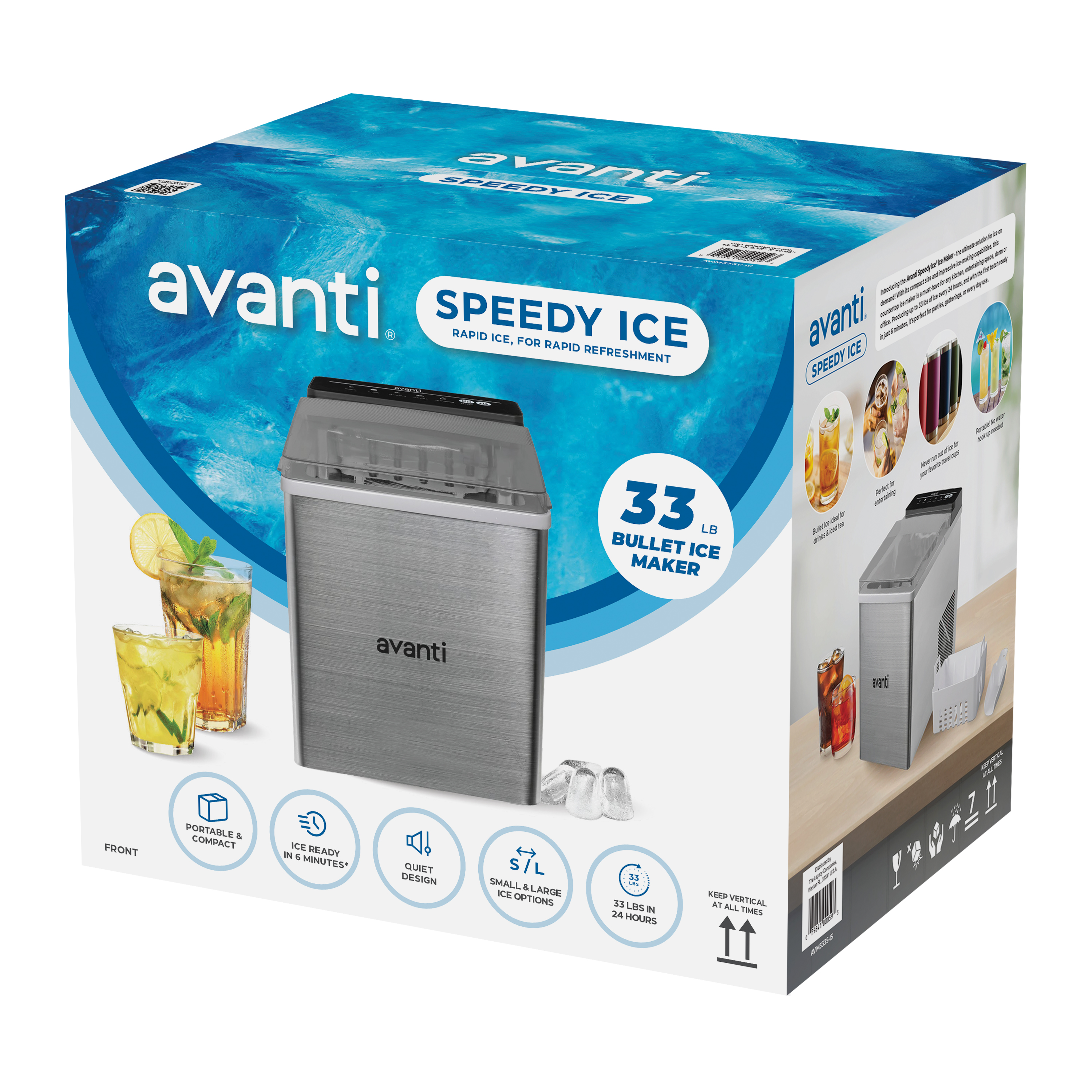 | Long Description | Experience the convenience of having fresh ice at your fingertips with the Avanti Speedy Ice 33lb. Countertop Bullet Ice Maker. This cutting-edge appliance is designed to deliver up to 33 pounds of ice per day, ensuring you have an ample supply for any occasion. Whether you're hosting a lively party, enjoying a quiet night in, or planning an on-the-go event, this ice maker is your ultimate companion. The Avanti ice maker's compact design ensures it fits seamlessly onto any countertop, making it an ideal addition to your kitchen, bar, or entertainment area. Despite its small footprint, it packs a powerful punch in terms of performance, having the ability to quickly produce a batch of ice in as little as six minutes. One of the standout features of the Avanti ice maker is its versatility. It offers the flexibility to produce both small and large smooth, bullet-shaped ice cubes, catering to your specific preferences. Whether you need smaller cubes for cocktails or larger ones for iced tea, this machine has you covered. The choice is yours, and the Avanti Speedy Ice delivers every time. Operating the Avanti ice maker is incredibly easy, thanks to its intuitive digital touch controls and user-friendly design. The water level indicator provides a clear signal when it’s time to refill the reservoir, ensuring a continuous supply of ice. Maintenance is a breeze with the Avanti ice maker’s self-cleaning function. This feature ensures that your ice is always fresh and clean. The ‘Add Water’ indicator is another thoughtful addition, notifying you promptly when the water reservoir needs refilling. This proactive feature prevents any interruptions in ice production, so you can rest easy knowing that a fresh batch of ice is always on its way. Included with the ice maker is a convenient ice scoop, making serving a simple and hygienic process. Say goodbye to the hassle of ice trays and hello to the ease of having fresh, bullet-shaped ice cubes ready at your command. |