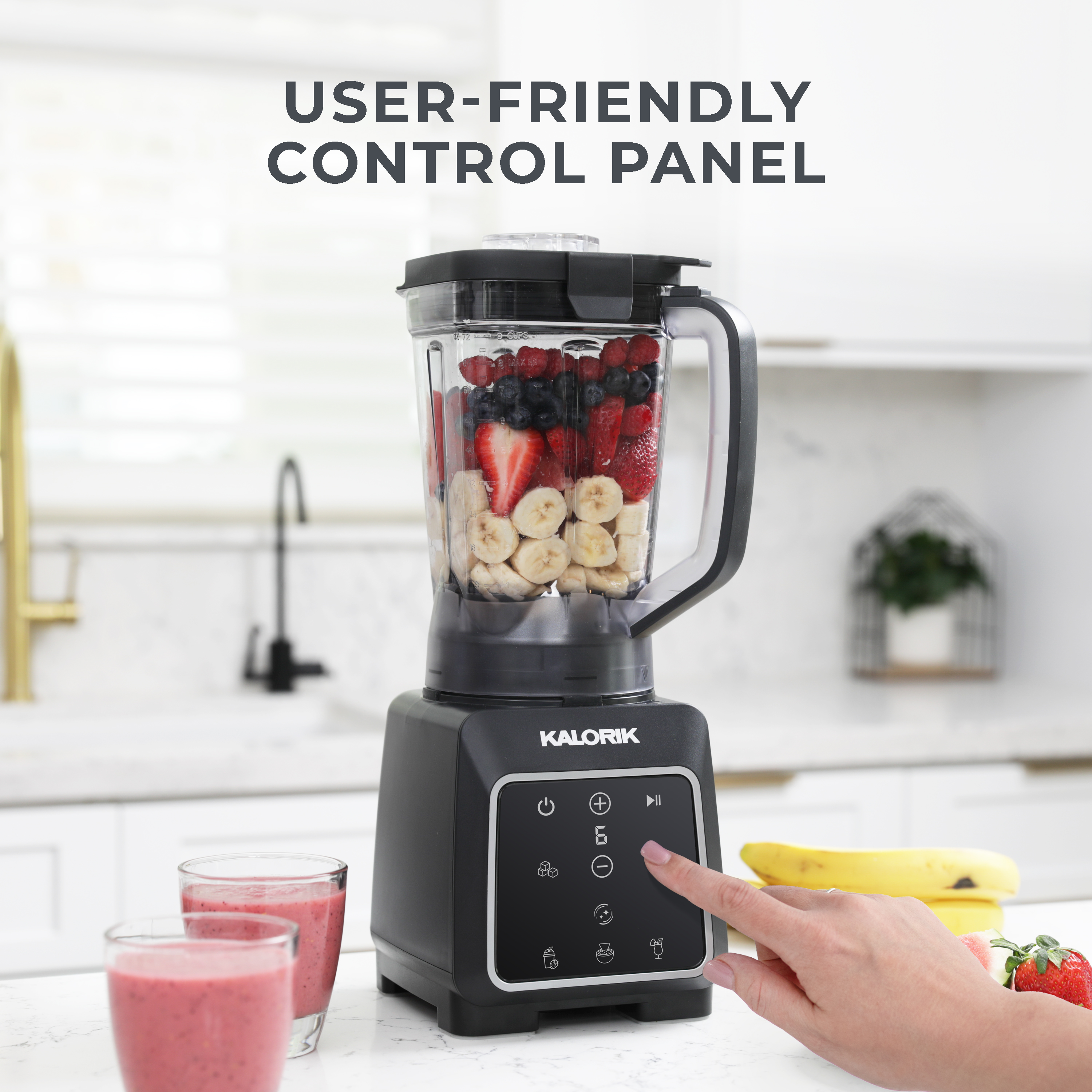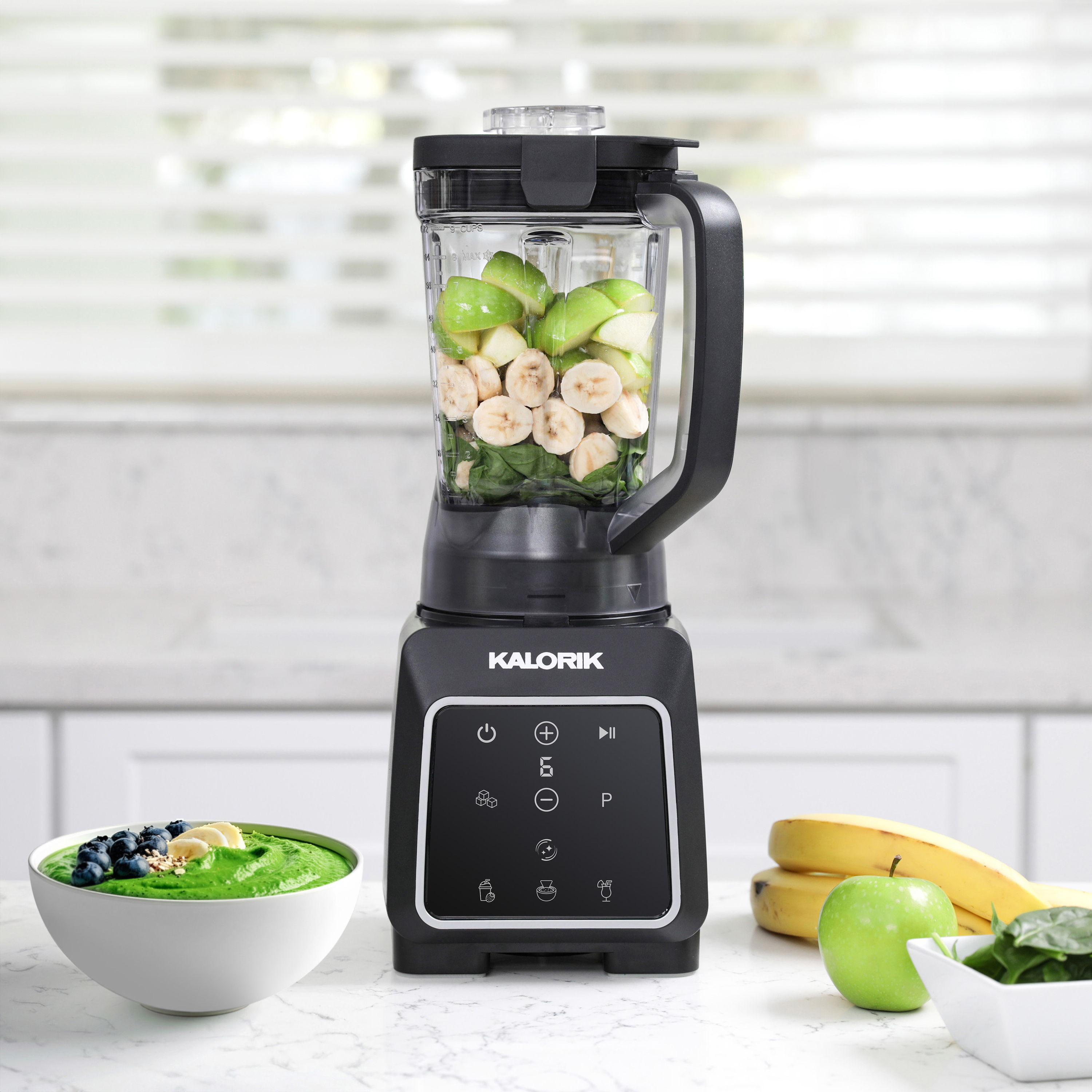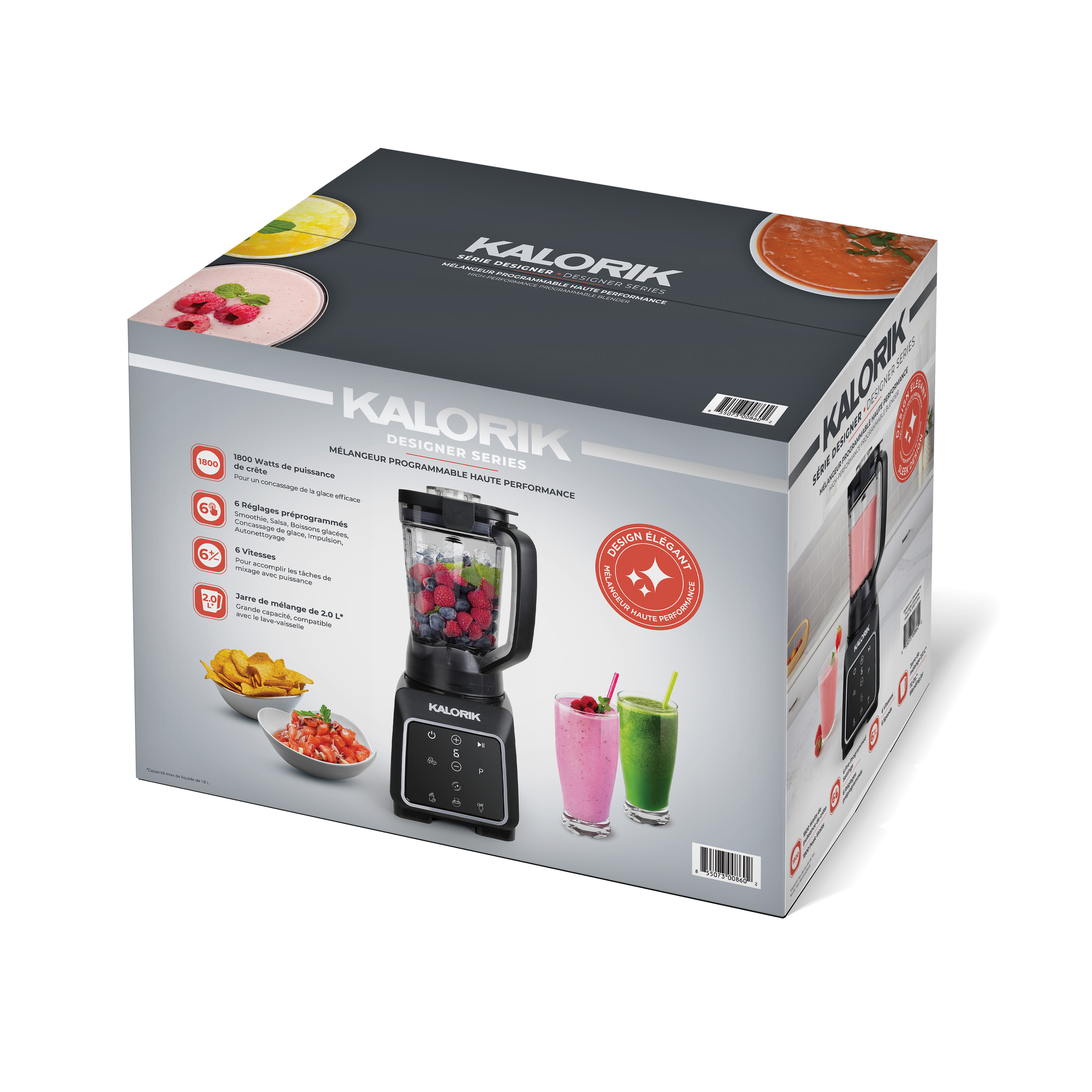 | Long Description | Ready to make your blending routine easier, faster, and more efficient? The 1800-watt High-Performance Programmable Blender from the Kalorik Designer Series collection is built to elevate your kitchen experience and simplify daily meal prep. Whether you're crafting nutritious smoothies, whipping up fresh salsa, or experimenting with frozen cocktails, this versatile blender delivers consistently smooth results with minimal effort. Its powerful motor effortlessly blends tough ingredients like frozen fruit, leafy greens, and ice cubes ensuring a smooth texture every time. With six smart preprogrammed functions: Smoothie, Salsa, Frozen Drinks, Ice Crush, Pulse, and Self-Clean—you can achieve perfect results at the touch of a button. Prefer to fine-tune your blends? Choose from six adjustable manual speed settings for ultimate precision and control. The generous 72-ounce BPA-free jar accommodates large batches, making it ideal for family meals, entertaining guests, or prepping ahead for the week. When it comes to cleanup, convenience is built right in. Just add warm water and a drop of dish soap, then select the self-clean function to rinse the jar with minimal hassle. Designed with both performance and safety in mind, this blender features a secure lock-in guide system and intuitive controls for safe, reliable operation every time. Finished in a sleek, modern aesthetic that complements any kitchen décor, the Kalorik Designer Series High-Performance Blender combines stunning style with robust functionality. It’s more than just a blender—it’s a countertop essential that enhances your lifestyle and helps you blend with confidence. |