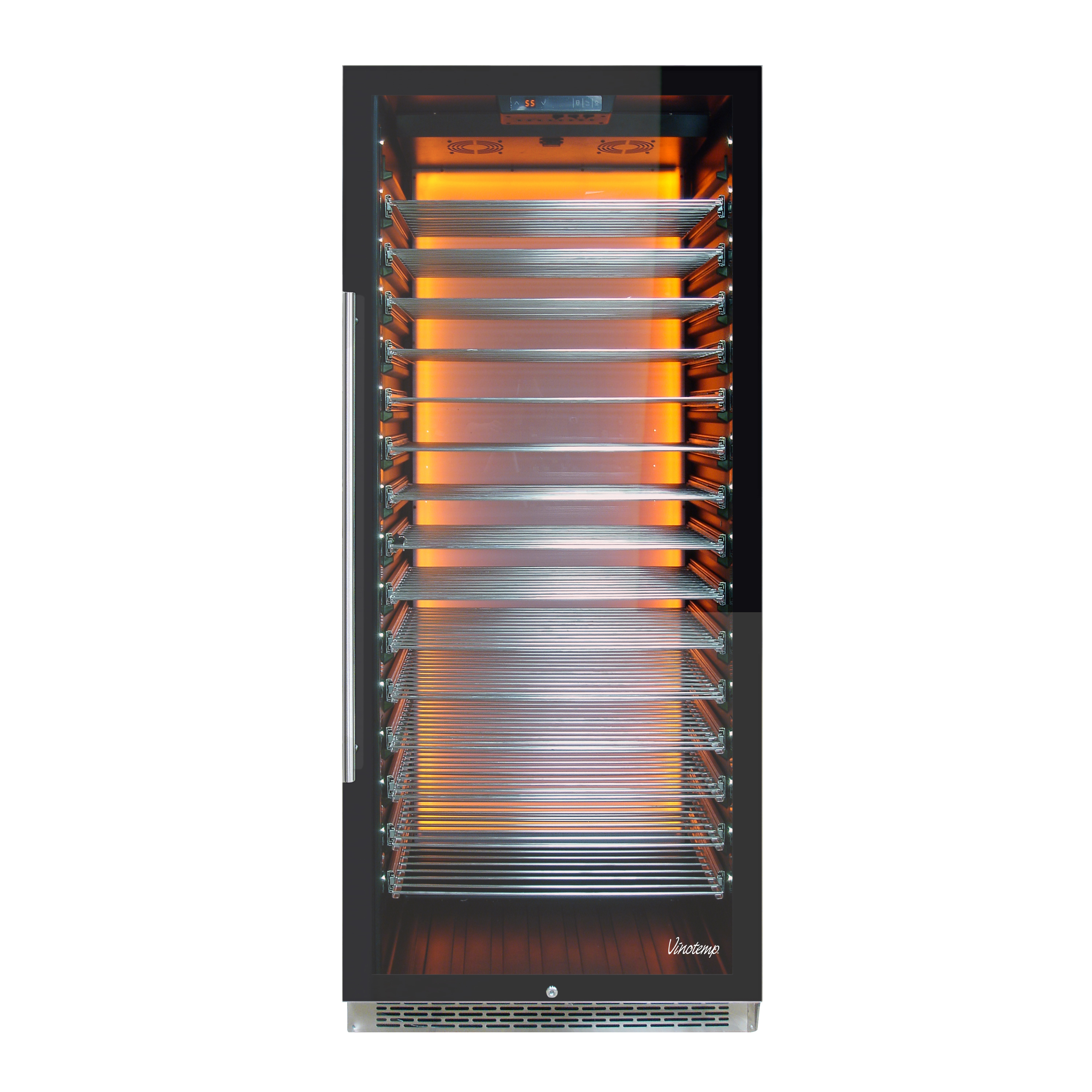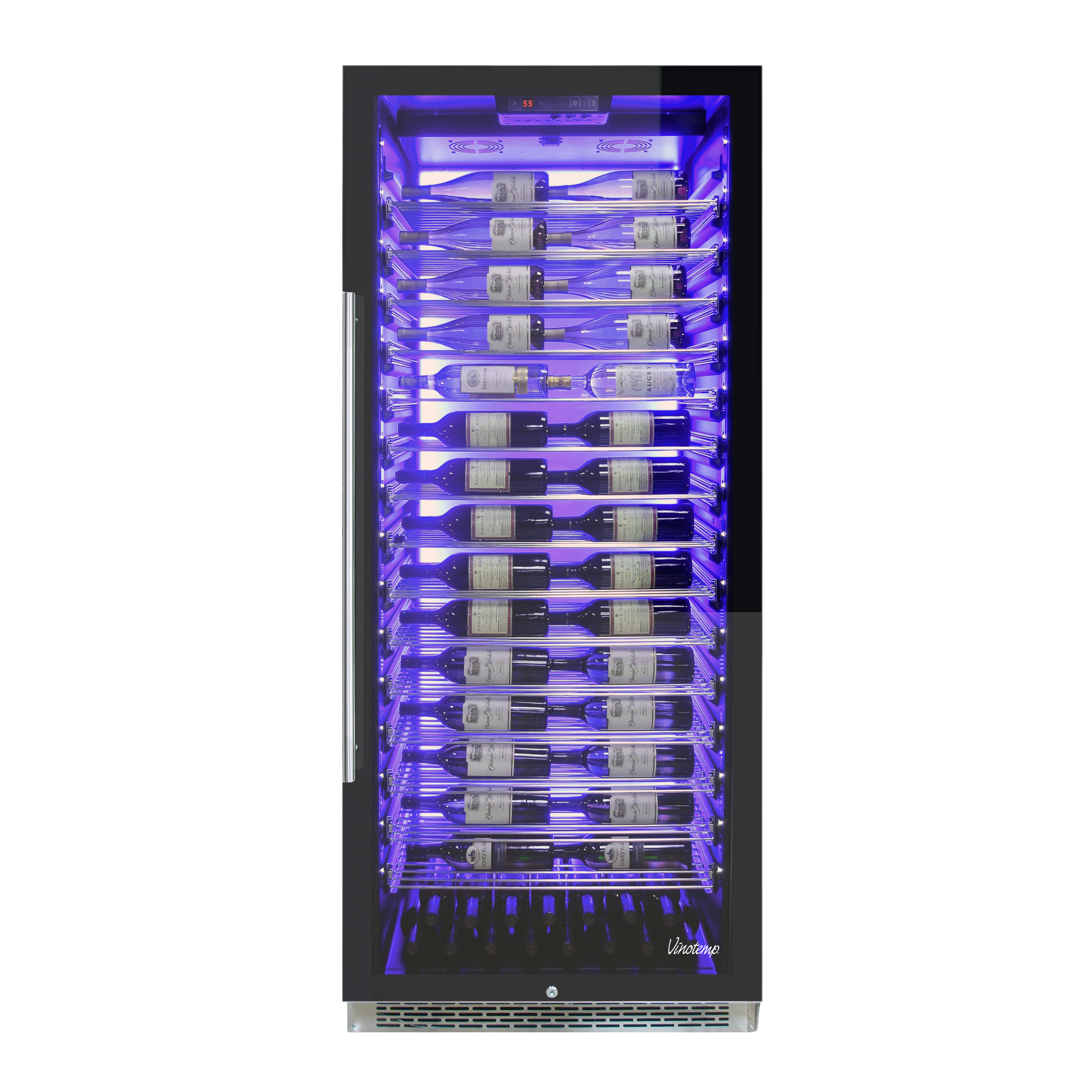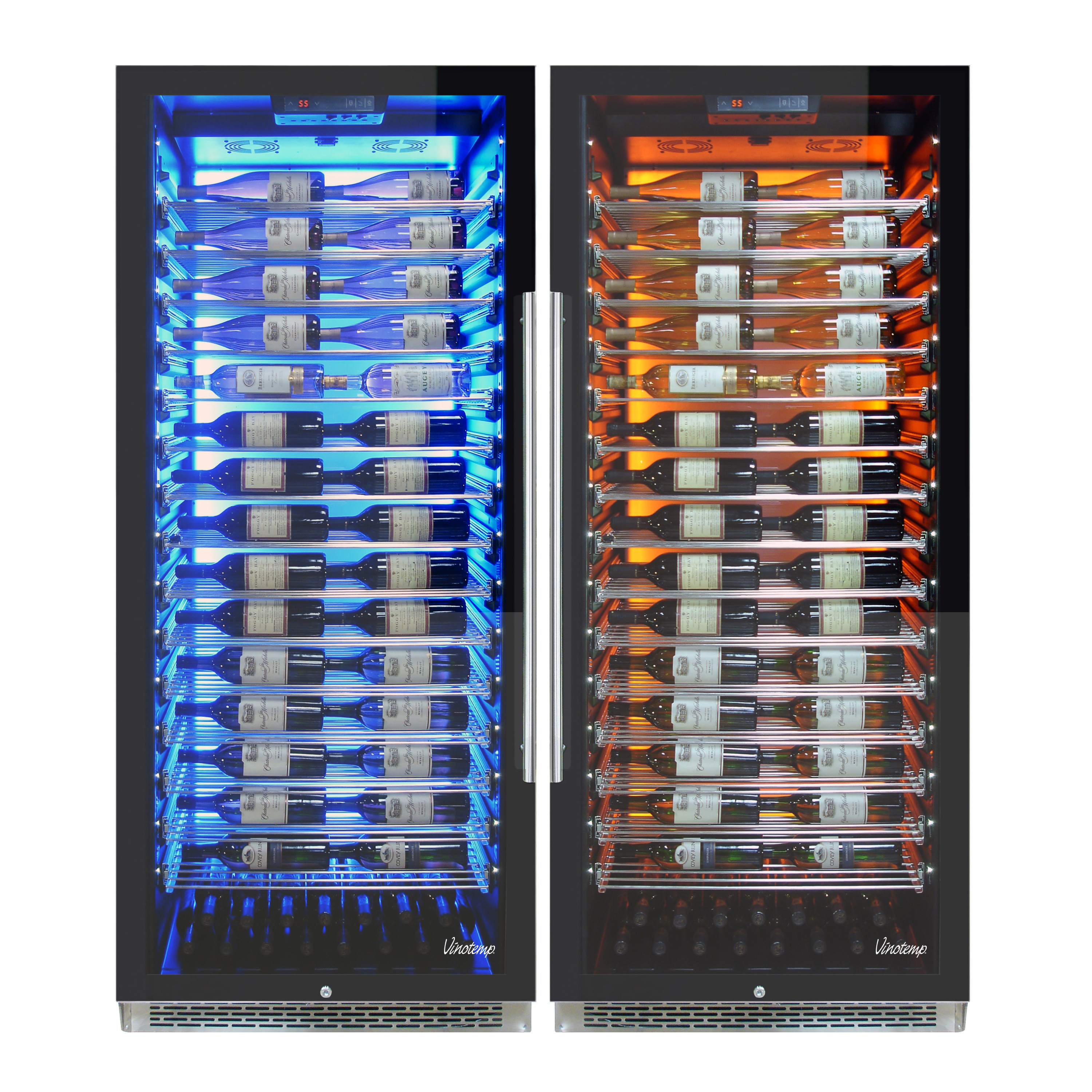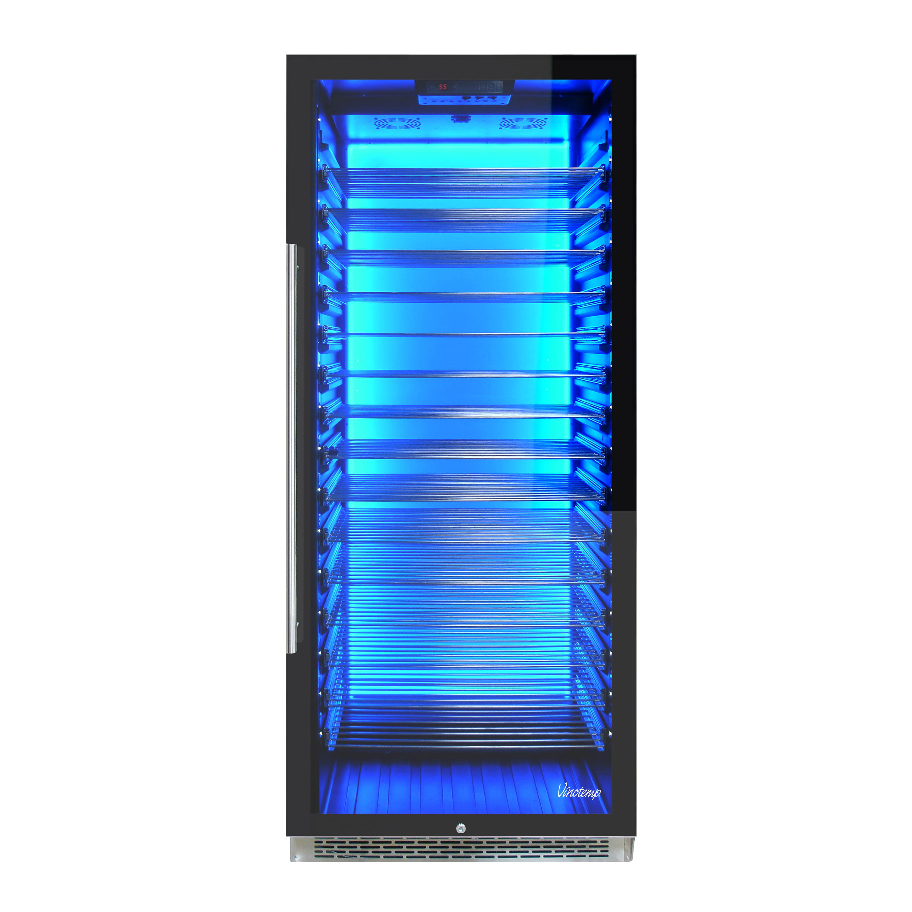 | Long Description | Create a spectacular display for your best bottles. Our streamlined patented stainless steel wine racks ensure that your bottles are properly secured while maximizing the visibility of wine bottle labels. Vinotemp's Backlit Series 188-Bottle wine cooler has innovative features such as telescopic shelves, label forward wine bottle display, interior Backlit™ in three different colors, and LED side lighting to maximize your display capability. This Vinotemp wine refrigerator is front venting with easy installation to build in and fit perfectly in any kitchen or bar area. The commercial-style wine cooler is an entertainer's delight with three different color options to display whatever mood fits. The design forward wine cooler features vibration-damping design to better protect its contents and is engineered for low energy consumption and low noise. Its patented interior Backlit™ has three different options–Heliotrope, Amber, and Vinotemp BioBlu™ (which helps reduce the growth of bacteria and mold)–and can be selected at any given time. Adjustable temperature range allows users to select a proper, customized storage and serving temperature for light or darker wines. Sturdy, stylish label forward VinBo™ Racks cradle bottles so the wine labels stored are front facing while the racks glide and extend forward, adding to the cooler's visual appeal and function. A digital LED temperature display makes temperatures easy to read and ensures wine is being stored and served at the appropriate temperature. Covered by the Vinotemp 2 Year Limited Warranty. |