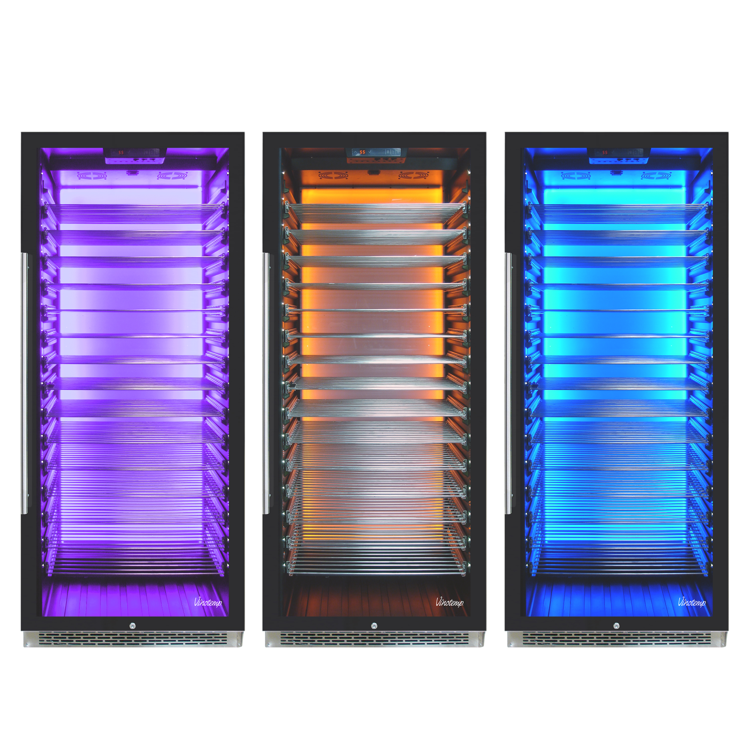| Bullet 4 | Patented interior Backlit™ (baklīt) panel with three different light-emitting diode (LED) options: Heliotrope, Amber and Vinotemp BioBlu™ (which helps reduce the growth of bacteria and mold) |