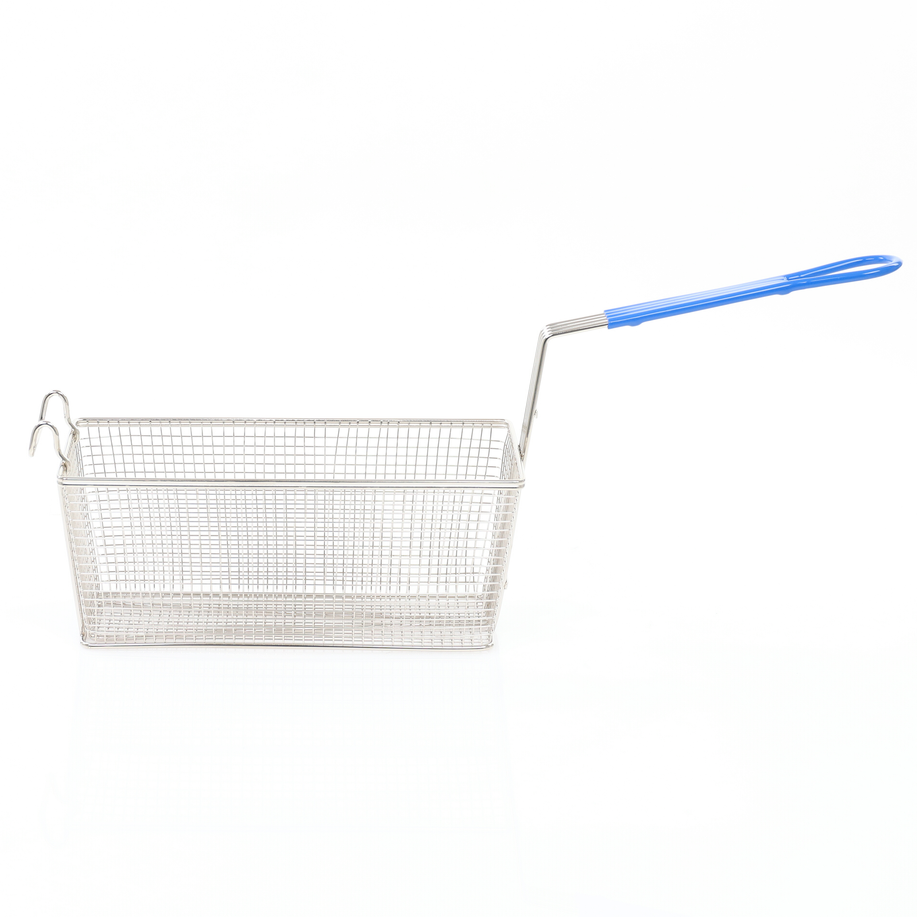 | Long Description | The perfect fit for casual eateries, food courts, and upscale restaurants, the Adcraft Fry Basket with Blue Handle boosts efficiency in fast-paced kitchen environments. Featuring one-wire construction, the durable nickel-plated fryer basket is crafted for long-time use, and the temperature-resistant blue handle offers safety and seamless integration into any color-coded kitchen. Ideal for larger air-fryer ovens, making French fries, onion rings, chicken wings and multiple fried foods is a snap. The deep fry basket provides heated air circulation for uniform crisping of food without the need for flipping. The front hooks allow you to remove a batch of food from the cooking oil and drain the excess oil. Dishwasher safe, the Adcraft Fry Basket’s nonstick coating allows for easy cleaning. Includes a convenient manufacturer’s compatibility chart. The Adcraft Fry Basket is available in a variety of handle colors to meet the safety and organization needs of your commercial kitchen. |