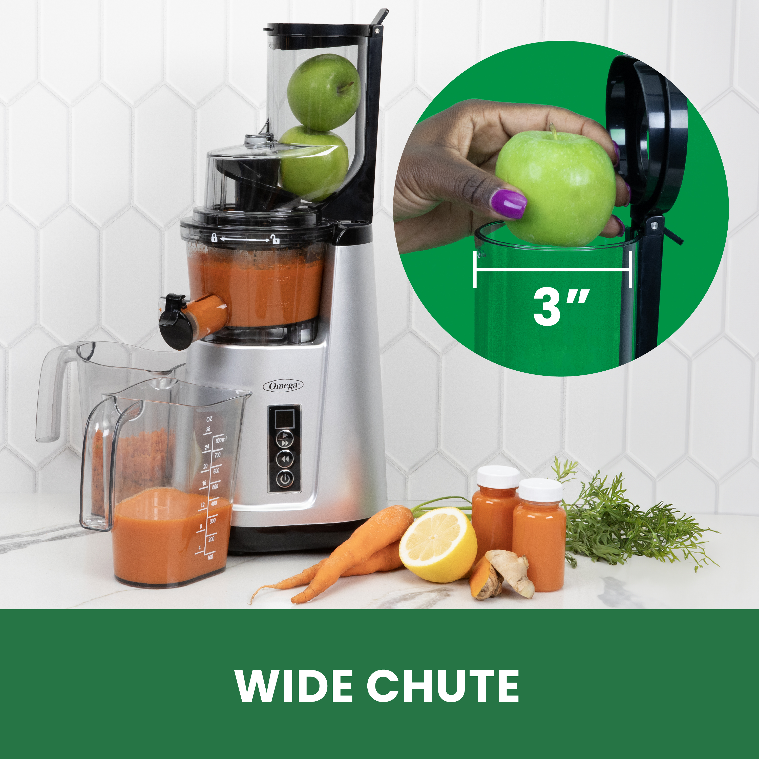 | Bullet 2 | 3-inch opening fits whole fruits/vegetables, reducing preparation time |