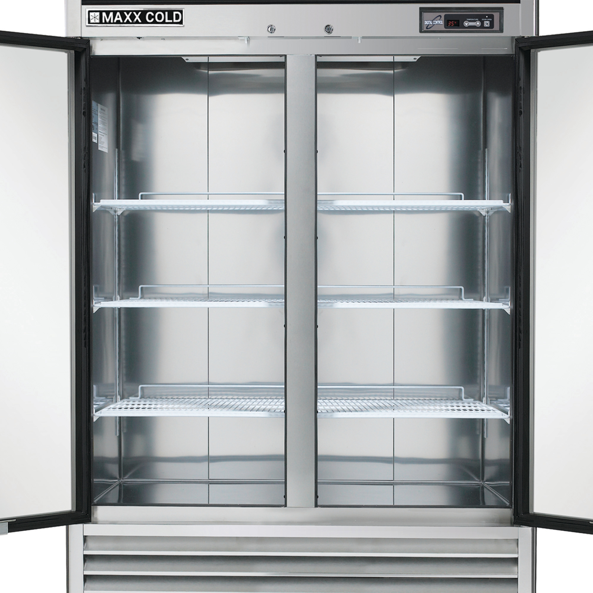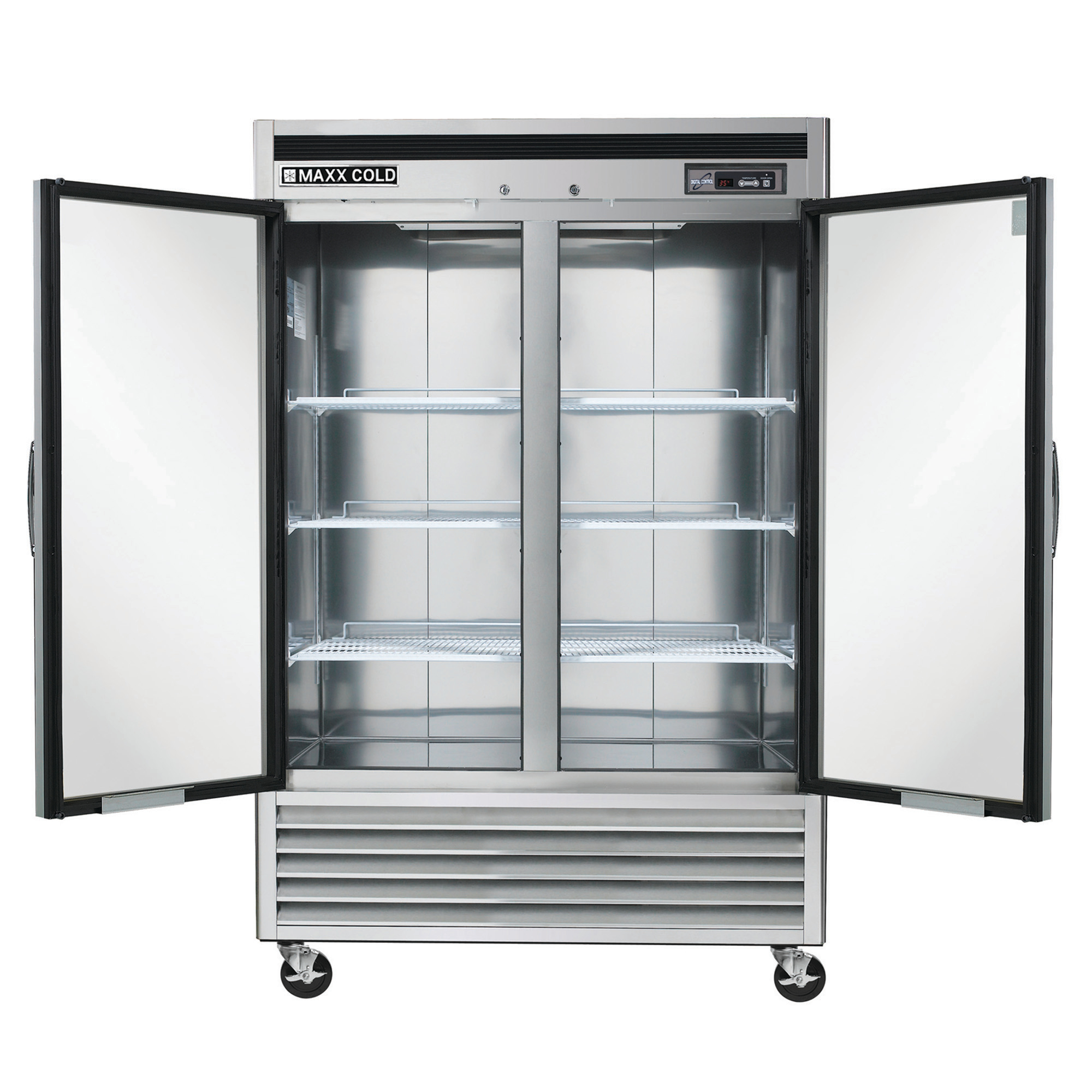 | Long Description | The Maxx Cold Double Door Reach-In Refrigerator is designed to assist you in meeting all foodservice industry requirements while making its content easy to access. The cabinet is equipped with six heavy-duty, fully adjustable and easy-to-clean PE-coated wire shelves which can hold full-size sheet pans. The bottom-mount stainless steel reach-in refrigerator provides up to 42.8 cubic feet (1,212 L) of storage capacity, while the unit's slender and solid build makes it a great choice for limited or compact spaces. In addition, this commercial refrigerator is engineered with an open-door alert that beeps if the refrigerator is left open for five minutes. The Energy Star commercial reach-in refrigerator is constructed of a stainless steel interior and exterior and is mounted on 5" diameter swivel caster wheels for easy maneuverability. Additional features on this 2-door reach-in refrigerator include integrated energy-saving interior LED lighting, an automatic defrost function, a lock and key set for security and digital temperature control which maintains optimum temperature throughout the unit. Digital temperature display can be viewed from outside the cabinet, which is engineered with an integrated condensate evaporator, meaning no drain line connection is needed. The polyurethane foam insulation on this two-door commercial reach-in fridge provides outstanding thermal regulation and is energy efficient. Furthermore, this reach-in fridge is Energy Star certified. Ideal for storing a variety of perishable items such as fruits, vegetables, dairy products, meats and beverages, the Maxx Cold Double Door Bottom-Mount Reach-In Refrigerator allows for easy access in your commercial kitchen. Covered by the Maxx Cold One-Year Parts & Labor + Five-Year Compressor (Part Only) Warranty. |