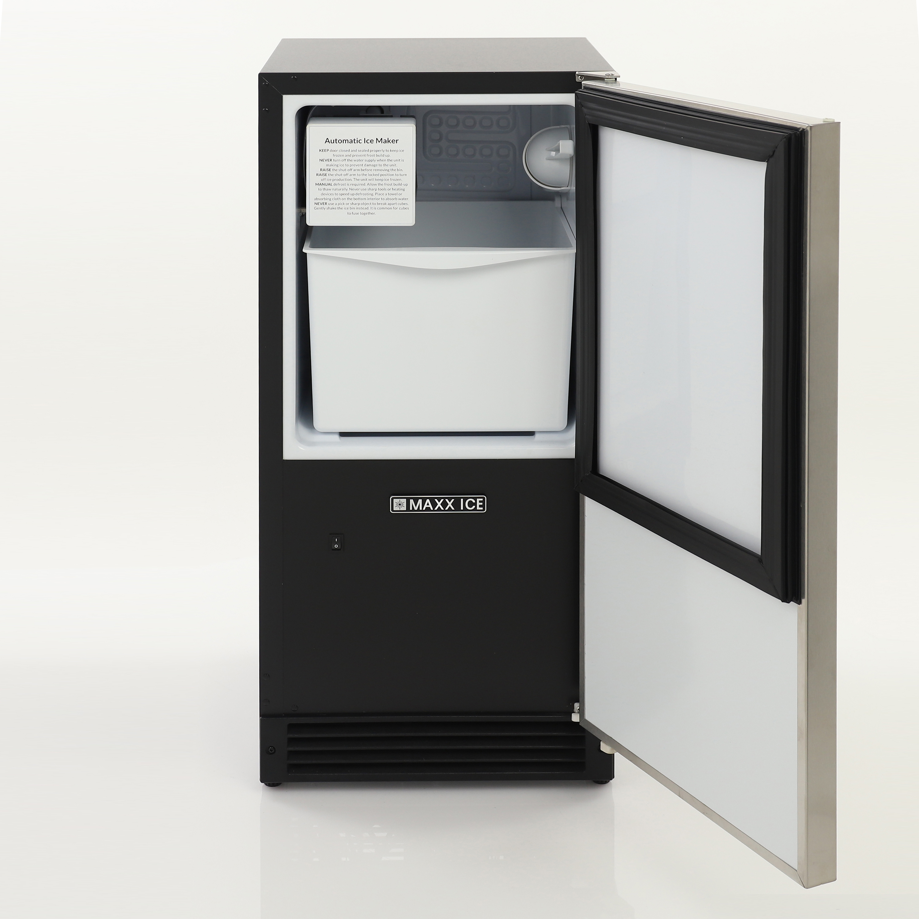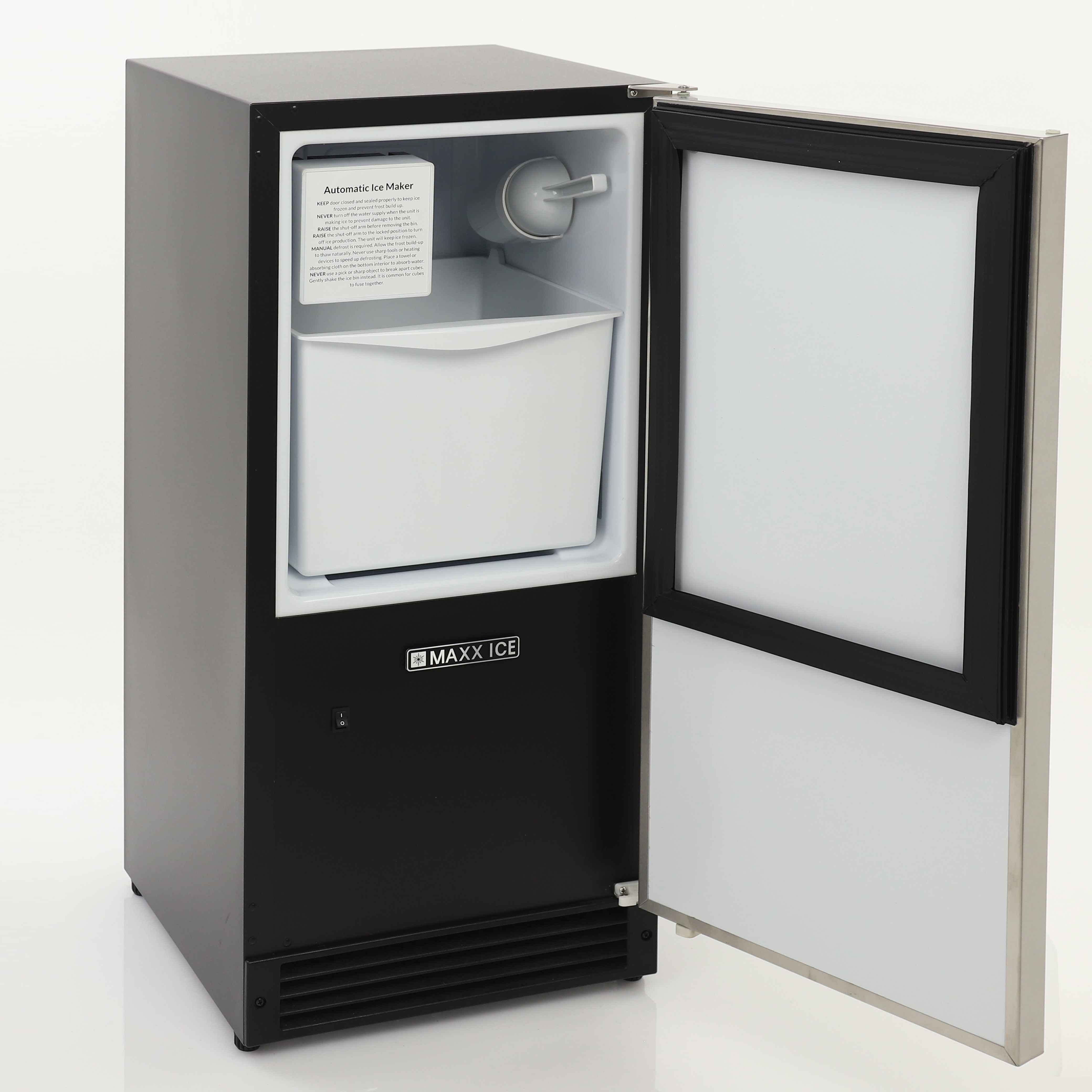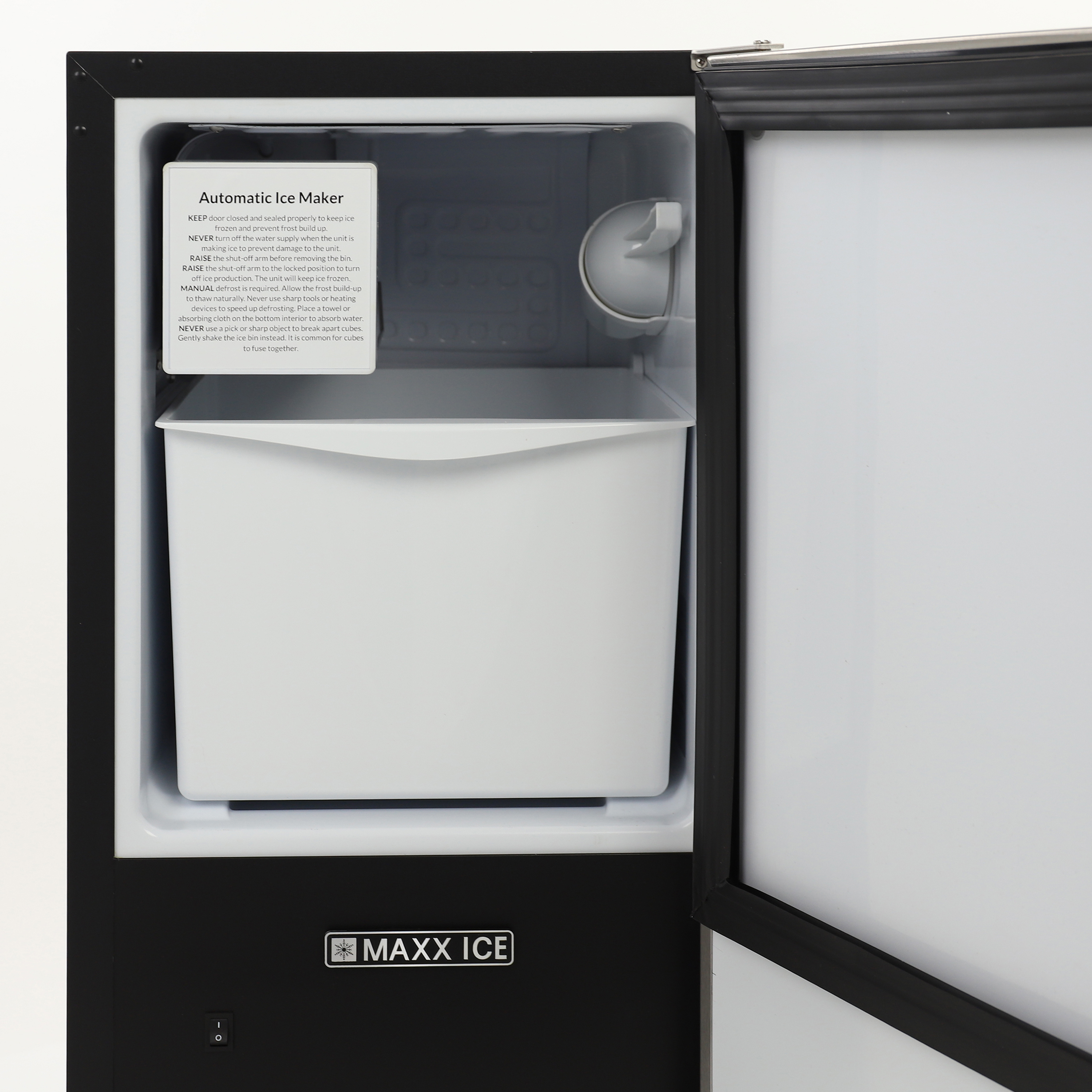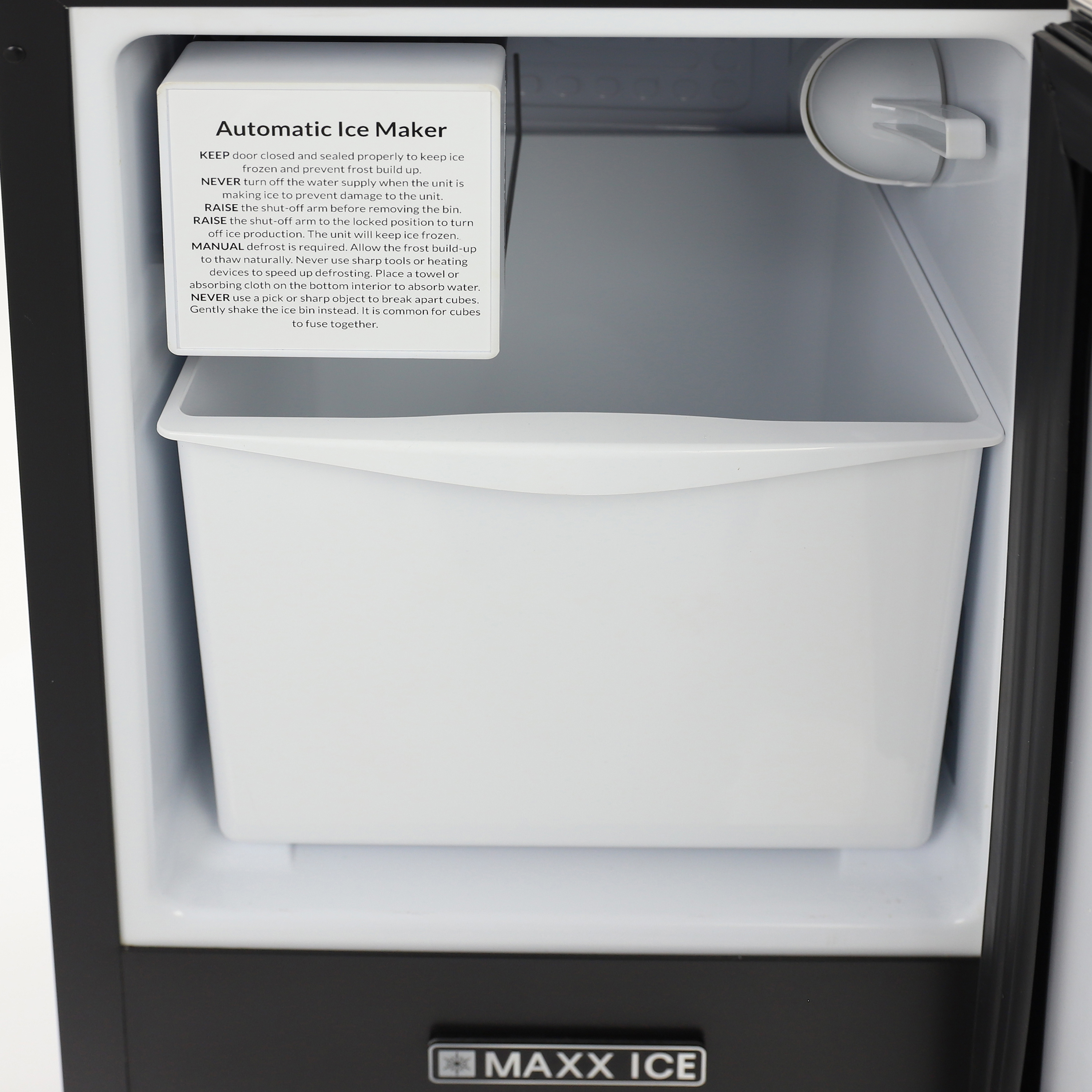 | Long Description | The Maxx Ice Shallow Depth Indoor Built-In Undercounter Ice Maker produces up to 25 pounds of crescent ice cubes daily, more than five times the amount of ice cubes made by a standard household freezer ice maker. It is ideal for everyday use in commercial establishments, such as kitchens, restaurants, and bars. With its front-breathing design, this ice maker can be built-in under a countertop and flush with your cabinets. This ice maker can be installed in various locations because it doesn’t require a drain line. If space is tight and a traditional 24-inch-deep unit won’t fit, this ice maker is an excellent option because it has a shallow depth of 18.8 inches, offering even more flexibility. If you’re looking for a freestanding unit, this ice maker features a finished black exterior and sturdy adjustable feet. You’ll always have plenty of ice on hand with the ice storage bin that holds up to 22 pounds of ice and is removable for easy access. Featuring a stylish stainless steel door with a reversible handle for left- or right-hand operation, this ice maker is ideal for any space. Additionally, the door-close assist feature creates a firm seal when the door is closed, preventing accidental opening. A simple and stress-free on/off switch is located at the front of the unit. With adjustable feet for leveling, this ice maker can be installed at the ideal height for your space. Choose the Maxx Ice Shallow Depth Indoor Built-In Undercounter Ice Maker for quiet operation and the perfect blend of performance, style, and practicality. Covered by the Maxx Ice One-Year Limited Warranty on Parts & Labor, and a Five-Year Warranty on Compressor. Maxx Ice products are built to the highest standard and include machines that range from 25lbs to 1000lbs., including ice makers, ice bins, and more. We also have a wide variety of indoor and outdoor wine coolers, beverage centers, and ice machines. |