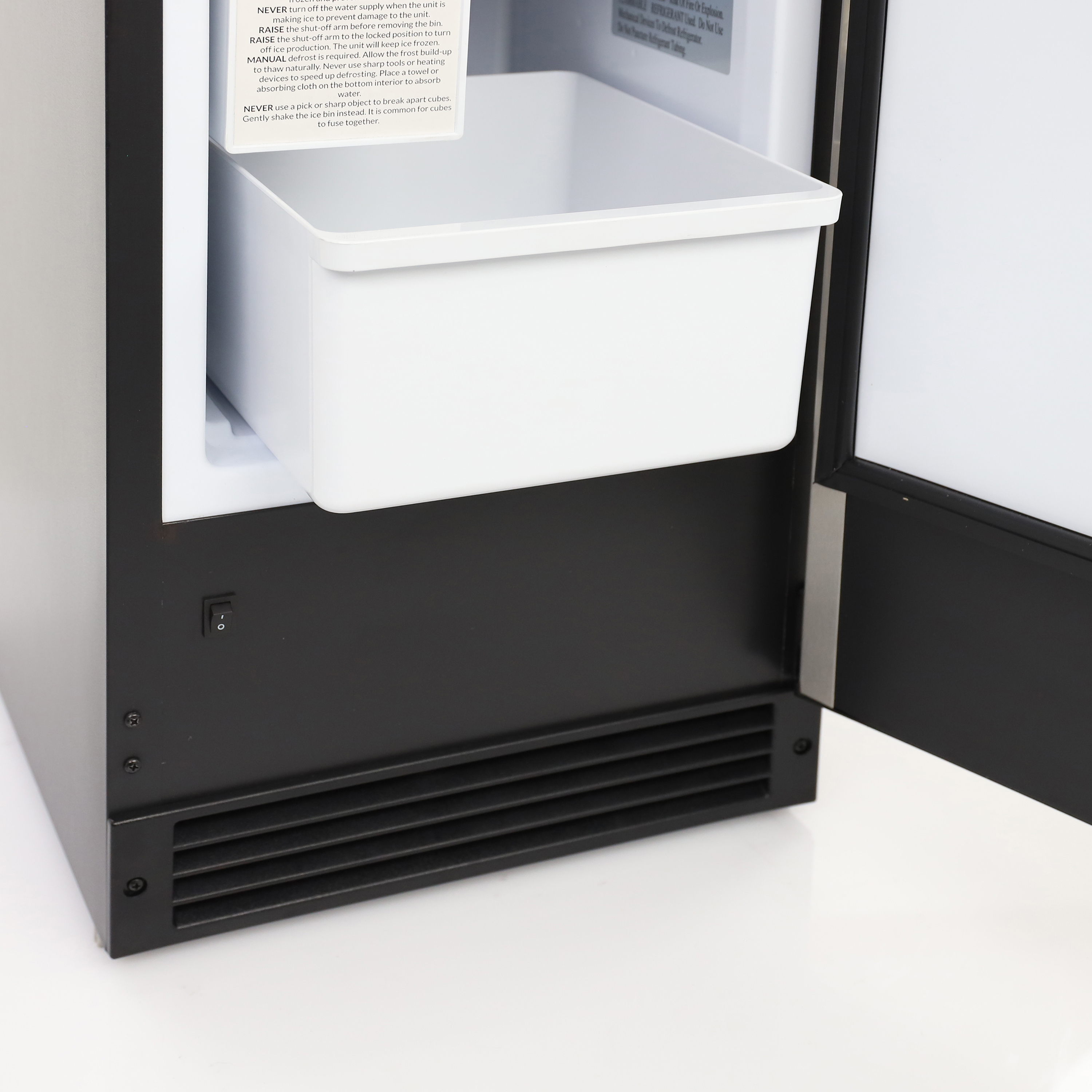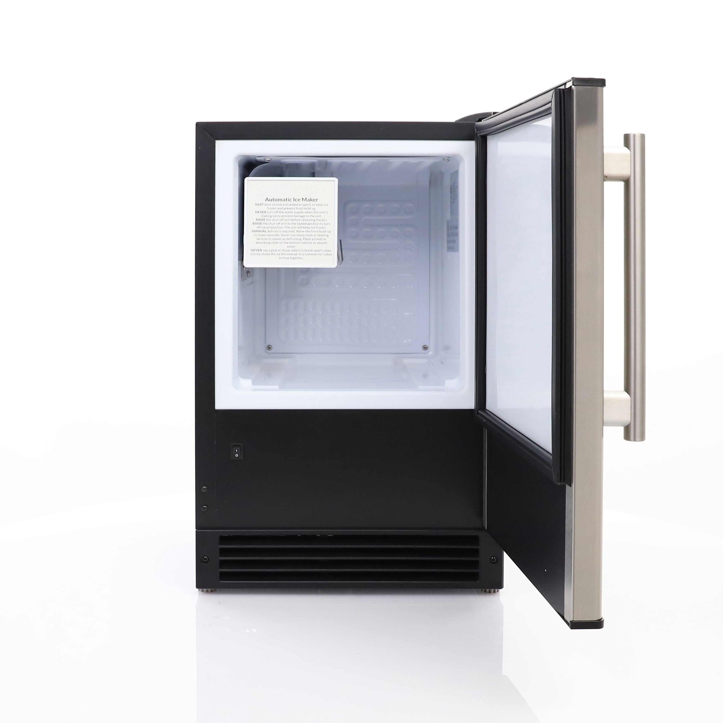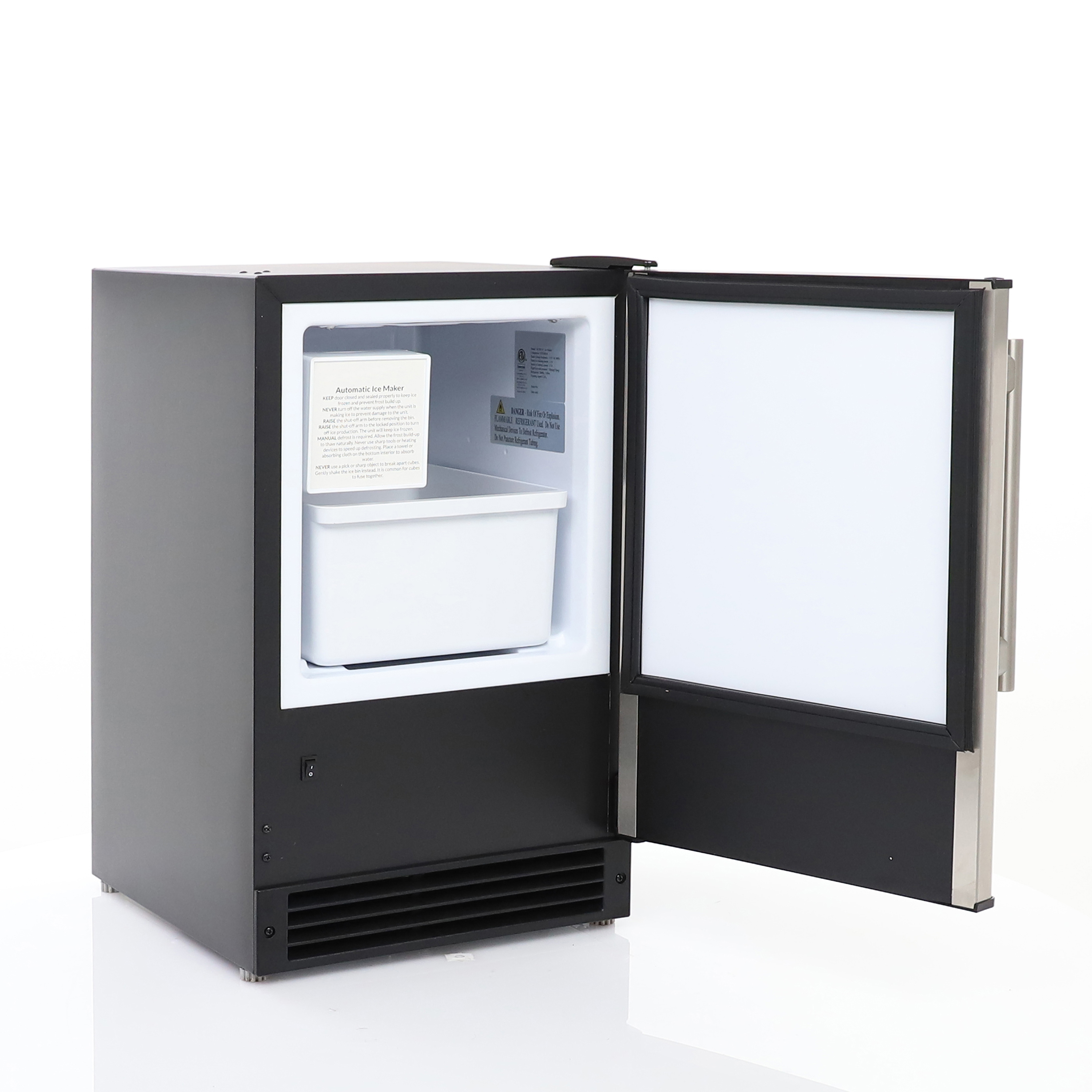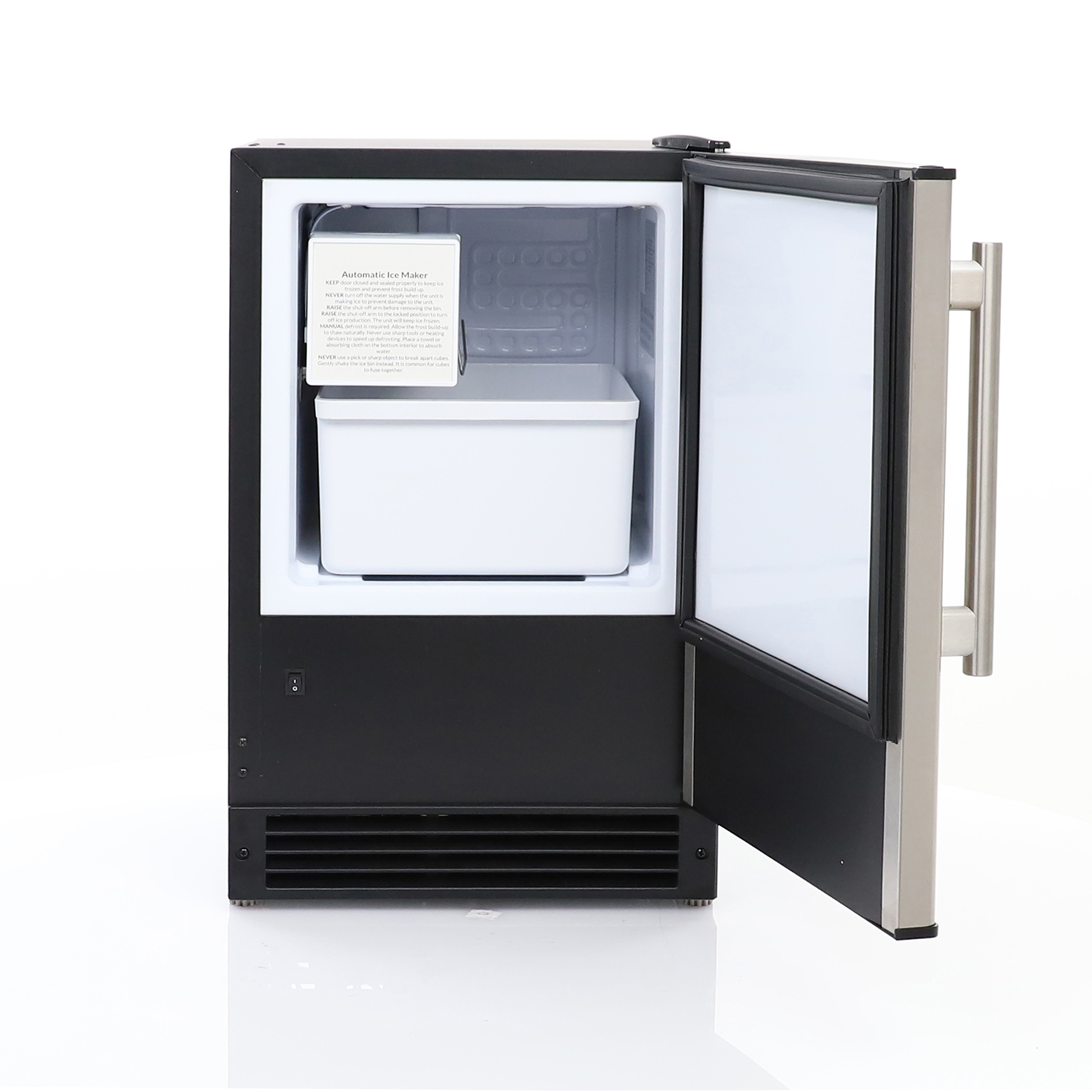 | Long Description | The Maxx Ice Countertop or Built-In Ice Maker produces up to 15 pounds of crescent ice cubes daily, which is up to four times the amount of a standard household freezer ice maker. It is ideal for everyday use in commercial establishments, such as kitchens, restaurants, and bars. This ice maker offers flexible installation options because it doesn’t require a drain line. Suitable for built-in applications, this ice maker features a compact front-breathing design. With a durable and stylish stainless steel door featuring a reversible handle for left- or right-hand operation, this commercial ice maker is ideal for your space. Additionally, the door-close assist feature forms a strong seal when the door is closed, preventing accidental opening. Always have plenty of ice on hand to meet the needs of your staff and customers with the ice storage bin, which holds up to 12 pounds of ice and is removable for easy access. The unit automatically shuts off when the ice bin is full and has a simple on/off switch. With adjustable feet for leveling and installing, this ice maker can be installed at the ideal height for your space. The Maxx Ice Countertop or Built-In Ice Maker is the perfect choice, offering a combination of performance, style, and practicality. Covered by the Maxx Ice One-Year Limited Warranty on Parts & Labor, and a Five-Year Warranty on Compressor. Maxx Ice products are built to the highest standard and include machines that range from 25lbs to 1000lbs., including ice makers, ice bins, and more. We also have a wide variety of indoor and outdoor wine coolers, beverage centers, and ice machines. |