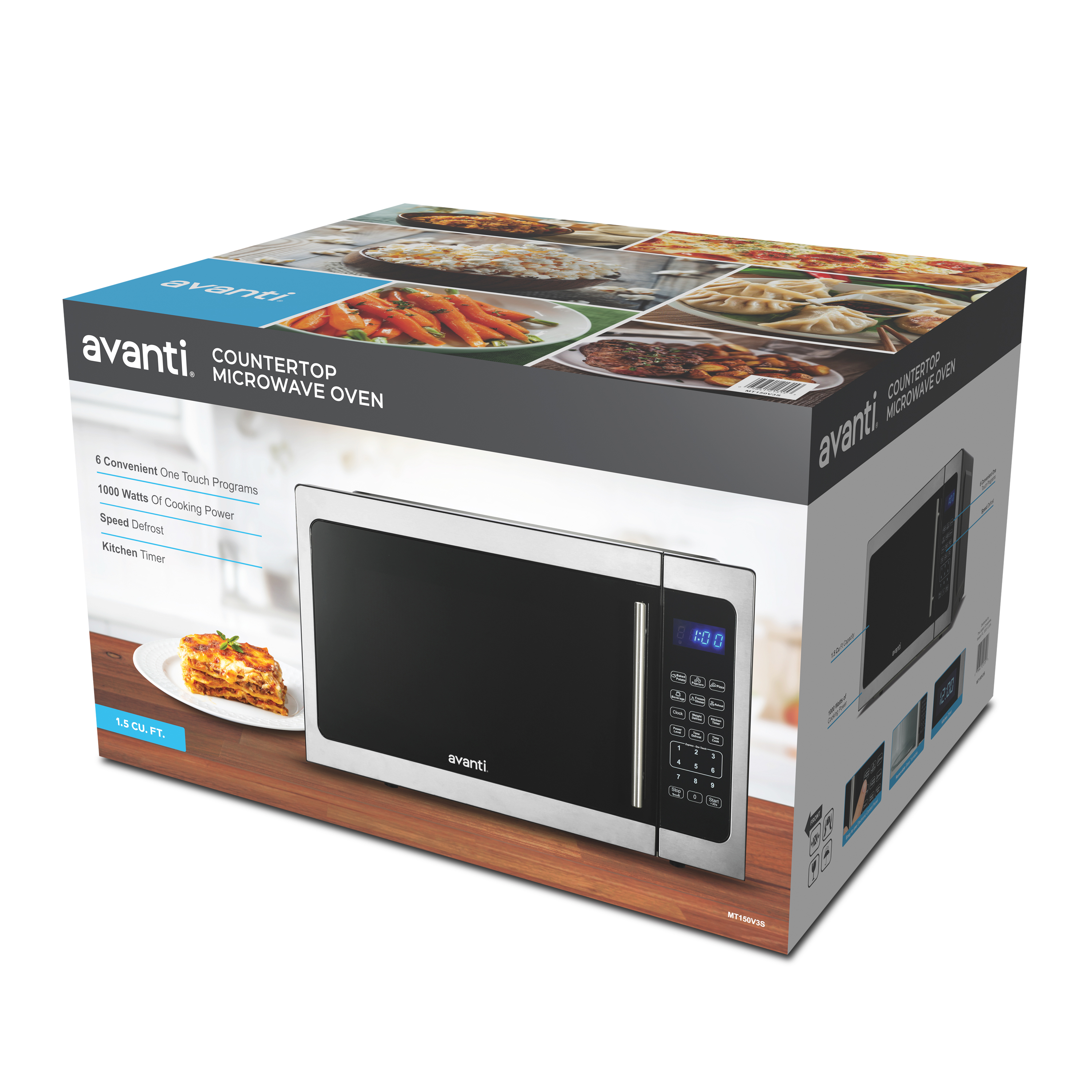 | Long Description | Discover the Avanti Countertop Microwave Oven - small footprint with smart features, this microwave balances compact design with powerful performance and convenient presets so you can save space without sacrificing performance. Ideal for everyday reheating, quick snacks and simple meal prep. Featuring a spacious 1.5 cu ft. capacity, it’s perfect for apartments, dorms and RVs. With 1000 watts of power, this stainless-steel accented microwave oven delivers exceptional performance for cooking and reheating your favorite meals with ease. The user-friendly touch pad controls make operating this microwave a breeze, allowing you to adjust settings and cooking preferences effortlessly. Customize your cooking experience, ensuring that your dishes are cooked to perfection every time. Enjoy added convenience with six one-touch, pre-set cooking modes including Baked Potato, Popcorn, Pizza, Beverage, Frozen Dinner, and Reheat. The speed defrost setting lets you quickly thaw frozen foods, while the option to cook and defrost by weight provides precise control over your cooking process. Stay on top of your cooking schedule with the digital clock and kitchen timer, which are designed for easy readability. The turntable with a glass tray ensures that your food is cooked evenly, while the child safety lock feature provides peace of mind by securing the control panel and protecting your loved ones. Stylish, efficient and built for everyday living, the Avanti Countertop Microwave Oven, 1.5 cu. ft. is an ideal choice for apartments, dorms, RVs, and anyone who values fast, dependable cooking in a compact package. Covered by the Avanti One-Year Limited Warranty. |