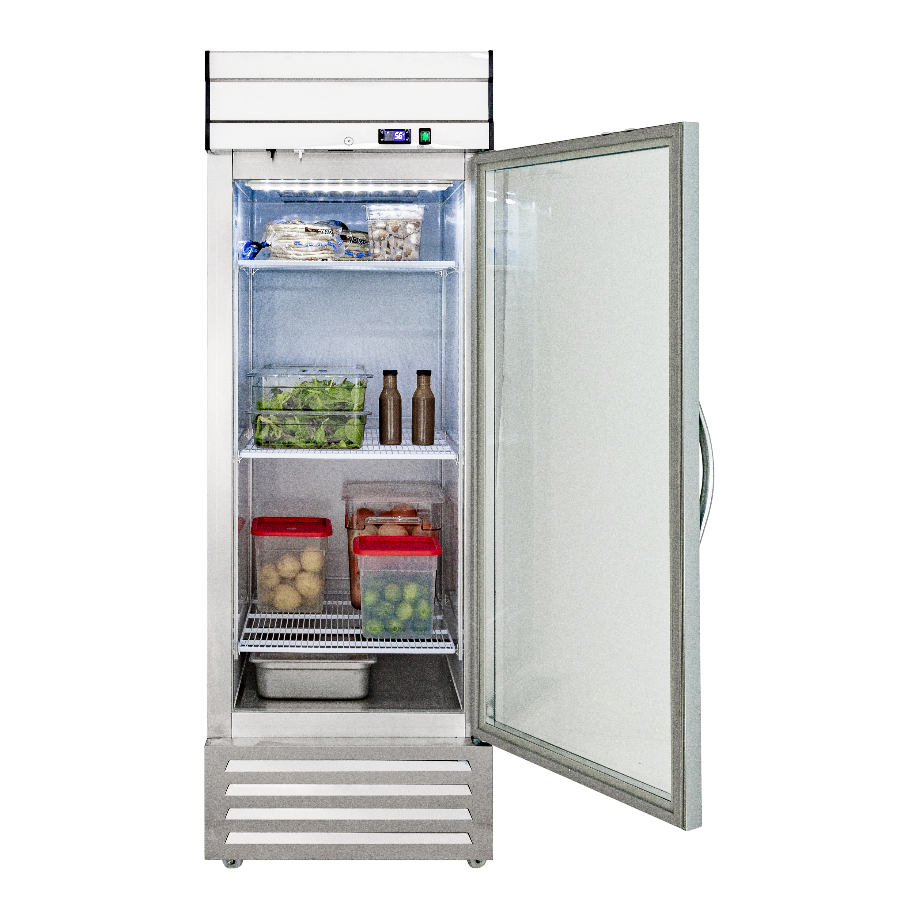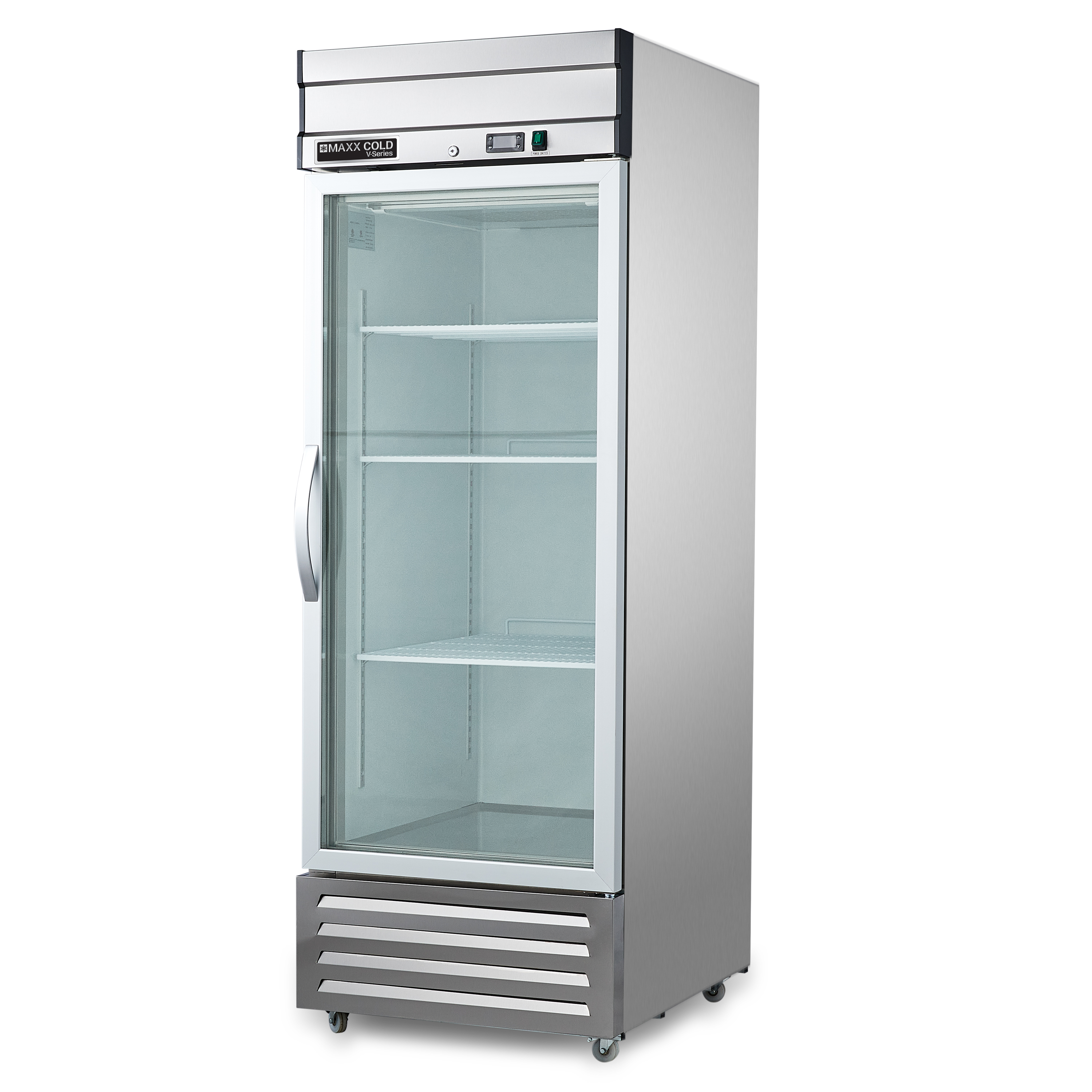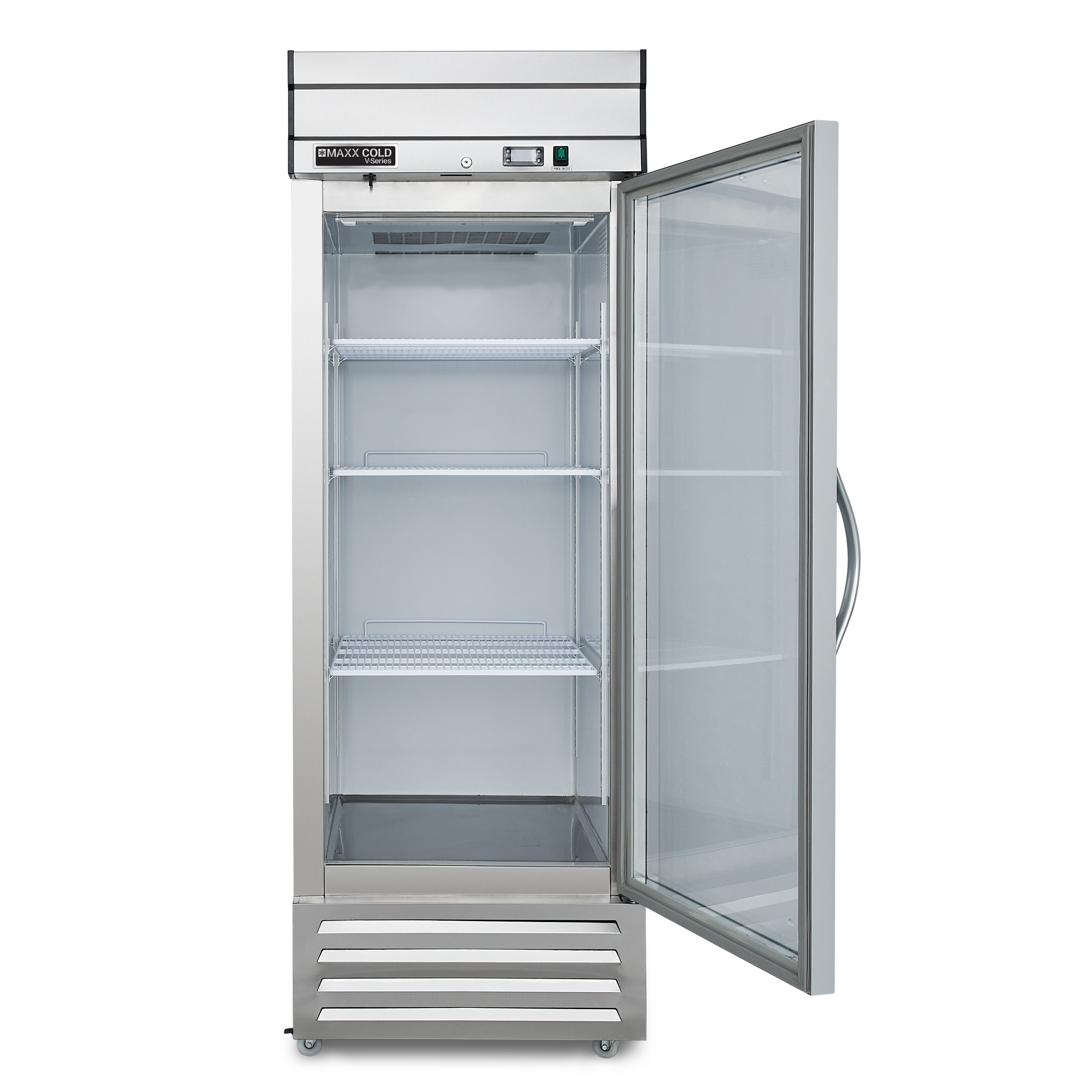 | Long Description | Ideal for showcasing your goods in restaurants, cafes, bakeries, catering businesses and more, the Maxx Cold V-Series 1 Glass Door Reach-In Refrigerator is a smart investment. Offering ample storage space for perishable goods, ingredients, prepared foods and beverages, this commercial reach-in refrigerator measures 27"W and has a storage capacity of 19 cubic feet. Built to withstand the demands of a commercial kitchen environment, it is constructed of a durable, easy-to-clean stainless steel exterior and painted aluminum interior. This reach-in refrigerator has one self-closing, locking, dual-pane glass door with an easy-to-grip handle, and the unit's open door alert beeps when the door has been open for three minutes. The transparent door creates an attractive display that enhances product visibility, promotes impulse purchases and makes it easier to locate items. Four adjustable heavy-duty wire shelves let you efficiently organize and store food and beverage items. The unit has an easily accessible bottom mount for cleaning and is equipped with 4-inch swivel casters for easy mobility in your commercial kitchen. The digital control system lets you easily adjust the temperature with the range of 34°F to 40°F (1°C to 4°C), and the LED temperature display is easy to read. This single-door reach-in refrigerator features automatic interior lighting, an automatic defrost system and urethane foam insulated walls. The unit is equipped with an integrated condensate evaporator; therefore, no drain line connection is needed. Investing in the Maxx Cold V-Series 1 Glass Door Reach-In Refrigerator is a practical and essential decision for businesses in the foodservice industry. Covered by the Maxx Cold Six-Month Parts and Labor Limited Warranty. |