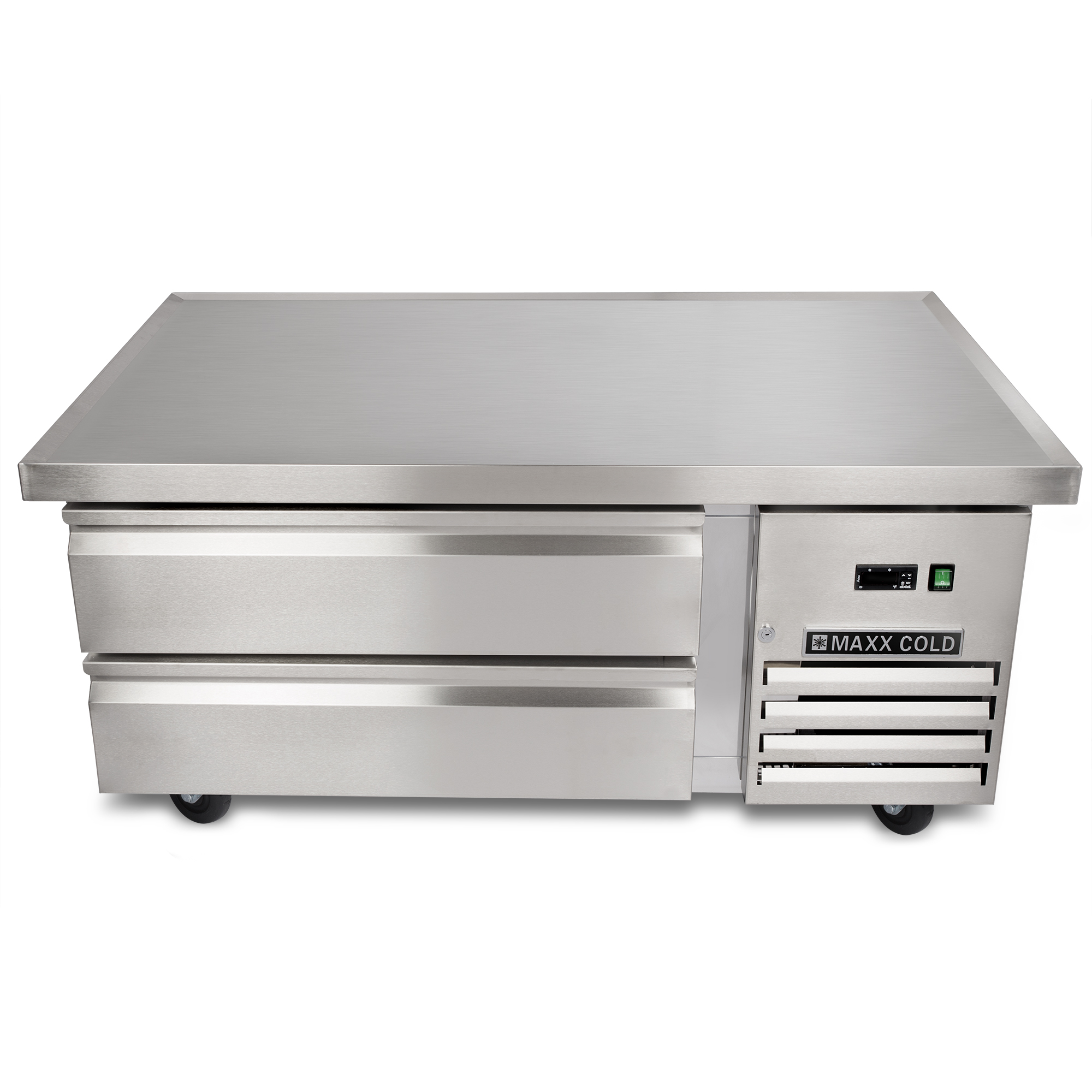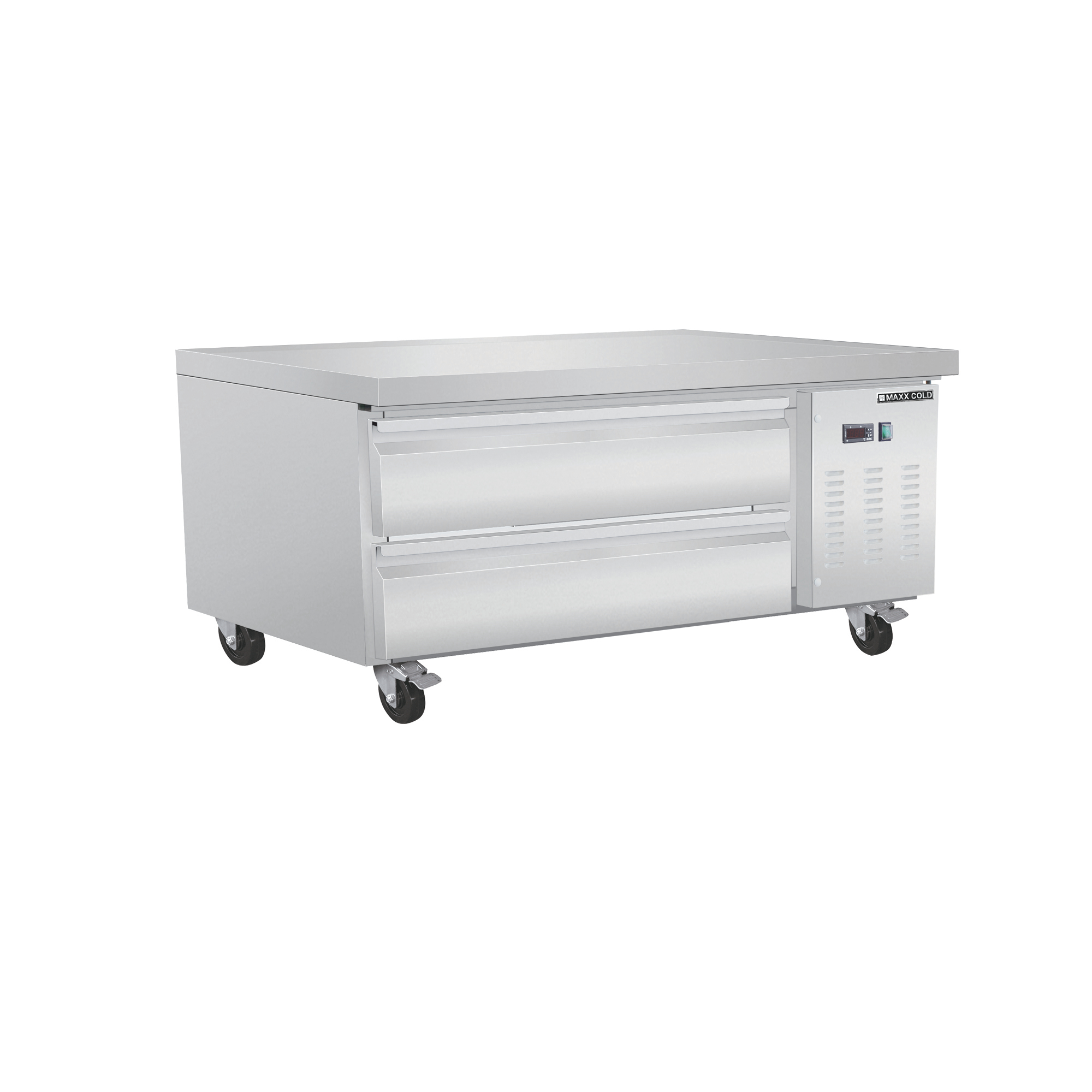 | Long Description | Offer staff a functional, organized and space-saving solution for food preparation in your commercial kitchen with the Maxx Cold X-Series Two-Drawer Refrigerated Chef Base. Constructed of durable stainless steel, this commercial chef base has a 50-inch worktop that provides room for countertop equipment such as grills. The refrigerated chef base is equipped with two drawers with easy-to-grip recessed handles and full extension, heavy-duty drawer slides. The drawers provide convenient storage for perishable ingredients, condiments and other food items requiring refrigeration. This refrigerated chef base has a storage capacity of 6.5 cubic feet and is equipped with four 5" swivel casters (two with brakes) for easy mobility in your commercial kitchen. The unit features an LED temperature display, urethane foam insulated walls and drawers, automatic defrost and a side-mounted compressor. The unit uses environmentally friendly refrigerant R290a. Streamline your foodservice operations with the Maxx Cold X-Series Two-Drawer Refrigerated Chef Base. Covered by the Maxx Cold One-Year Parts & Labor + Five-Year Compressor (Part Only) Warranty. |