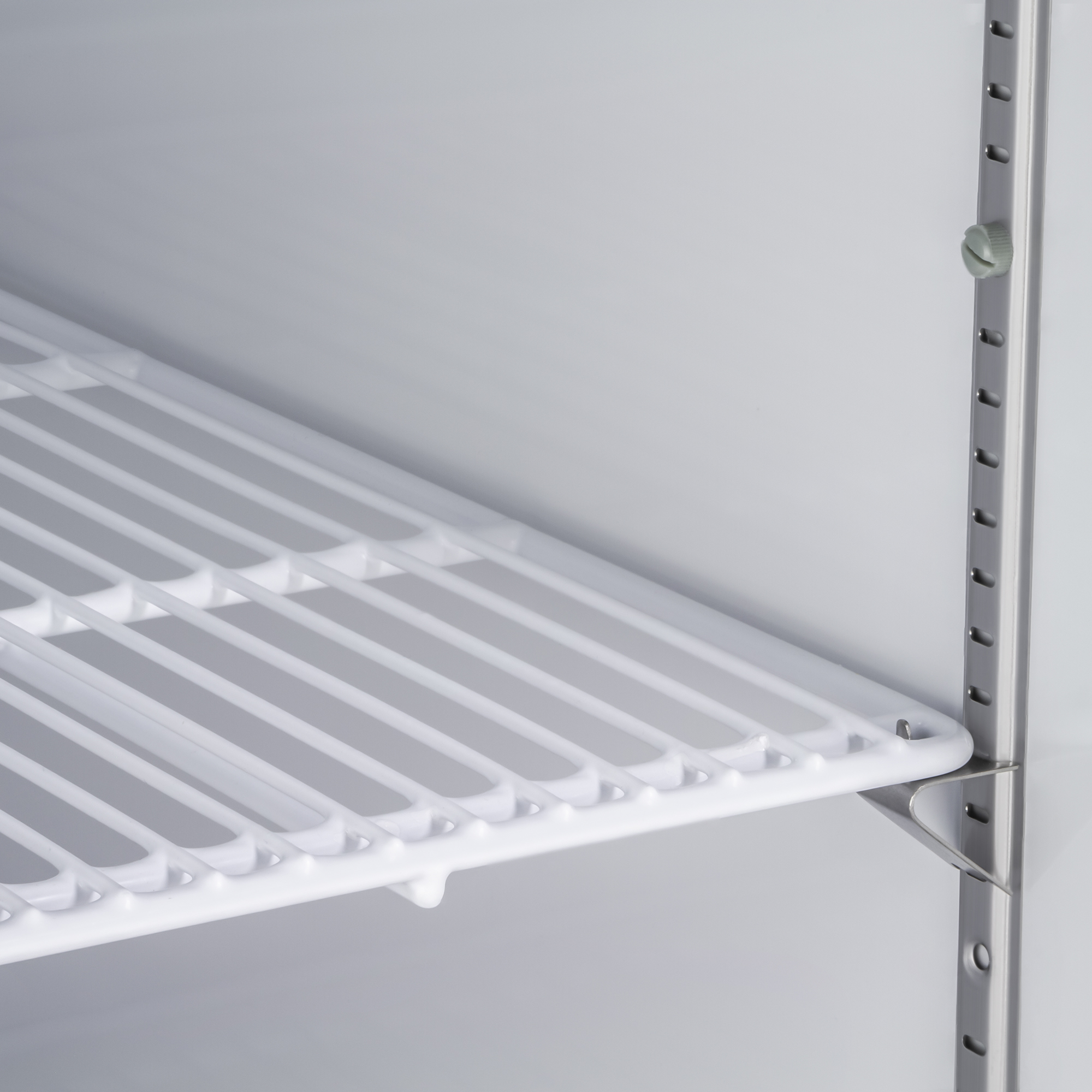 | Bullet 3 | Three (3) heavy-duty, adjustable, PE coated wire shelves per section hold full size sheet pans |