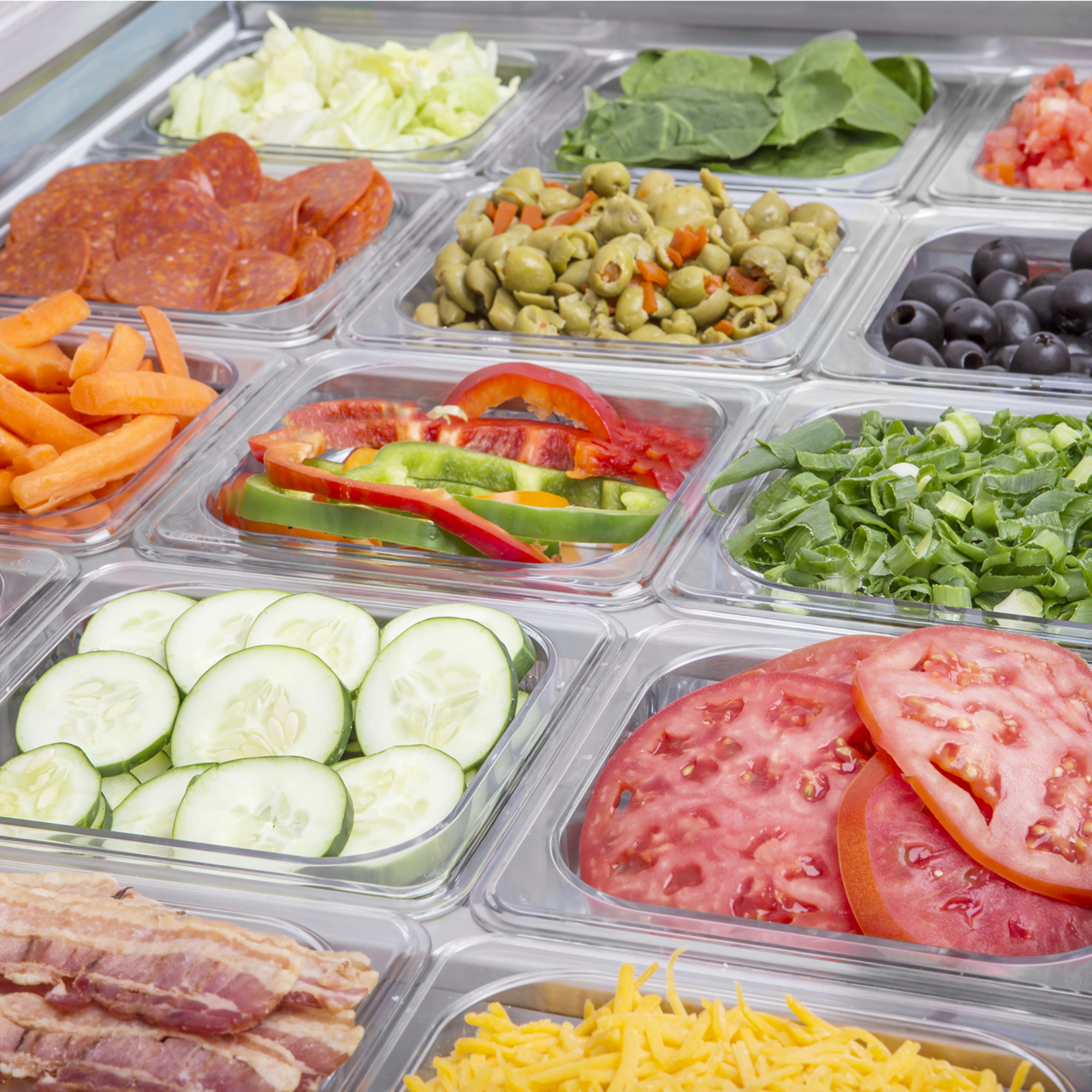 | Bullet 2 | Equipped with sanitary food grade quality 9" cutting board, full set of divider bars and eighteen (18) 4" deep pans |
