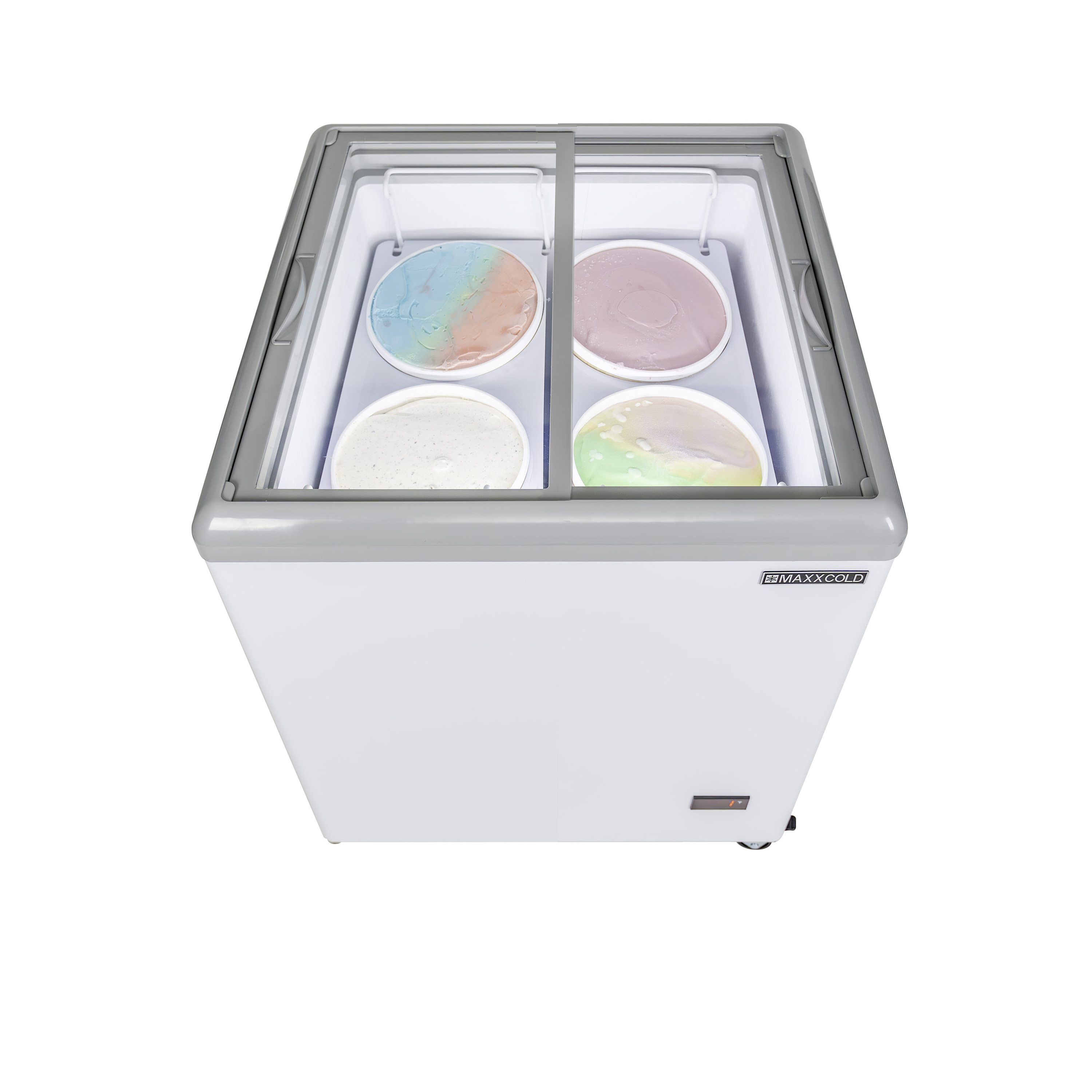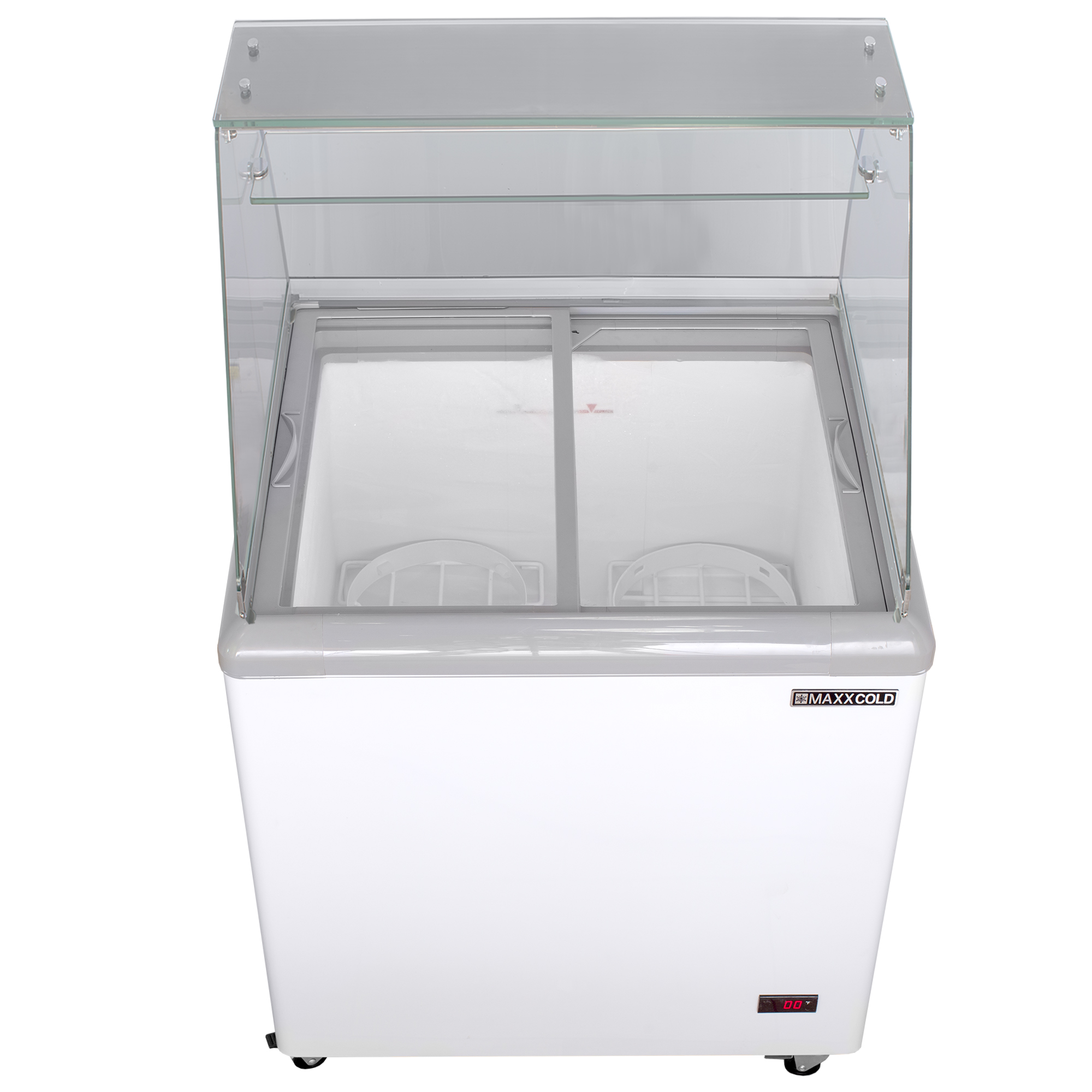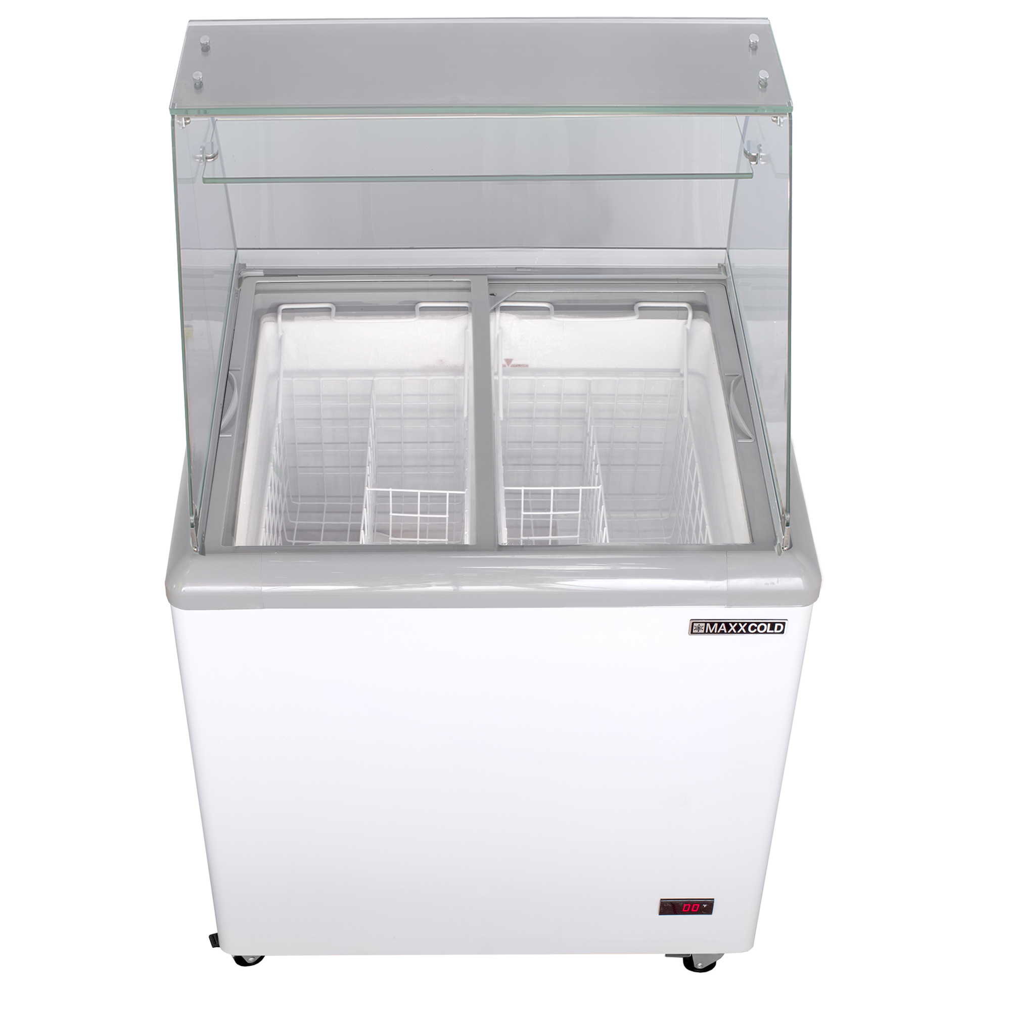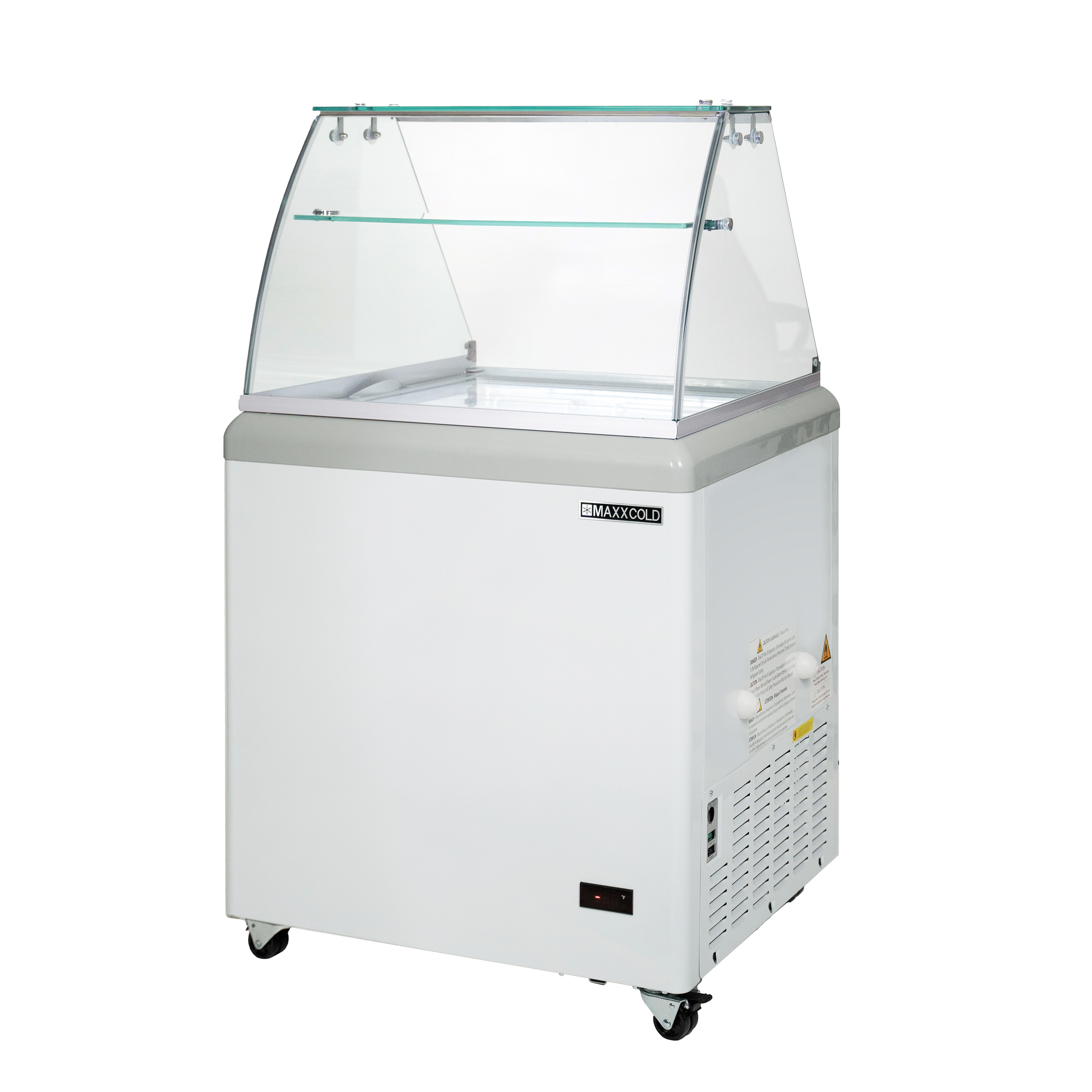 | Long Description | The Maxx Cold X-Series Ice Cream Dipping Cabinet Freezer is the perfect solution for displaying and serving ice cream products. The ice cream dipping freezer provides a sanitary, efficient way to serve your customers, and the durable construction offers a cost-effective solution for your operation. This commercial ice cream dipping cabinet is designed for ice cream parlors, restaurants, sorbet and gelato shops, cafes, concession stands and more. The 31.5-inch ice cream cabinet has a storage capacity of 5.8 cubic feet and can hold up to 6 ice cream tubs. The tub holders are constructed of coated wire with acrylic covers. This ice cream freezer dipping cabinet is designed with interior LED lights to illuminate the display area and highlight the ice cream flavors, attracting customers' attention. Flat, tempered clear glass sliding lids make it easy to scoop ice cream, especially during busy times. The sneeze guard ensures customers can view your ice cream while preventing contamination. The dipping cabinet features an easy-to-read external digital thermometer display with an adjustable temperature range of -18°F to 10°F (-28°C to -12°C), maintaining ice cream at the ideal serving temperature. The mobile ice cream dipping cabinet is equipped with four heavy-duty casters, two with brakes. Additional features include 2.5" foamed-in-place polyurethane insulation, a lock and key set with a removable pin, removable rubber bumper guards and a heated molded plastic lid frame that prevents frost build-up. Enhance the presentation, visibility and quality of your ice cream offerings with the Maxx Cold X-Series Ice Cream Dipping Cabinet Freezer with Curved Glass Sneeze Guard. Covered by the Maxx Cold One-Year Parts & Labor + Five-Year Compressor (Part Only) Warranty. |