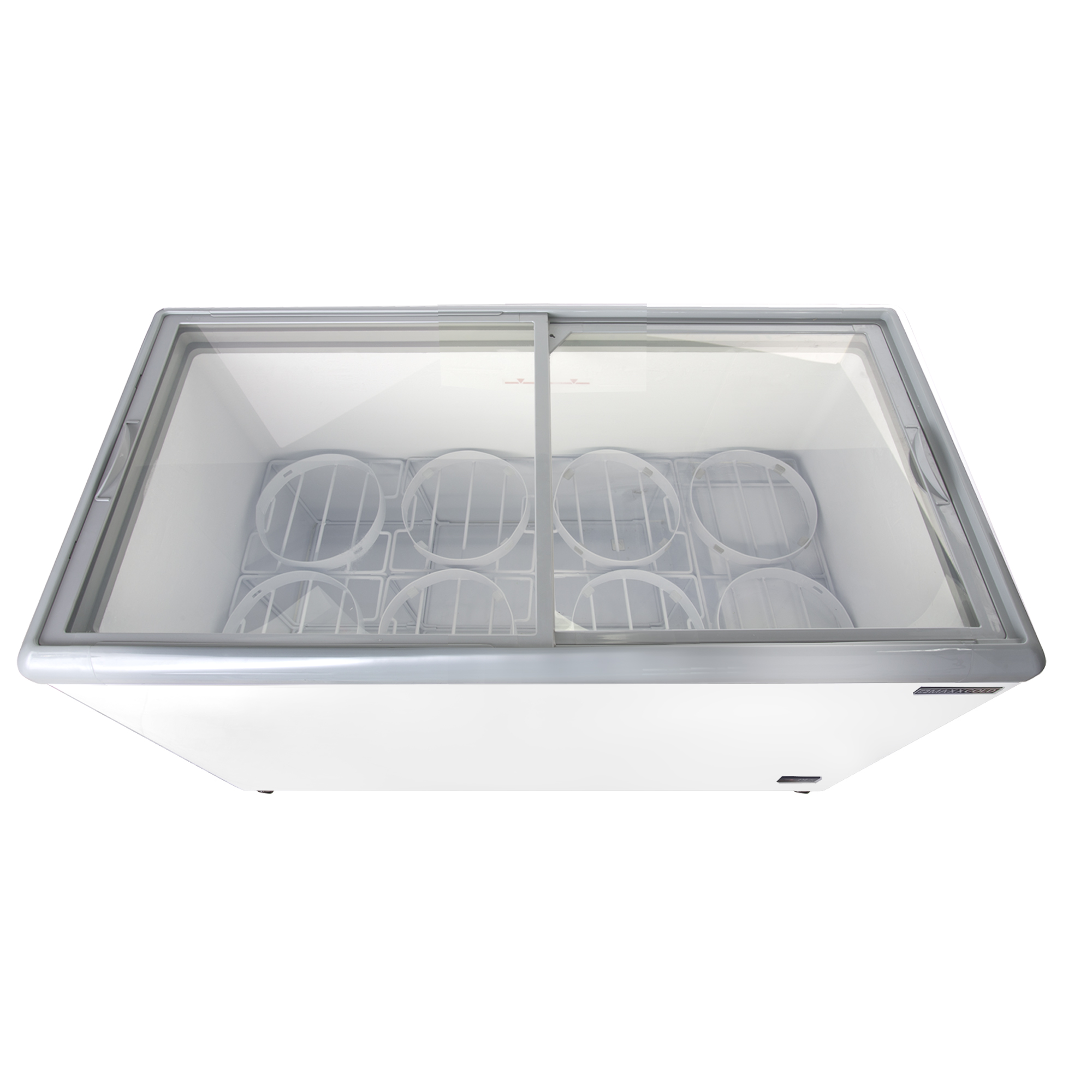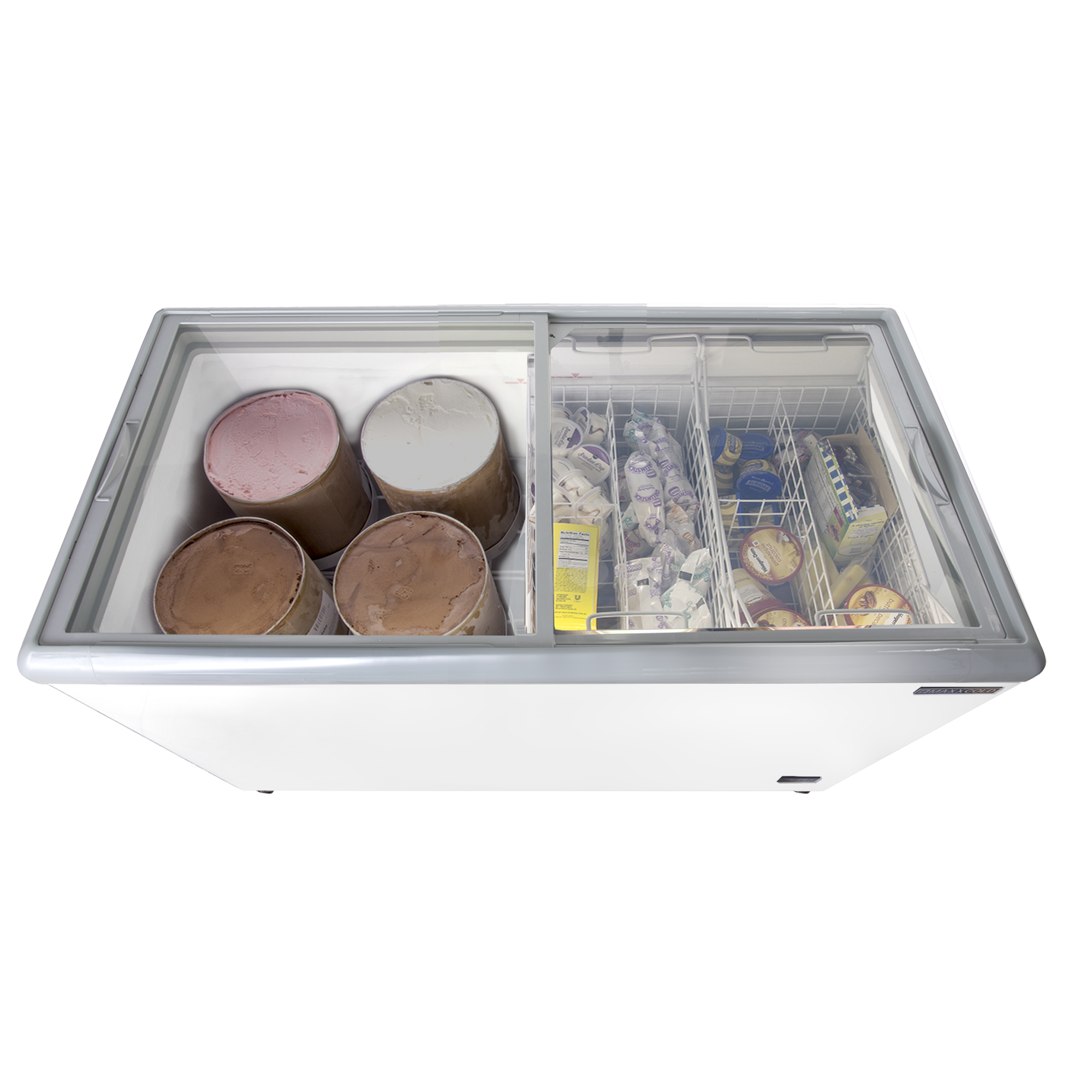 | Bullet 1 | Flat tempered clear glass sliding lids can be easily opened for quick and convenient access while protecting and preserving the quality of frozen products |