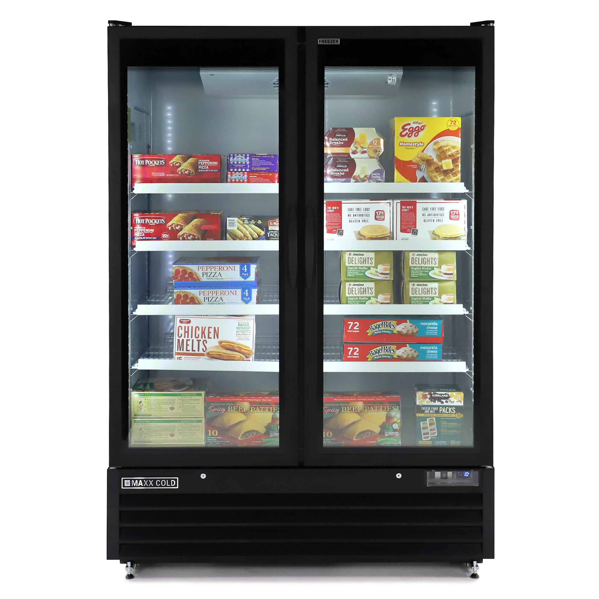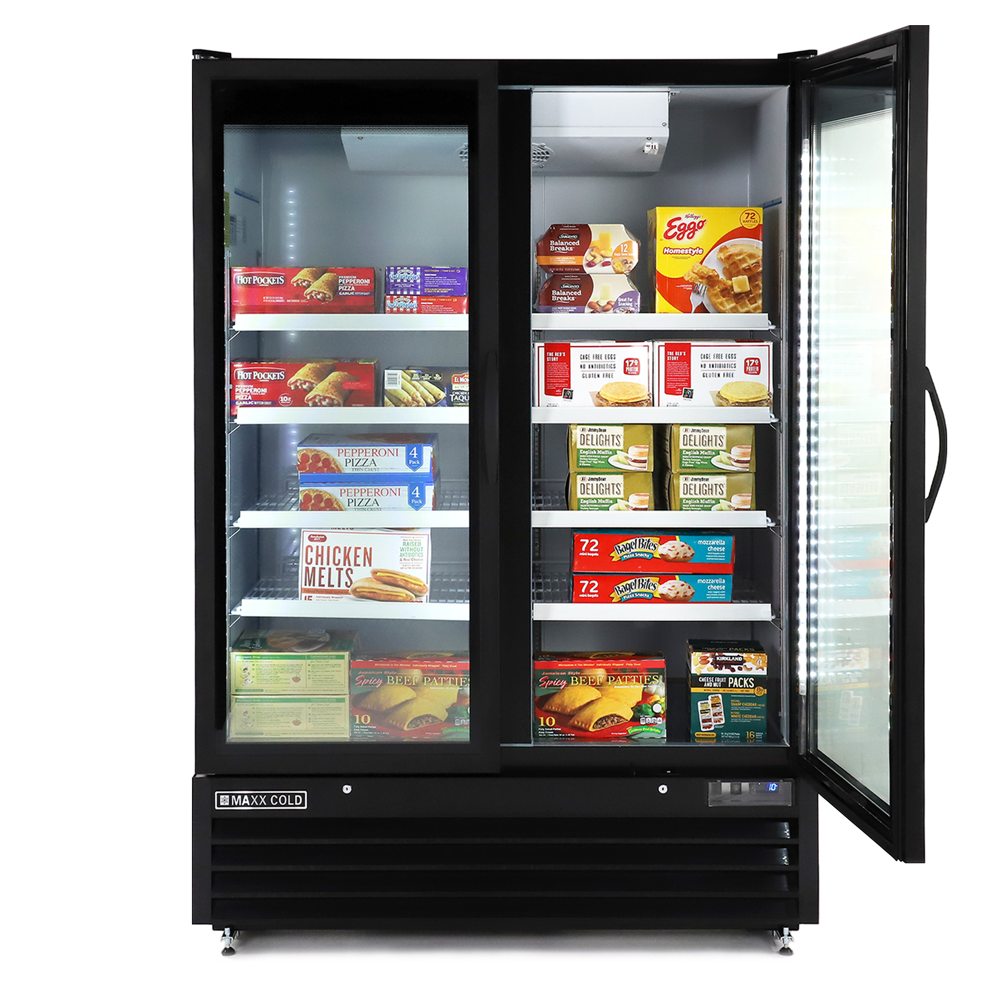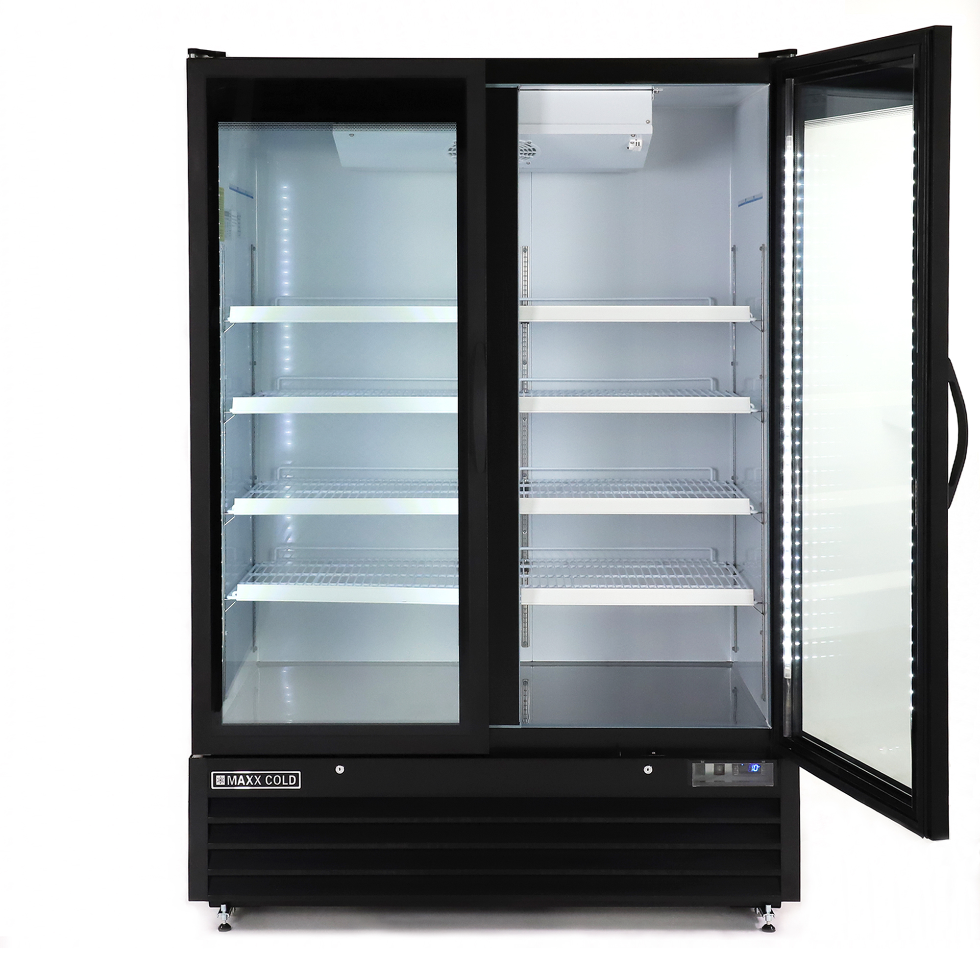| Long Description | This Maxx Cold glass door merchandiser, large storage capacity freezer two-door model provides nominal storage capacity of 50 cubic feet (1416L) and is ideal for restaurants and hospitality applications. The bottom mount, glass door merchandisers are energy efficient with CFC free foam refrigerant and the triple pane glass doors that are effective at clearly displaying contents and regulating temperature to preserve freshness and prolong shelf life of food & beverage products. This two-door model is easy to install, as the freezer merchandiser unit is equipped with integrated condensate pan, meaning no drain line connection is needed. Simple-to-use, programmable solid-state digital controls deliver accurate temperature regulation and for added security the self-closing doors are provided with a lock and key set.