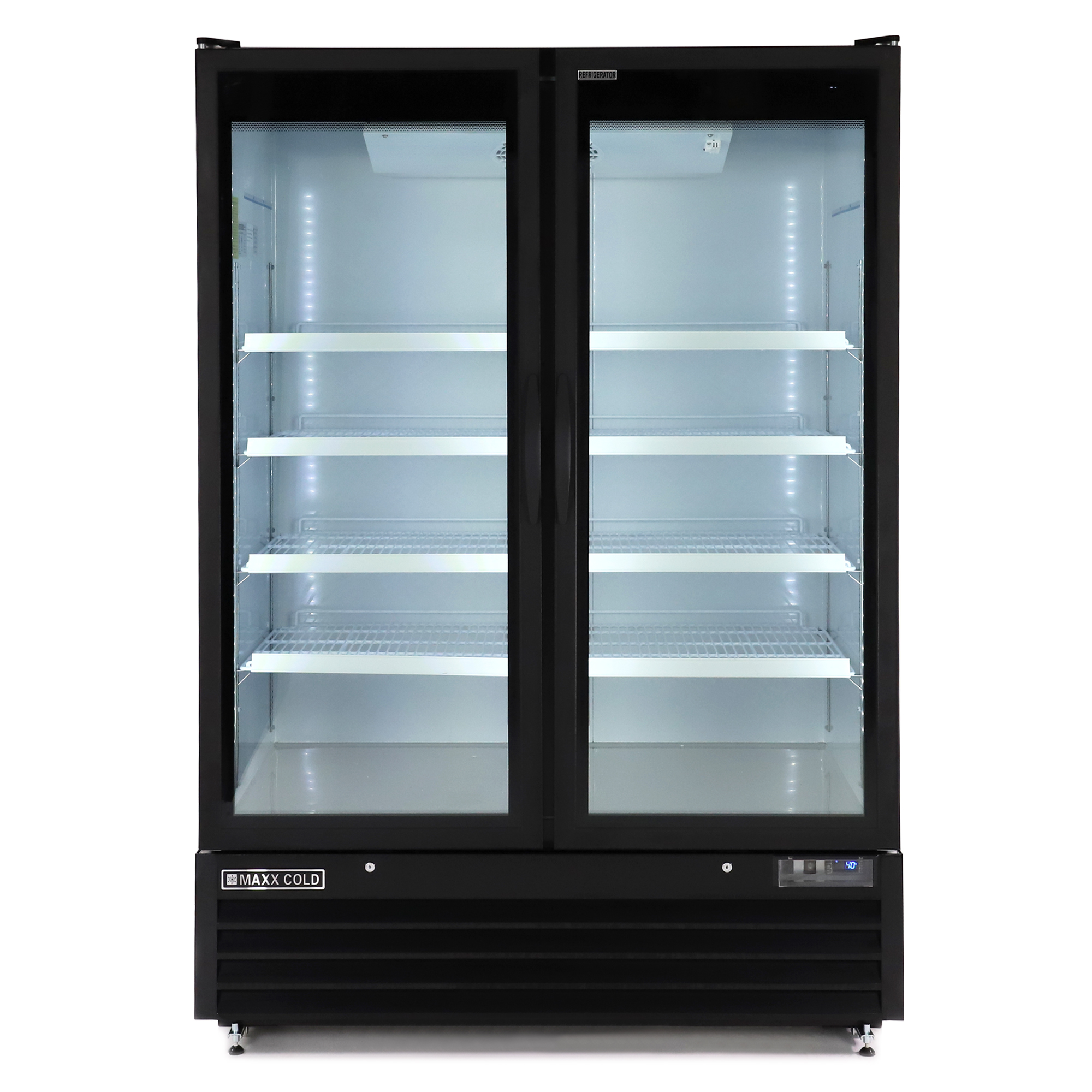| Long Description | Maxx Cold Glass Door Merchandiser refrigerator is designed for durability and visual appeal to display food products for both retail and commercial purposes. The two door merchandiser is energy efficient, has 50 Cubic Ft. of nominal storage capacity and is effective at displaying and regulating the right temperature to preserve freshness and prolong shelf life of on-the-go & beverage products. This double door refrigerator is easy to install, as this merchandiser is equipped with integrated condensate pan, meaning no drain line connection is needed. Simple-to-use, programmable solid-state digital controls deliver accurate temperature regulation and for added security the self-closing doors are provided with a lock and key set.