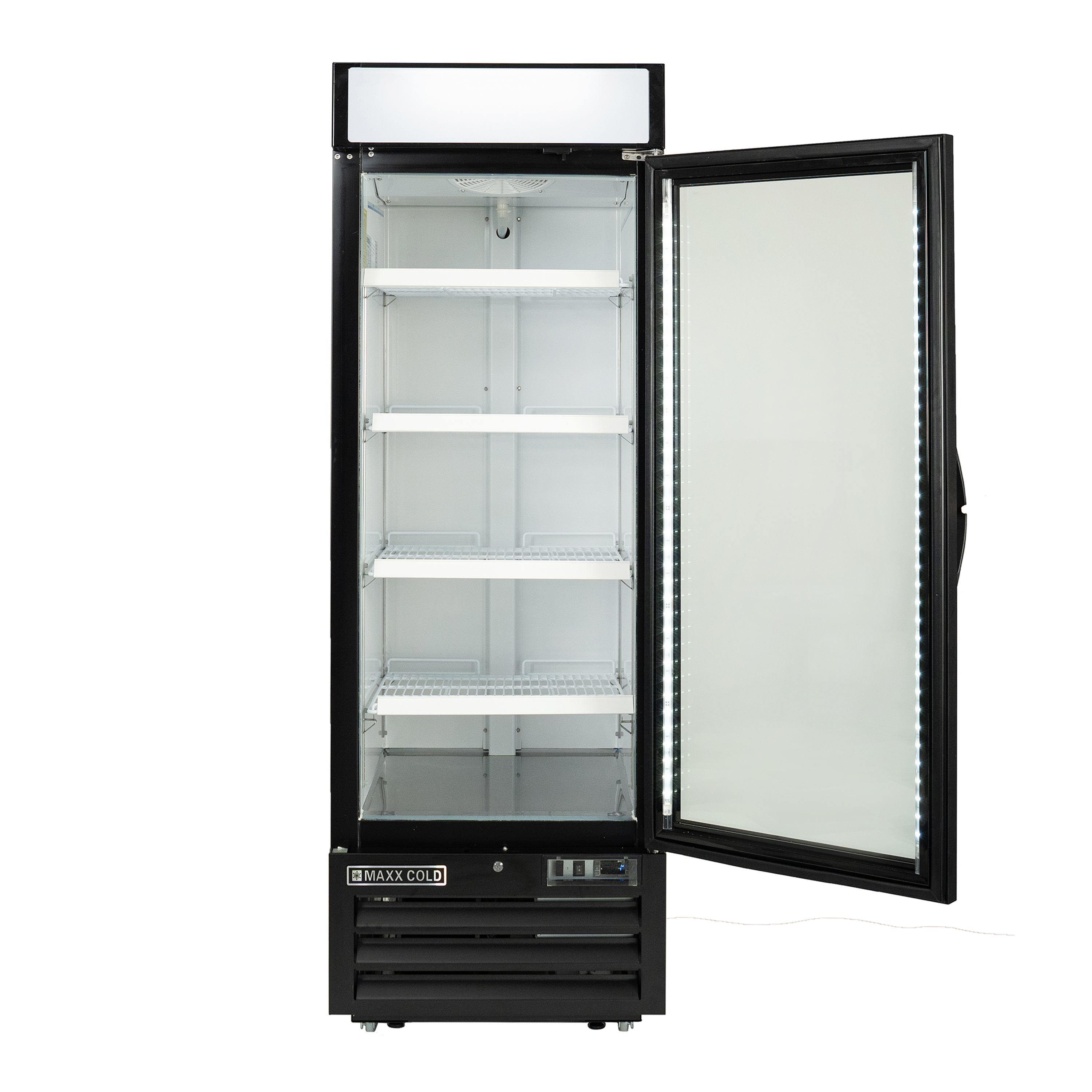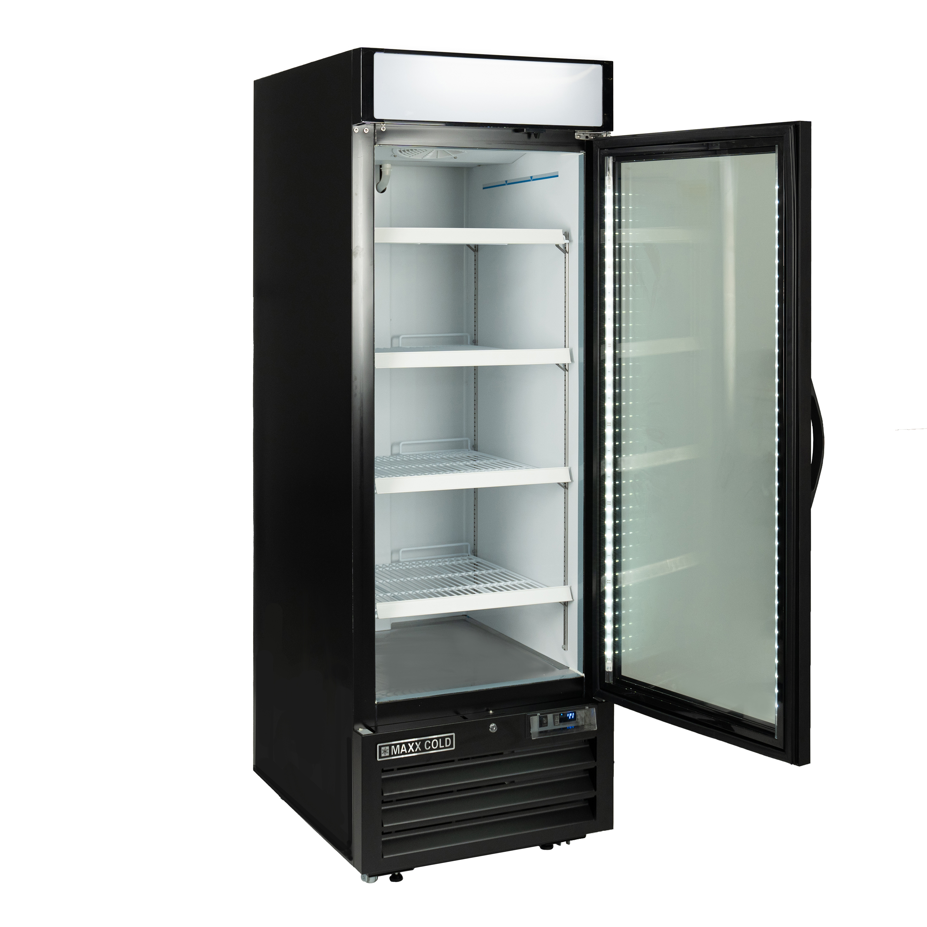 | Long Description | Maxx Cold Glass Door Merchandisers are designed for durability and visual appeal to display products for commercial foodservice purposes. The Maxx Cold Single Glass Door Merchandiser Freezer is energy efficient and effective at displaying products at the right temperature to preserve freshness and prolong shelf life. Four adjustable heavy-duty wire shelves hold various beverages and foods, such as meat, seafood, desserts and ice. Simple-to-use, programmable solid-state digital controls deliver accurate temperature regulation. This glass door merchandiser is constructed of black powder-coated steel exterior and powder-coated aluminum interior. It provides up to 23 cubic feet of storage capacity. The unit is supplied with an illuminated top panel for advertising and promoting your products. A lock and key set is included for security. This glass door merchandiser freezer is ideal for your commercial needs. |