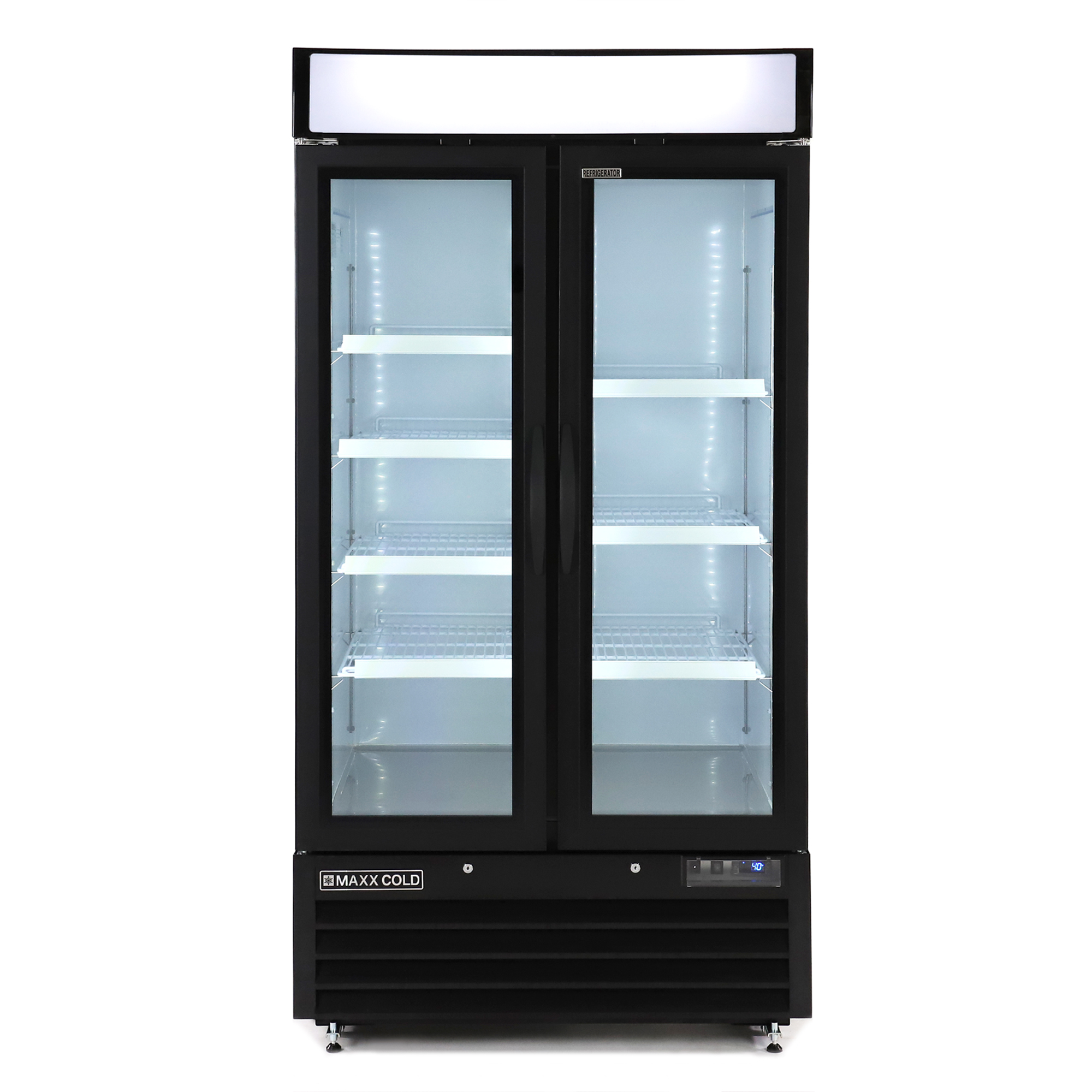 | Long Description | Maxx Cold Narrow Width, Double Glass Door Merchandiser Refrigerator is ideal for compact environments, offering an attractive display for last minute purchases or storage depending on the foodservice, beverage and retail application. The upright refrigerated cabinet is engineered with two self-closing swing doors. Smooth, durable and easy to clean black powdered coated steel exterior is also available in white. This refrigerator model features an illuminated top to personalize with an advertising message of your choice. Refrigerated Merchandiser units are supplied with four (4) adjustable shelves per door, lock and key set and interior LED lighting to display merchandiser contents. Electronic thermostat, digital LED temperature display regulate accurate temperature, prolonging and preserving shelf life of products. Not only are controls simple to use, operation is energy efficient with CFC refrigerant and foam insulation. |