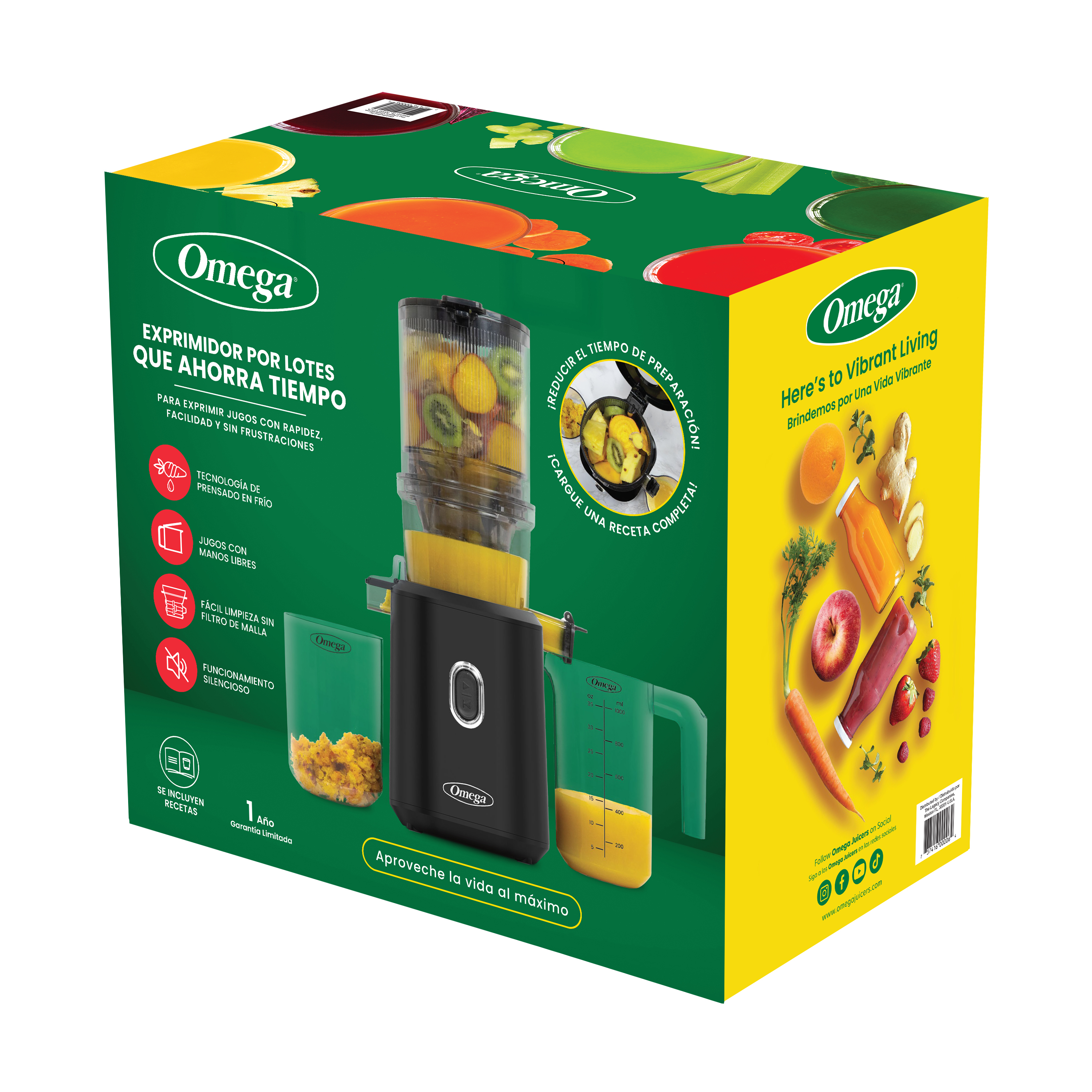 | Long Description | Introducing the new Omega Time Saving Batch Juicer — the ultimate innovation for fast, easy, and frustration-free juicing! Designed for health-conscious individuals with busy lifestyles, this vertical cold press juicer combines convenience, performance, and superior nutrition in one sleek, space-saving appliance. With its innovative batch hopper, you can load whole recipes at once, simply add your favorite fruits and vegetables, press start, and let the juicer do the work. This means less prep time and more juice, helping you enjoy fresh, nutrient-rich blends every day without the hassle. Powered by a high-torque motor, this juicer extracts maximum juice yield while preserving essential vitamins, minerals, and enzymes for truly wholesome, cold-pressed results. Whether you’re making a refreshing green juice, vibrant beet blend, or energizing wellness shot, the Omega Time Saving Batch Juicer delivers smooth, pulp-free, juice-bar-quality drinks from the comfort of your kitchen. Cleaning is a breeze with the easy clean, no-mesh filter—no scrubbing or soaking required. Simply rinse, assemble, and you’re ready for your next batch. Its compact, modern design fits seamlessly on any countertop, while its quiet operation makes it ideal for early mornings or relaxing evenings. Each juicer comes complete with a juice container, pulp container, and pusher, giving you everything you need to start your juicing journey immediately. Whether you juice daily or in batches, Omega makes it simple to live vibrantly, nourish your body, and support your wellness goals. At Omega your health is our business. Lift a glass to health, happiness, and a more vibrant you with the Omega Time Saving Batch Juicer! |
