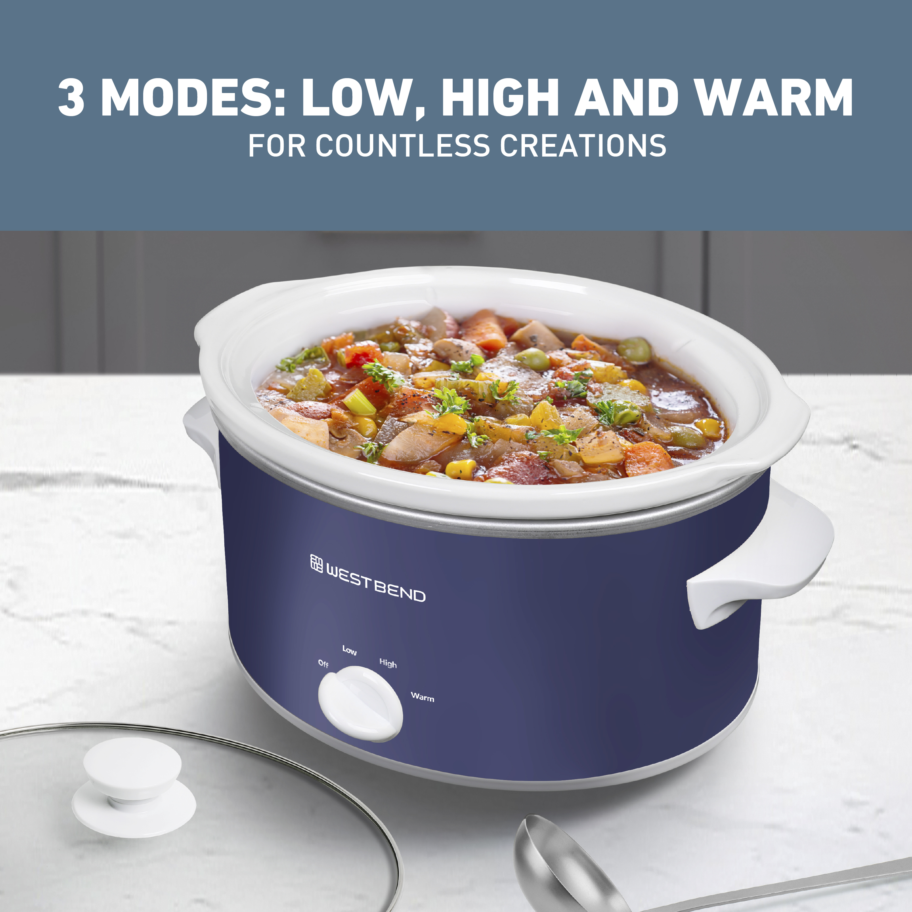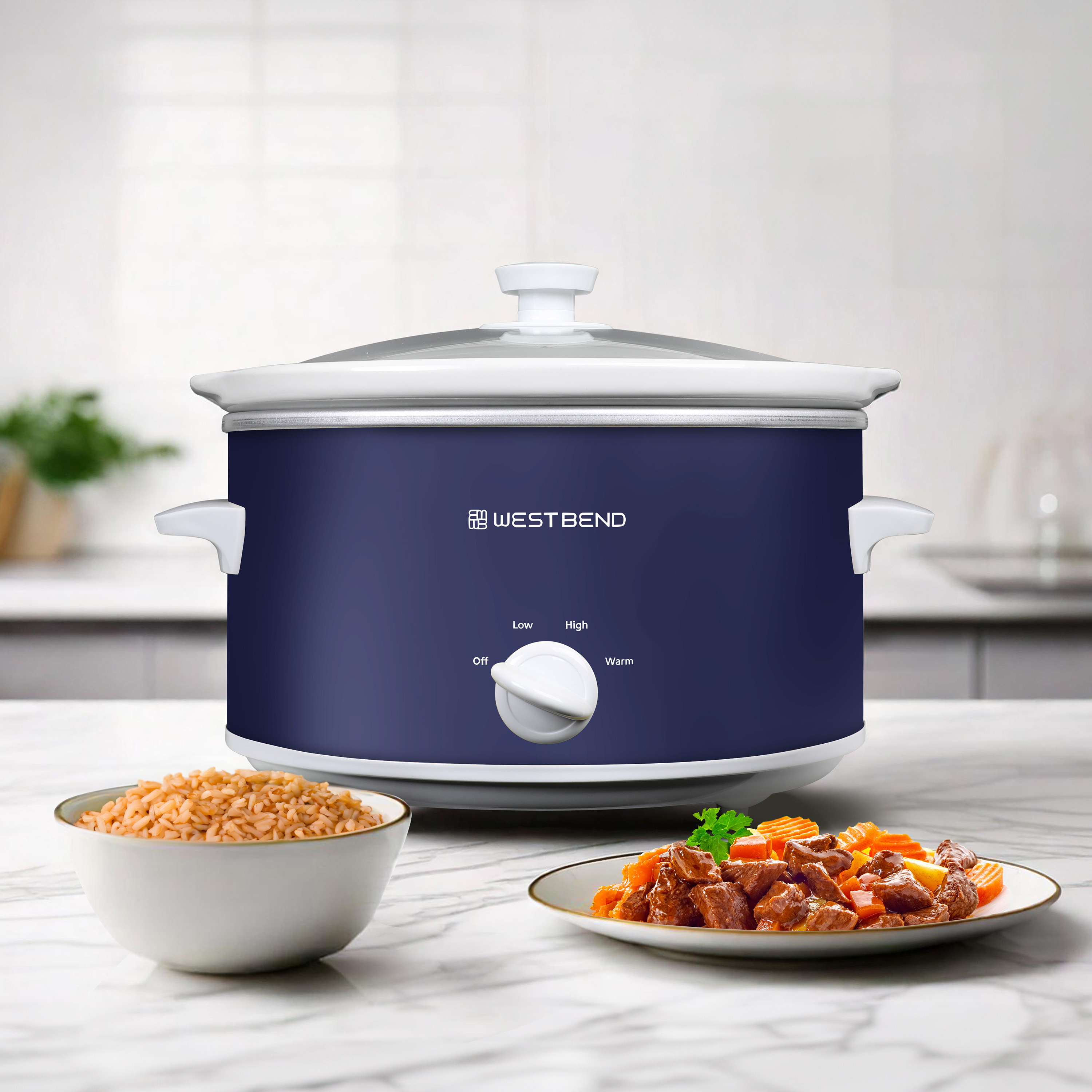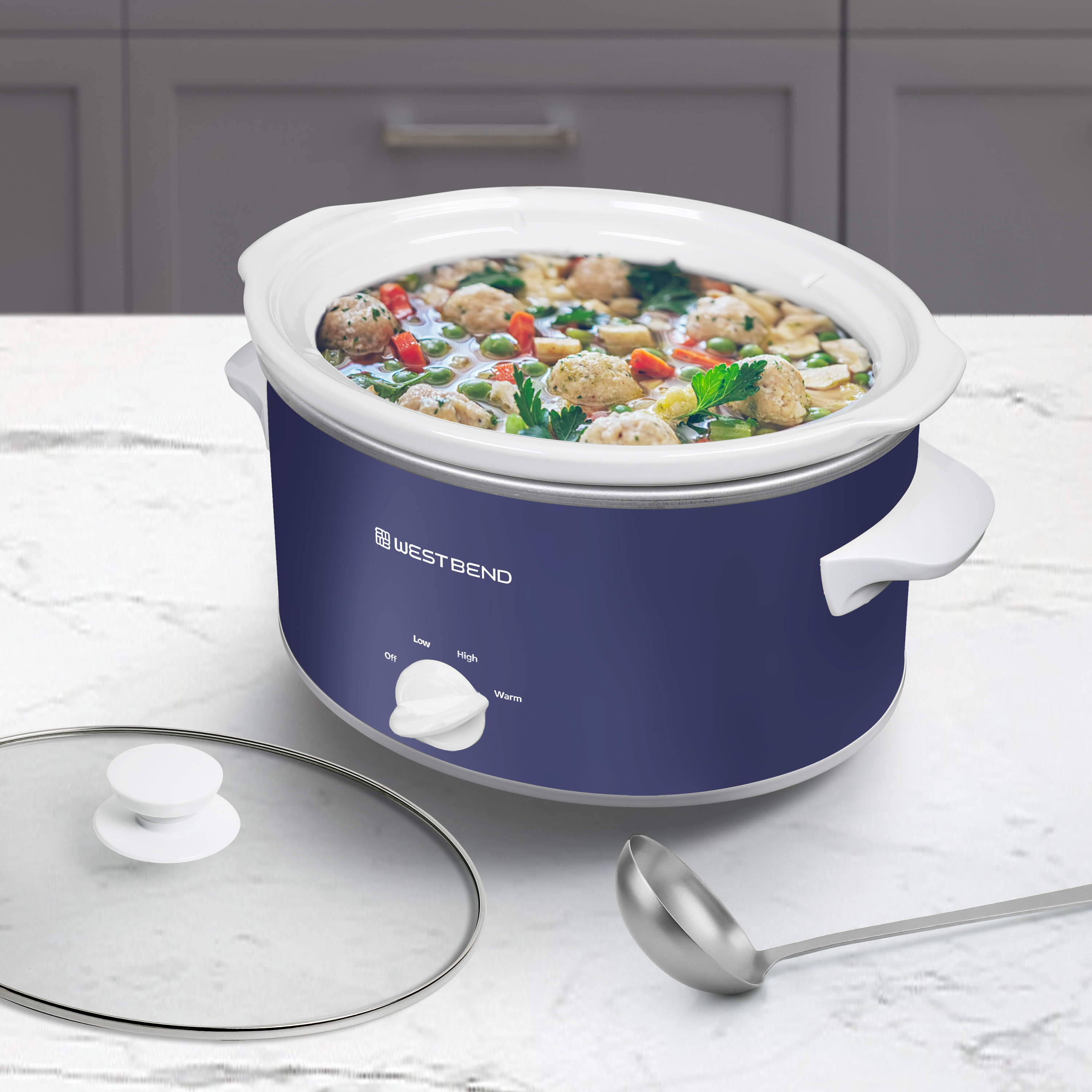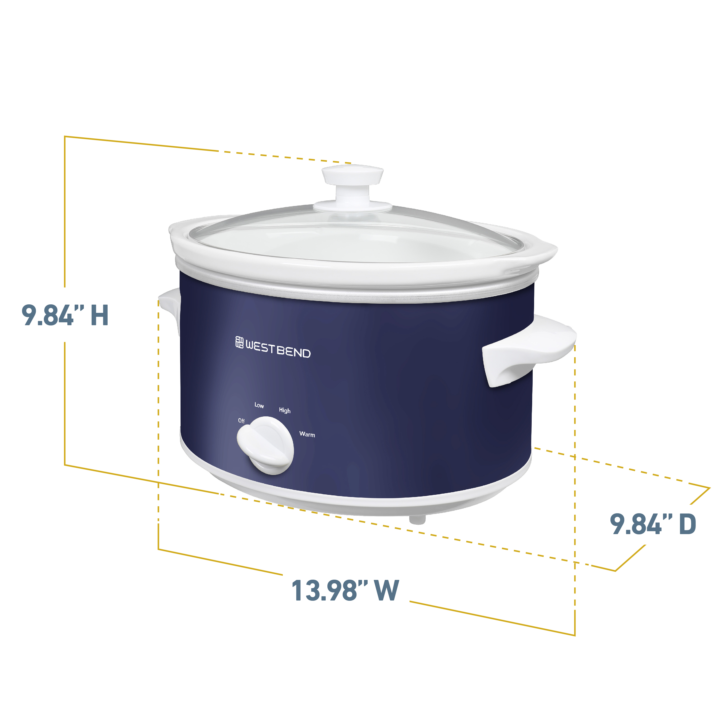 | Long Description | Embrace the ultimate cooking convenience and enjoy effortless meal preparation with the professionally crafted West Bend Slow Cooker that promises unbeatable performance and exceptional results every time. With its 4-quart size, this slow cooker is designed to cater to 4 or more, making it the perfect companion for family meals. Simplify your meal preparation routine with the West Bend Slow Cooker. Just load up the spacious cooking vessel with your ingredients of choice, select your preferred temperature setting from Low,High or Warm, and return home to perfectly cooked and ready-to-serve meals. Whether you're whipping up a savory chili or a tender pot roast, this versatile appliance ensures your dishes are cooked to perfection every time. Enjoy the convenience of the West Bend Slow Cooker's dishwasher-safe ceramic crock and tempered glass cover, allowing for hassle-free cleanup post-feast. The 3 manual heat settings provide you with the flexibility to tailor your cooking experience. The convenient WARM setting keeps your meals at an ideal serving temperature until you're ready to dig in. Not just a kitchen workhorse, the West Bend Slow Cooker features a stylish navy blue design, adding a touch of sophistication to your kitchen. Elevate your kitchen decor and simplify your cooking routine with this must-have appliance that combines style with functionality. Say goodbye to stressful meal prep and hello to delectable dishes with the West Bend Slow Cooker as your trusty cooking companion. |