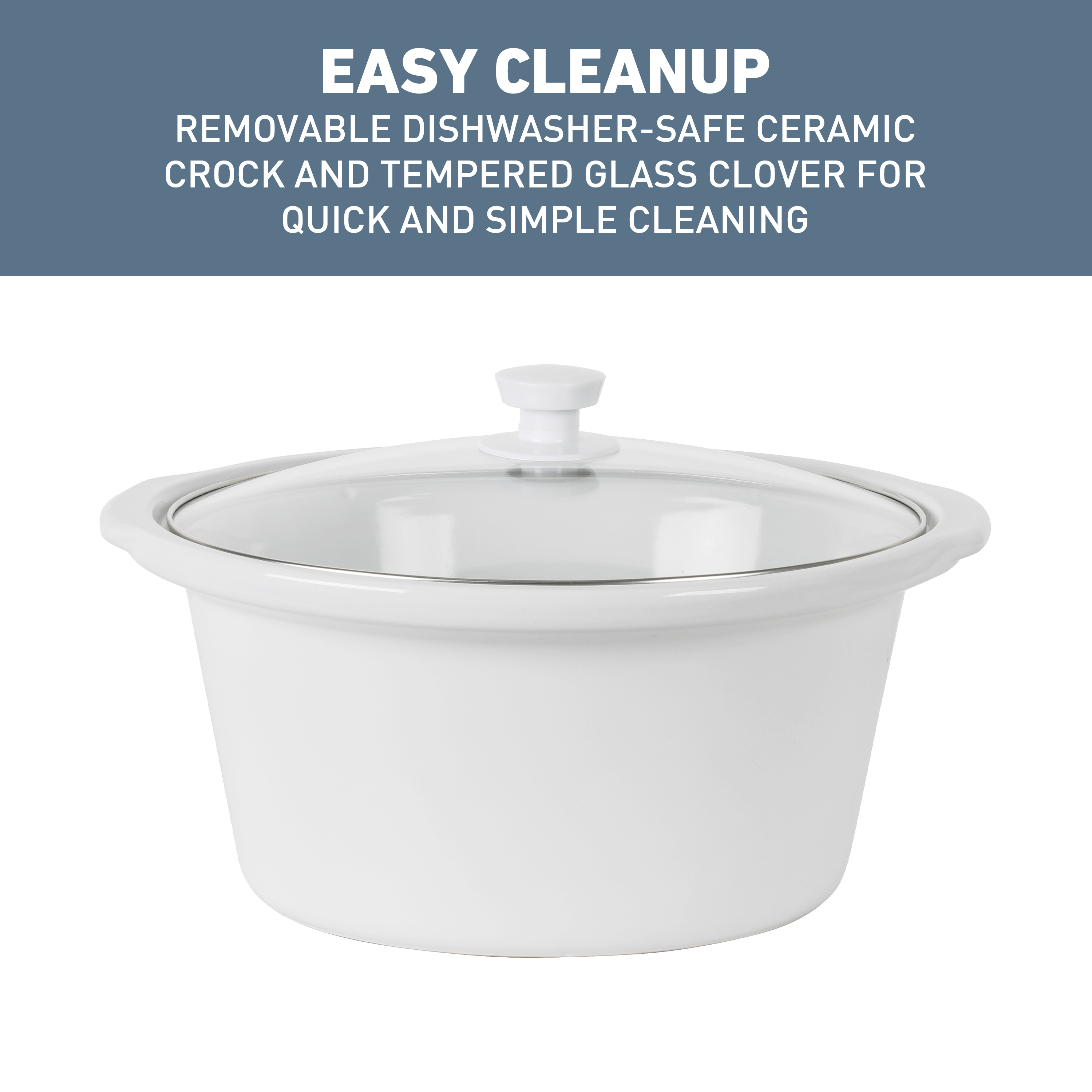 | Bullet 3 | Dishwasher-safe ceramic crock and tempered glass cover make cleanup a breeze after every meal |