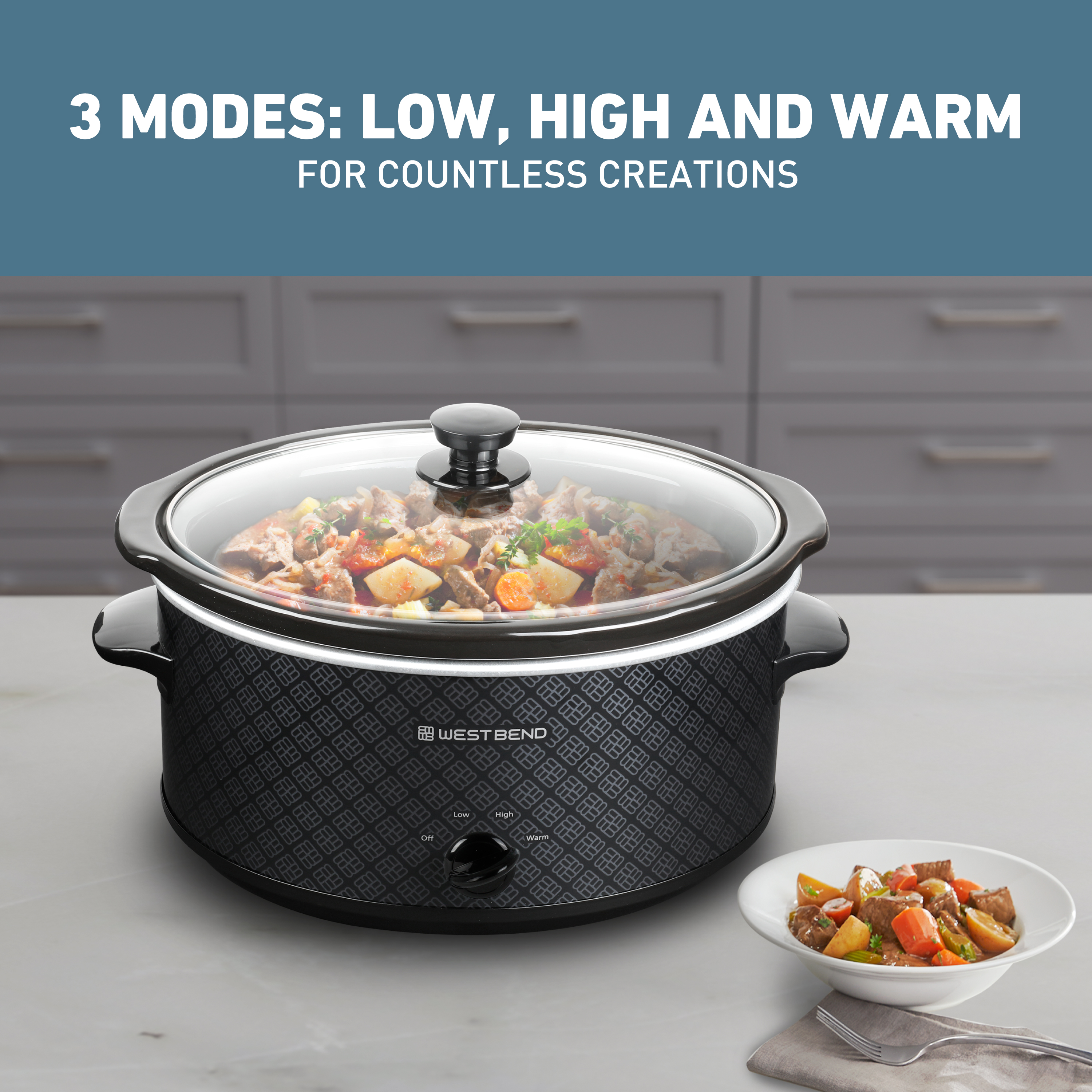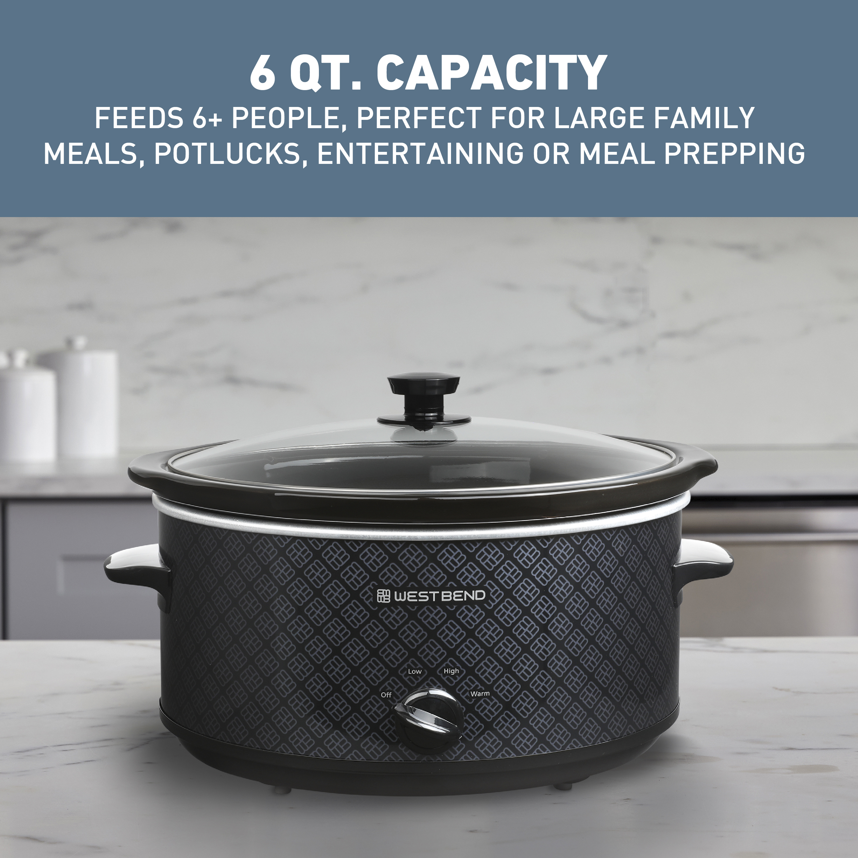 | Long Description | Embrace the ultimate cooking convenience and enjoy effortless meal preparation with the West Bend 6QT Slow Cooker that promises performance and exceptional results every time. With its ample 6-quart size, this slow cooker is designed to cater to parties of 7 or more people, making it perfect for family meals and gatherings. Simplify your meal preparation routine by loading up the spacious cooking vessel with your ingredients of choice, select your preferred temperature setting of Low or High, and return home to perfectly cooked and ready-to-serve meals. Whether you're whipping up a savory chili or a tender pot roast, this versatile appliance ensures your dishes are cooked to perfection every time. Enjoy hassle-free cleanup post-feast with the dishwasher-safe ceramic crock and tempered glass cover. The 3 manual heat settings provide you with the flexibility to tailor your cooking experience. The convenient WARM setting keeps your meals at an ideal serving temperature until you're ready to dig in. Not just a kitchen workhorse, the West Bend 6QT Slow Cooker also boasts a beautiful design that will add a touch of elegance to your culinary space. Elevate your kitchen decor and simplify your cooking routine with this must-have appliance that combines style with functionality. Say goodbye to stressful meal prep and hello to delectable dishes with the West Bend 6QT Slow Cooker as your trusty cooking companion. |