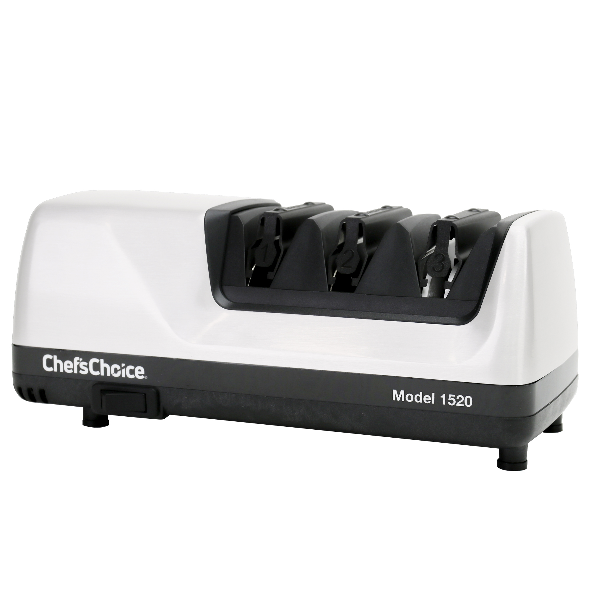 Description M1520 E Sharpener - 2-Stage 15°/20° Dizor - W (G Plug) SKU SHC1520WH31G UPC 087877000883 Model M1520 Brand Chef'sChoice Product Line Smallwares Category Knife Sharpener Subcategory Electric Division Countertop Commercial / Residential Residential SKU Status Established Est. Available Date 2024-04-01 Warranty Three-Year Limited Warranty Long Description The Chef’sChoice 1520 AngleSelect professional electric knife sharpener is the ideal solution for improved cutting performance on both 15 and 20-degree class knives. Using 100 percent diamonds, the hardest natural substance on earth, our patented abrasives sharpen faster and easier to create a sharp, longer lasting edge. In the final stage, patented stropping disks create an unparalleled polished finish. Precision angle guides ensure accurate sharpening throughout the entire blade length and eliminate any guesswork. This unit is designed to work with both straight-edge and serrated knives. WHY YOU NEED A KNIFE SHARPENER – Over time, a knife’s edge dulls under the stress of cutting. The overall performance can be significantly improved if sharpened and maintained correctly. HOW DO KNIFE SHARPENERS WORK – Good sharpening systems shape the knife edge with a coarse abrasive and polish with a finer abrasive. Bullet 1 Applies a traditional 20 degree edge or a finer 15 degree edge for precision slicing. Bullet 2 Proprietary diamond abrasives sharpen edges faster and easier Bullet 3 Utilizing the hardest natural substance on earth, our proprietary diamond abrasives sharpen edges faster and easier Bullet 4 Creates a sharp, longer lasting, double bevel edge Bullet 5 2 distinct facets set at different angles form a longer lasting, arch-shaped edge Bullet 6 Stropping disks deliver a polished knife edge in the finishing stage Bullet 7 Patented stropping disks deliver an unparalleled polished knife edge in the finishing stage Bullet 8 Precision angle guides ensure accurate sharpening from bolster to tip and eliminate any guesswork Bullet 9 Sharpens most straight edge and serrated knives Assembled Weight (lb) 4.15 Unit Dimensions (in) 4.25" x 10" x 4.25" Assembly Required No Color White Abrasive Material Diamond Material - Plastic