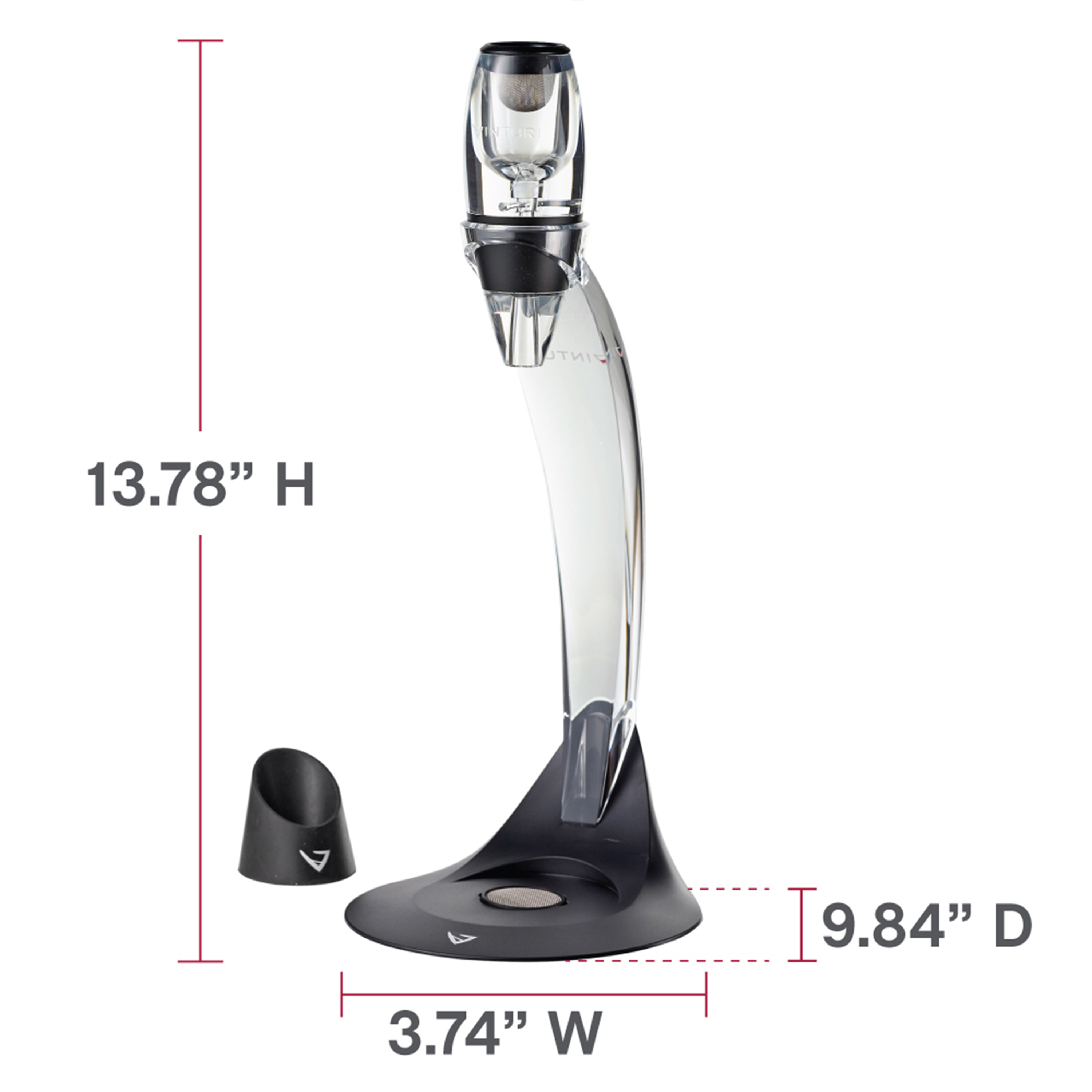 | Long Description | Accelerate the aeration process and unlock your wine’s full potential with the authentic Vinturi Red Wine Aerator, a must-have tool for any wine enthusiast. Unlike traditional decanters that require time and patience, the Vinturi aerator opens up and develops red wines instantly, all in the time it takes to pour a glass. No more waiting. No more guessing. Just perfectly aerated wine, every time. Featuring patented Vinturi technology, this innovative aerator increases the wine’s velocity as it flows through, while simultaneously decreasing the pressure. This pressure difference naturally draws in the ideal amount of air, allowing oxygen to mix with the wine at precisely the right rate. The result? A dramatically improved bouquet, enhanced flavors, and a smoother, more elegant finish—everything wine should be. With the Vinturi, you’ll experience the perfect aeration process with zero effort. As you pour, listen for the distinctive sound—a unique whoosh that’s exclusive to all Vinturi aerators. It’s the signature of proper aeration in action. Crafted from specially formulated acrylic with a comfortable, easy-to-grip silicone body, the Vinturi is both durable and ergonomic. It also includes a fine mesh filter screen to catch sediment or cork fragments, and a no-drip stand to store the aerator when not in use, keeping your countertops clean and organized. Ideal for entertaining or everyday use, the Vinturi Red Wine Aerator is perfect whether you’re aerating a single glass or an entire bottle. Impress your guests and elevate your wine experience with ease. Once you taste the difference, you’ll never want to drink red wine without it. The more you appreciate wine, the more you’ll appreciate the Vinturi advantage. |