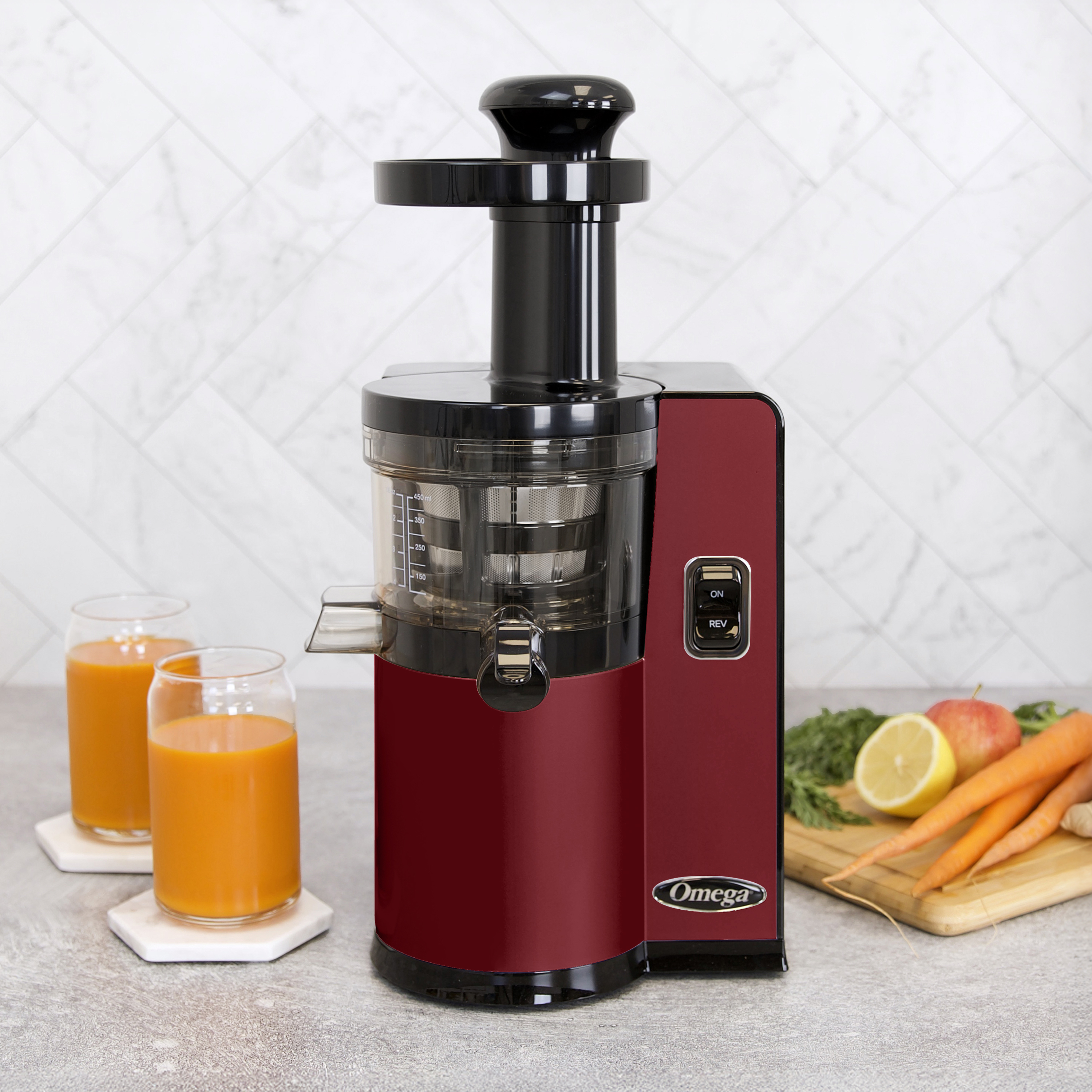 | Long Description | Enjoy the benefits of a juice bar from the comfort of your own kitchen. Get a day’s worth of vitamins in one delicious juice with the Vertical Cold Press Slow Juicer. It has the same triple stage compression technology found in professional grade cold press juicers. The Cold Press 365 Juicer offers slow masticating juicing, one of the most effective ways to easily access nutrients. Its cold press technology eliminates heat and air exposure for fruit and vegetable juices that are higher in vitamins, enzymes and antioxidants. The powerful 3-stage auger extracts every last drop of juice for greater output with less foam and better taste. You can boost your immunity and enhance your overall health quickly and easily just by juicing. With our juice, you can create a variety of delicious and nutritious drinks including celery juice, citrus juice, fruit juice, leafy greens juice, nut milks, vegetable juice and wheatgrass juice. You can also use your fruits and vegetables more efficiently by juicing, using the pulp to cook with, and utilizing fruits and veggies for juicing that you might otherwise toss when they have slight softening. Juice anytime without disturbing anyone, because the operation is quieter than most juicers. Once you are done, clean up is a breeze with a quick sink rinse or placement in the top rack of your dishwasher. Don’t eat your fruits and veggies—juice them! Covered by the Omega 15-Year Limited Warranty. |